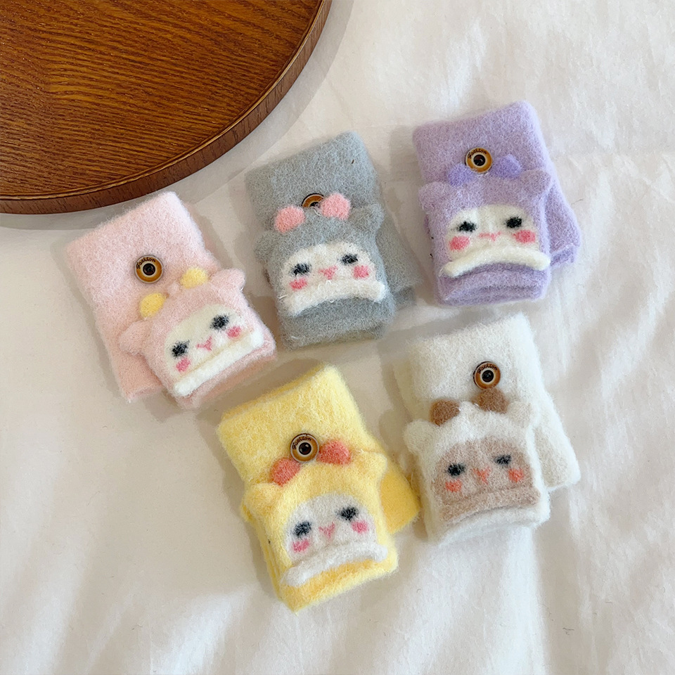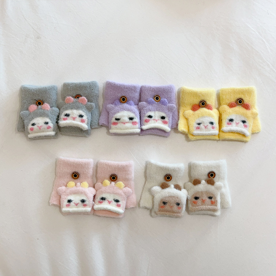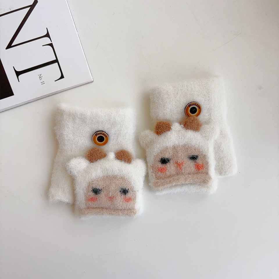 귀여운 만화 양 봉제 아기 장갑 냉난방 유지 반 섹션 플립-가을과 겨울에 동결 방지 손 0-2스토어 가기