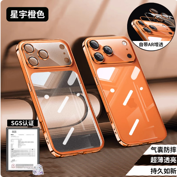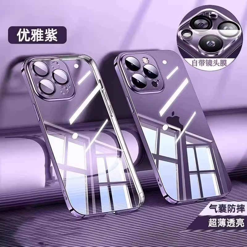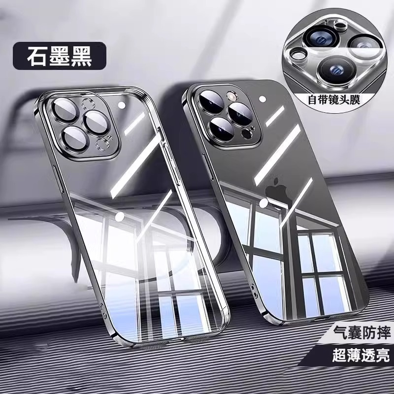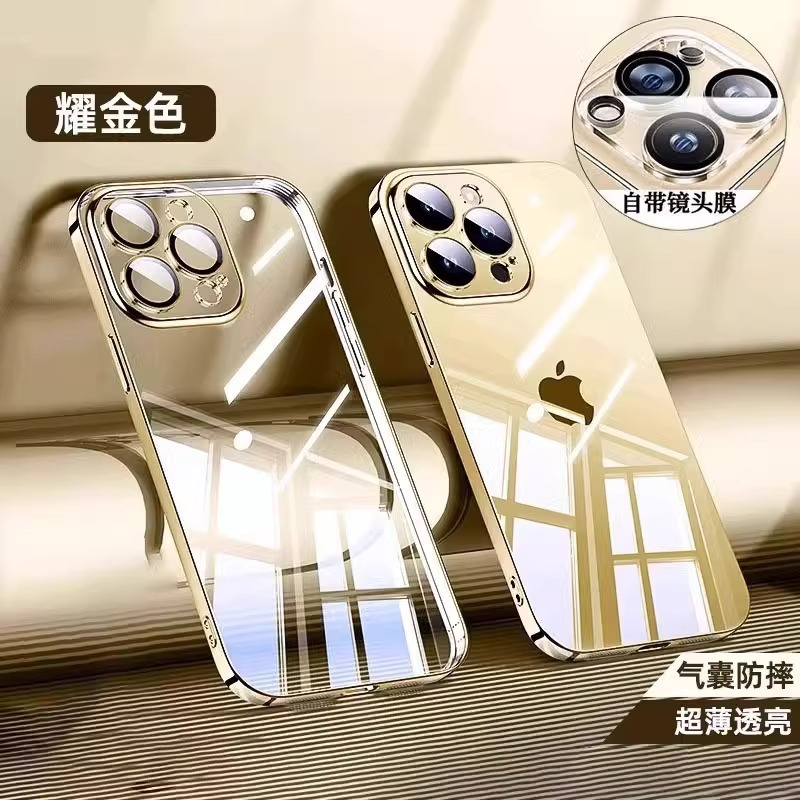 아이폰17프로맥스 휴대폰 케이스 전기도금 투명 하드 케이스 애플15 내장 유리 렌즈 필름 풀커버스토어 가기