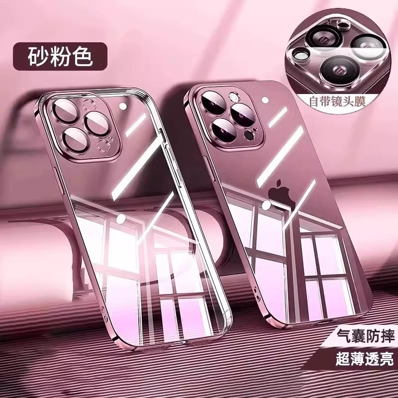 아이폰17프로맥스 휴대폰 케이스 전기도금 투명 하드 케이스 애플15 내장 유리 렌즈 필름 풀커버