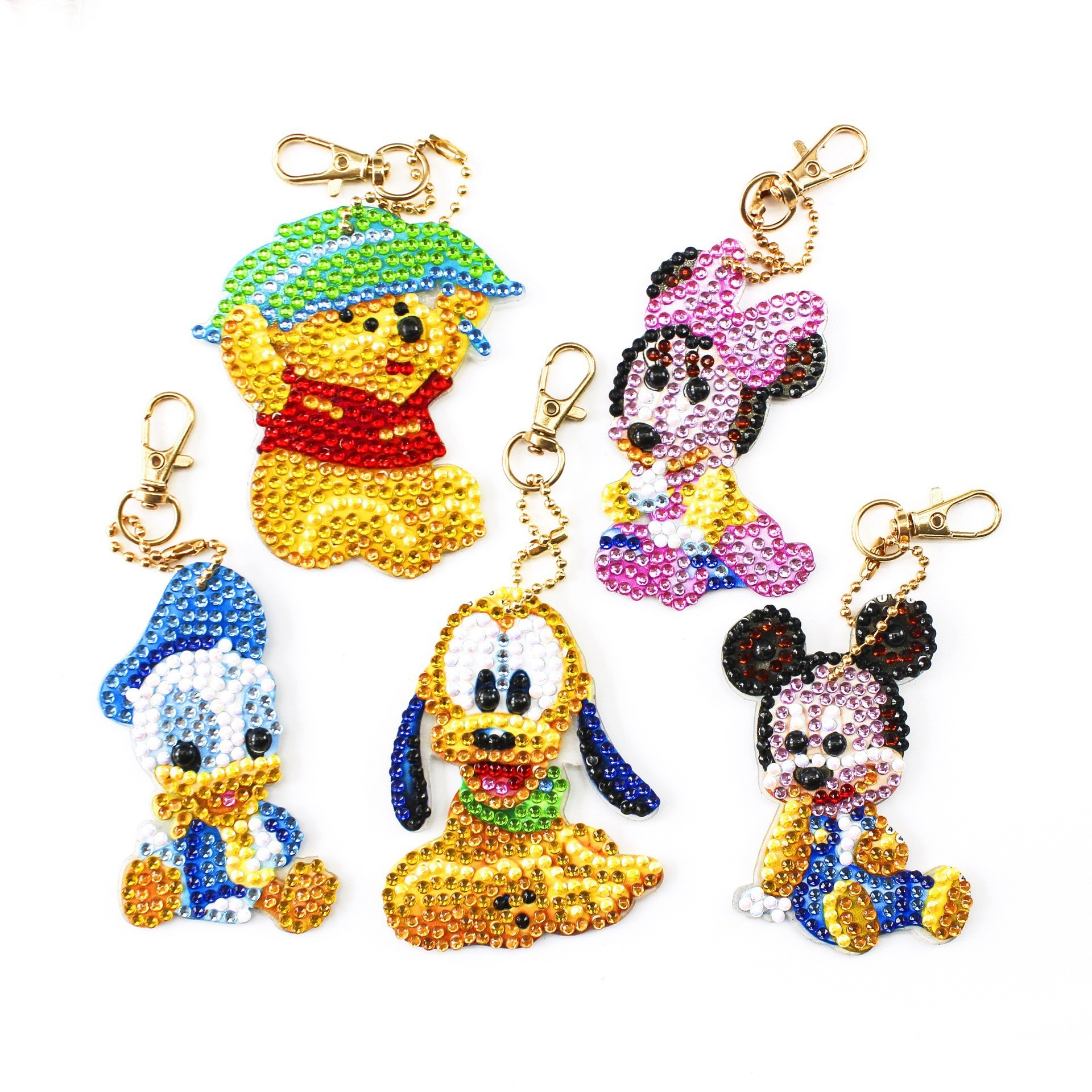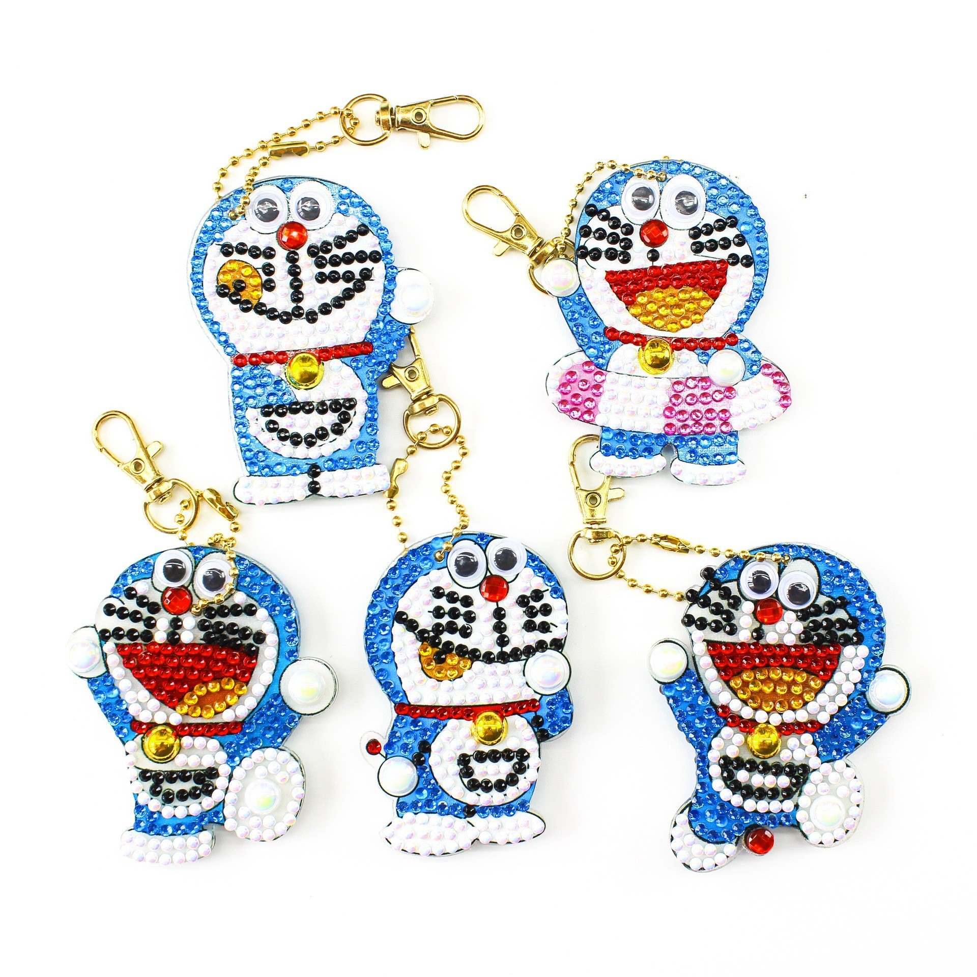 5D 국경 다이아몬드 페인팅 키 체인 어린이 만화 도라에몽 백조 다이아몬드 페인팅 장식 펜던트 DIY 포인트 다이아몬드 키스토어 가기