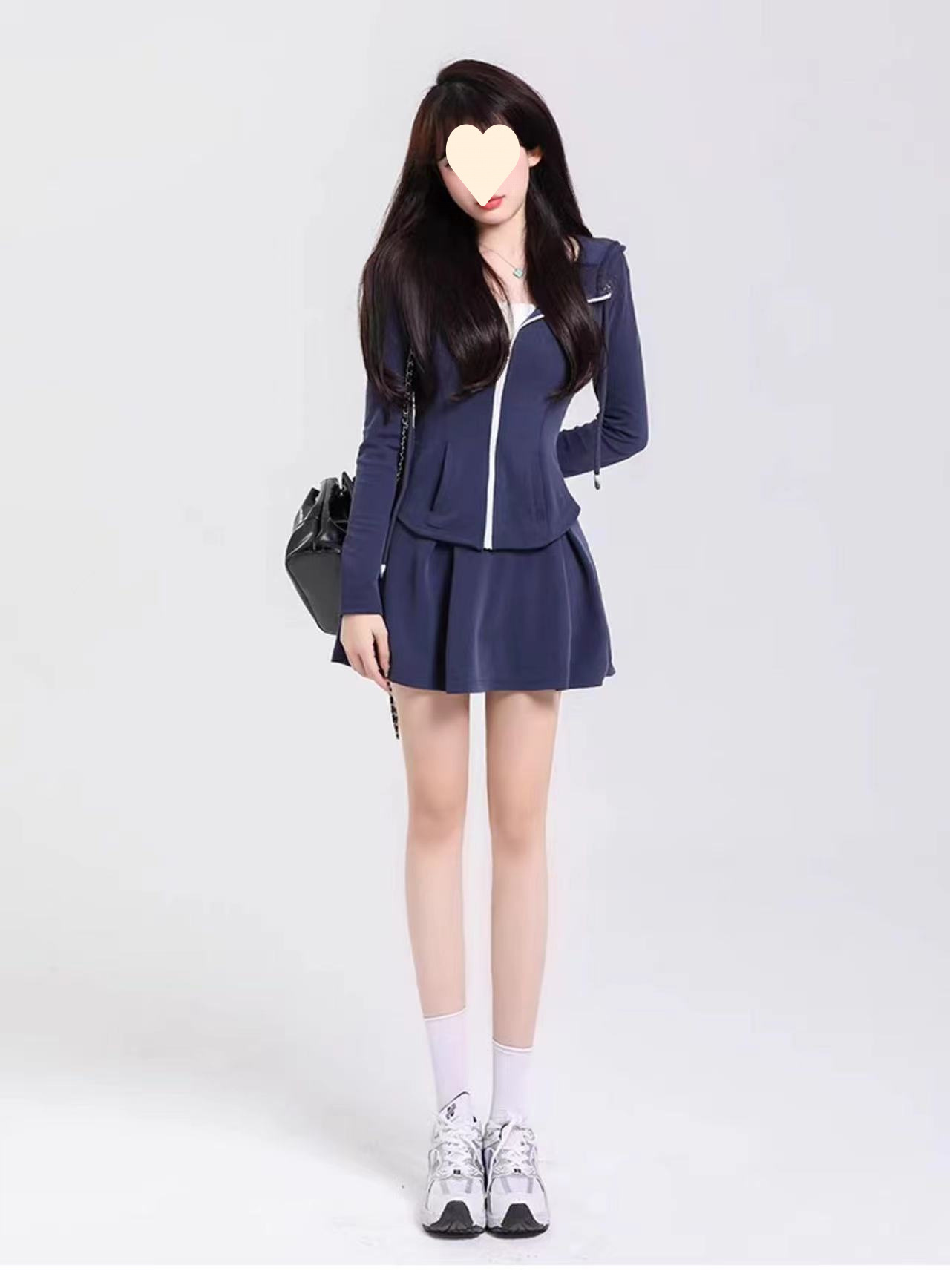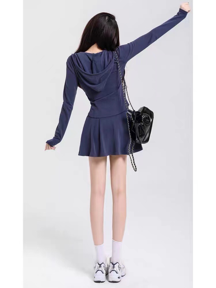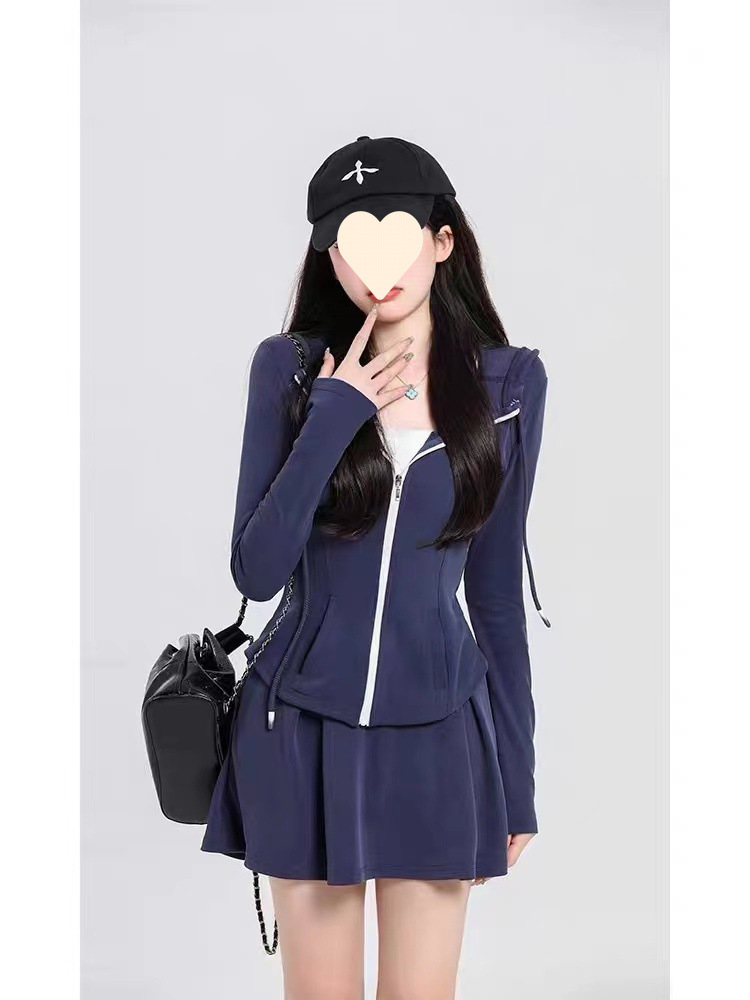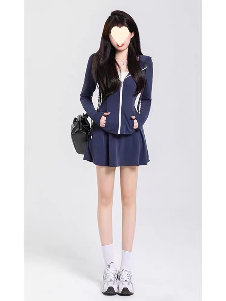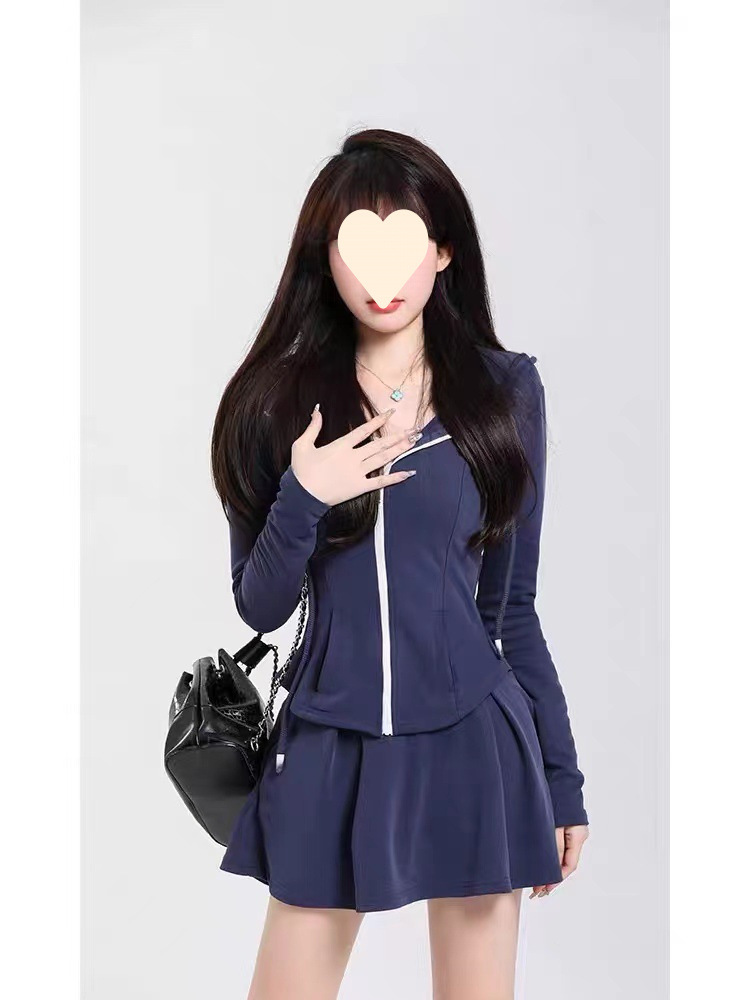 초봄 신상품 작은 체형의 소녀들을 위한 대학 스타일 후드 스웨트셔츠 재킷과 주름 스커트 캐주얼 스포츠 슈트 여성용스토어 가기