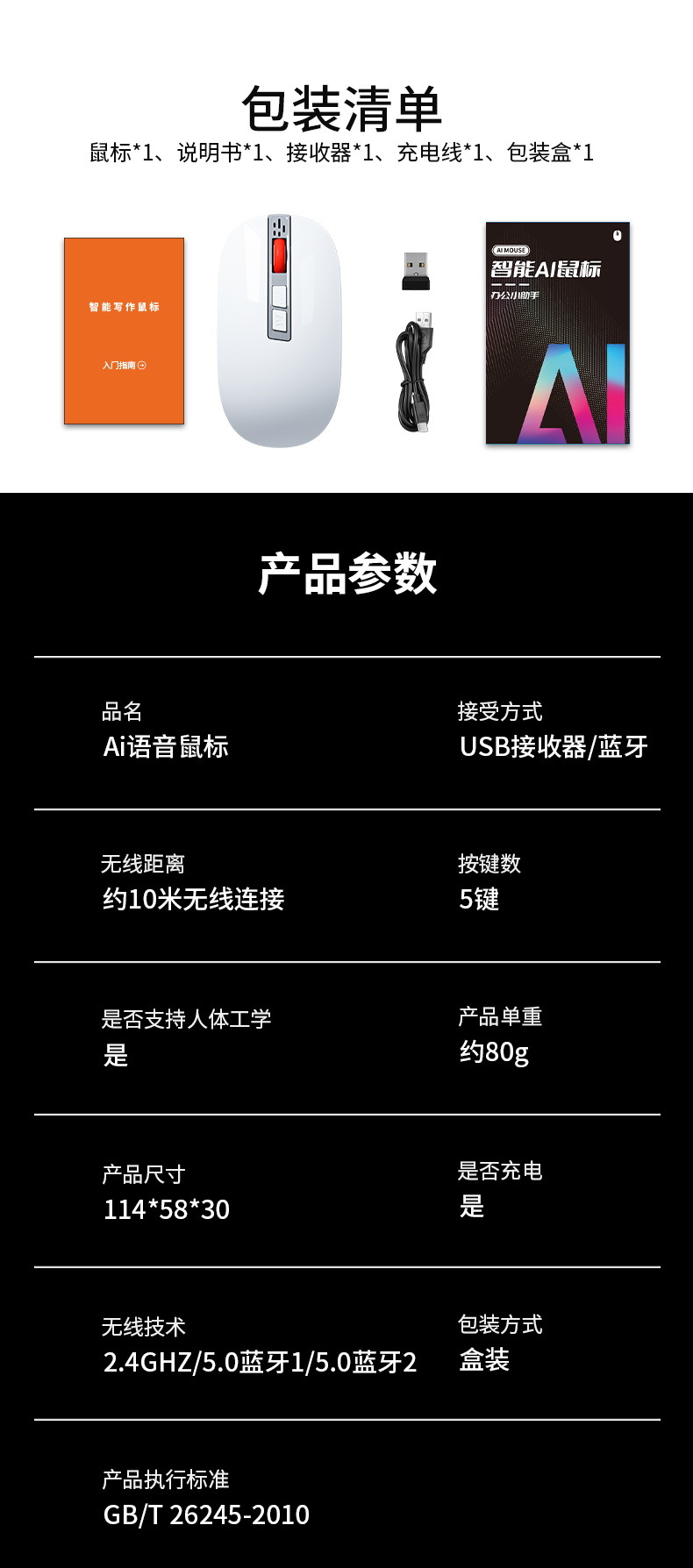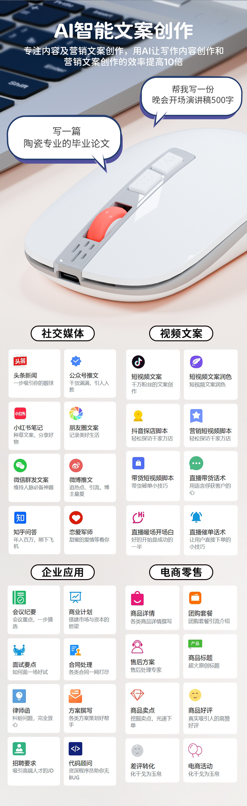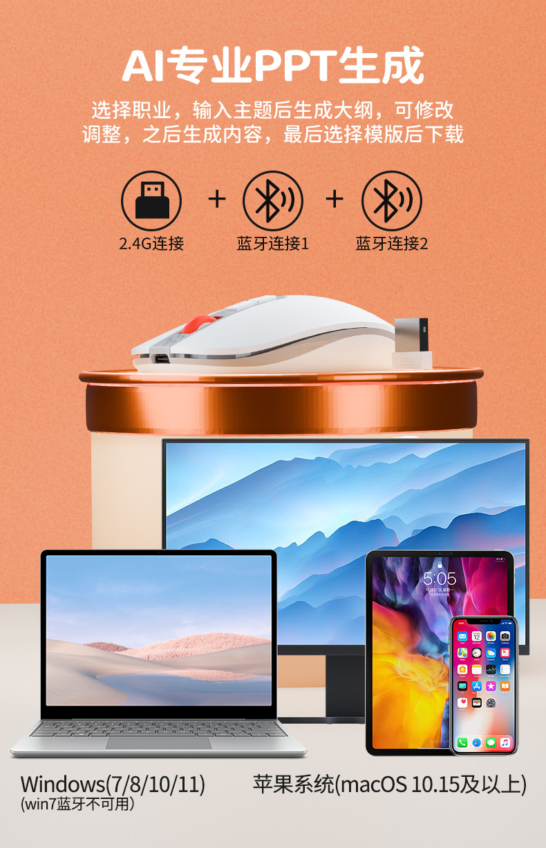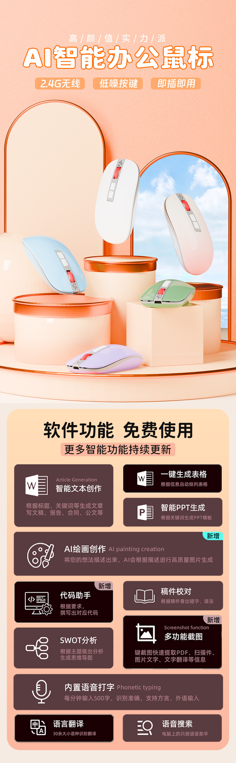 AI智能写作语音鼠标录音转写PPT创作无线蓝牙双模静音智能办公