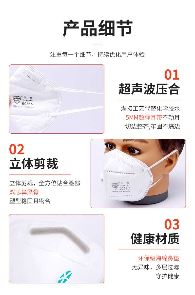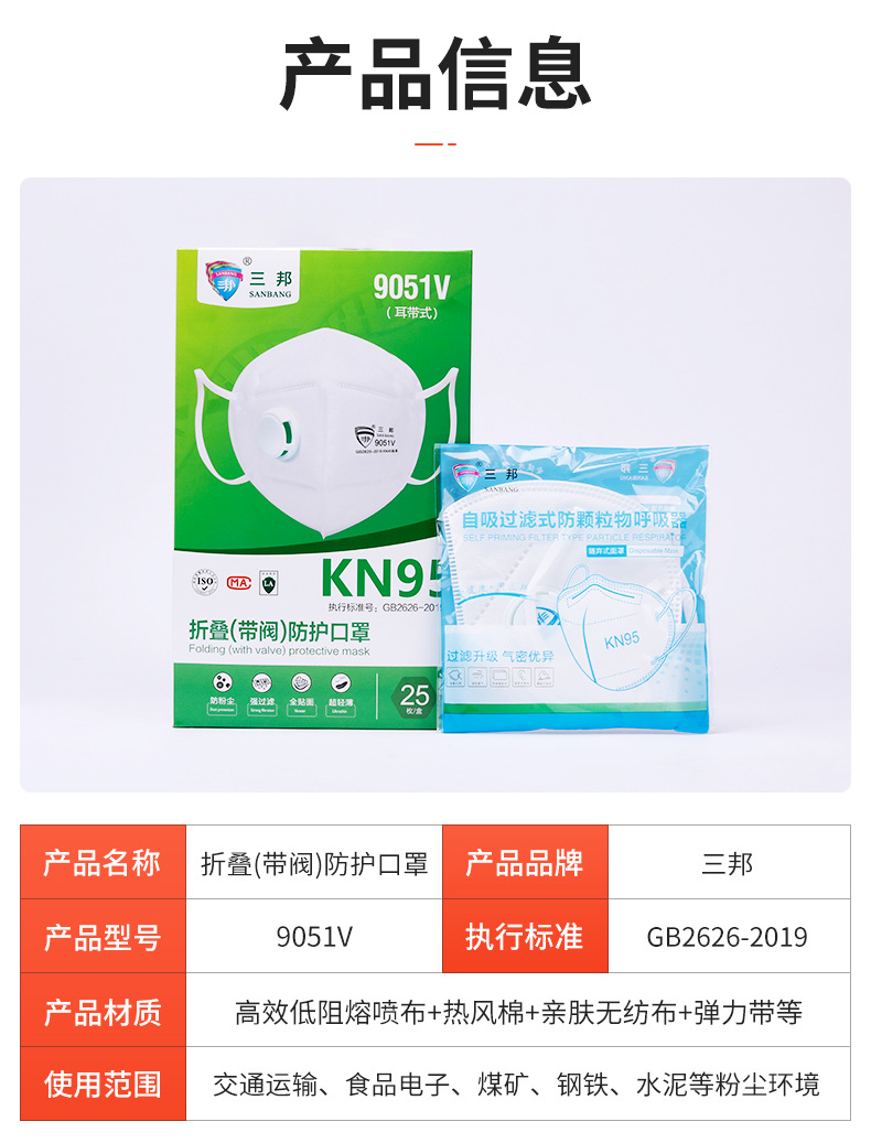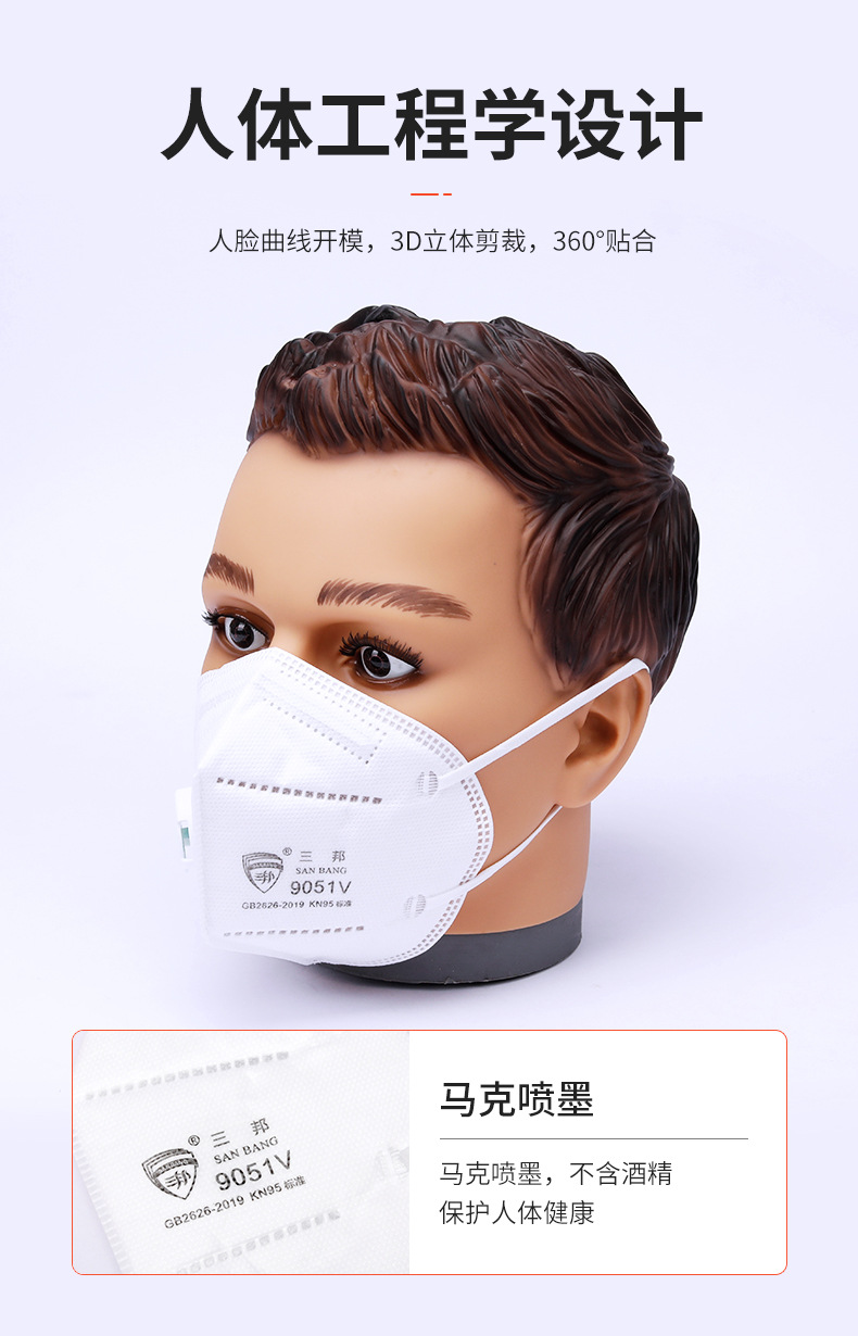 맞춤형 Sanbang 9051V 방진 마스크, 통기성 방진 KN95 마스크, 고효율 스모그 방지 필터 보호스토어 가기