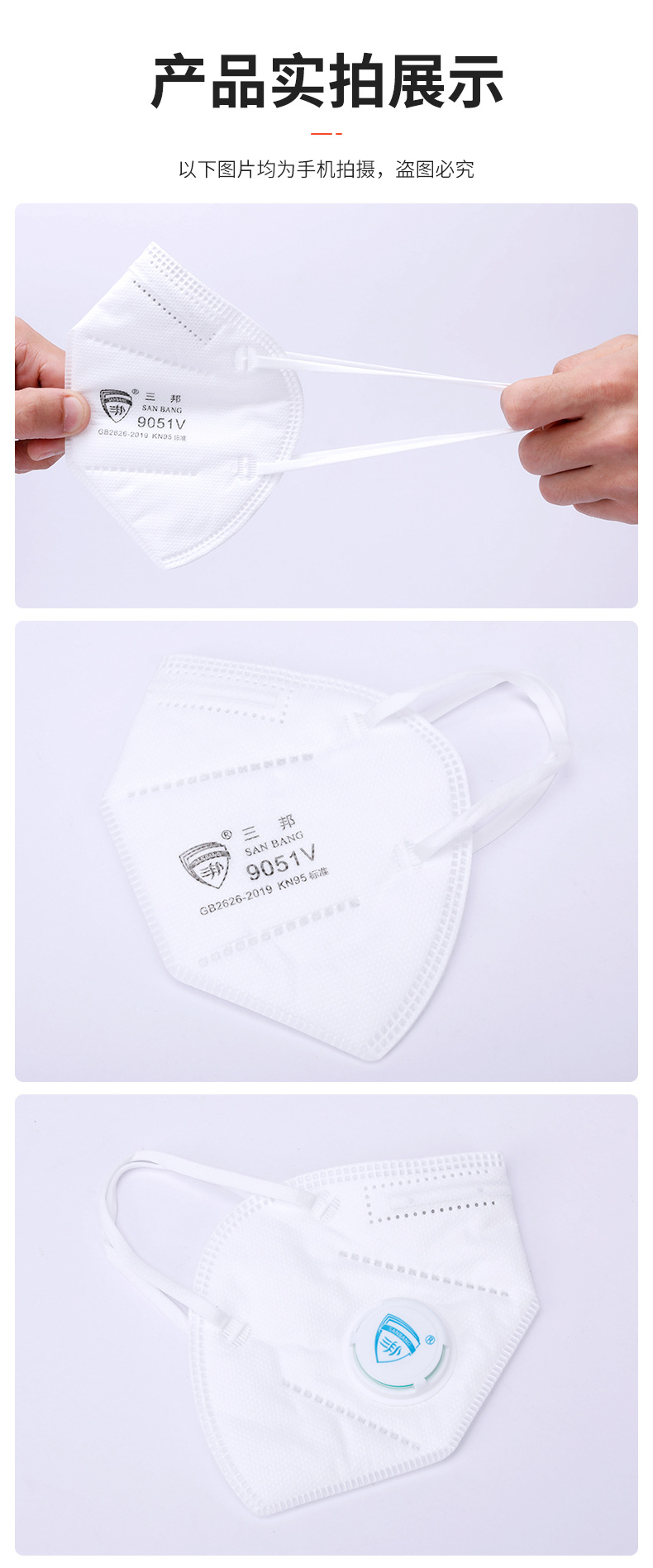 맞춤형 Sanbang 9051V 방진 마스크, 통기성 방진 KN95 마스크, 고효율 스모그 방지 필터 보호