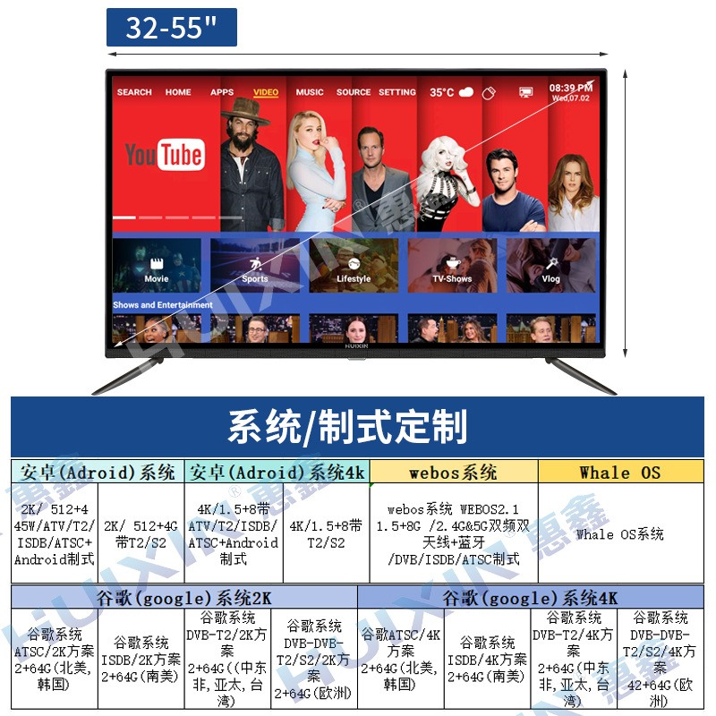 방폭형 TV 32/ 55inch 크로스보더 수출 호텔 고화질 네트워크 스마트 TV LCD 디스플레이스토어 가기