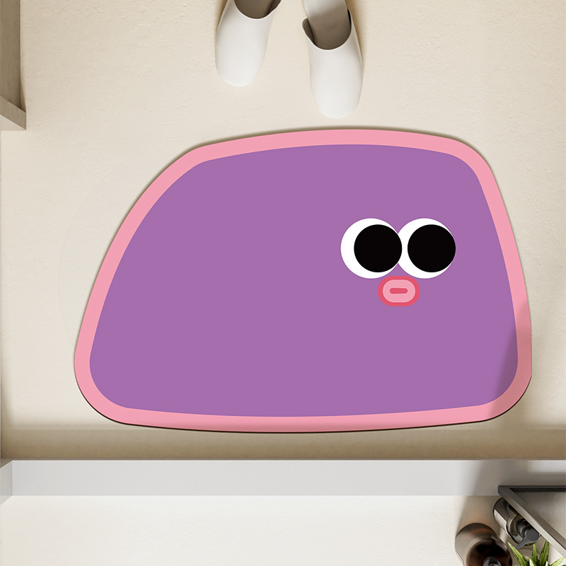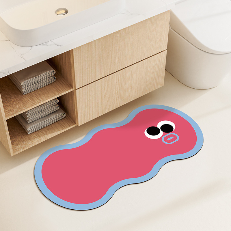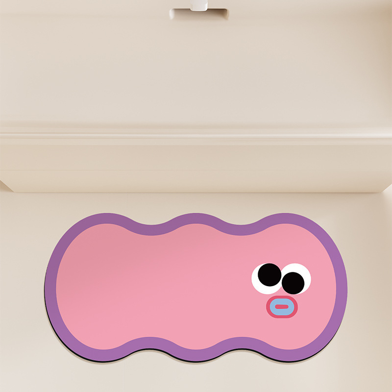 도파민 색 규조 진흙 매트 귀여운 만화 표현 욕실 미끄럼 방지 매트 욕실 흡수성 튼튼한 발 매트