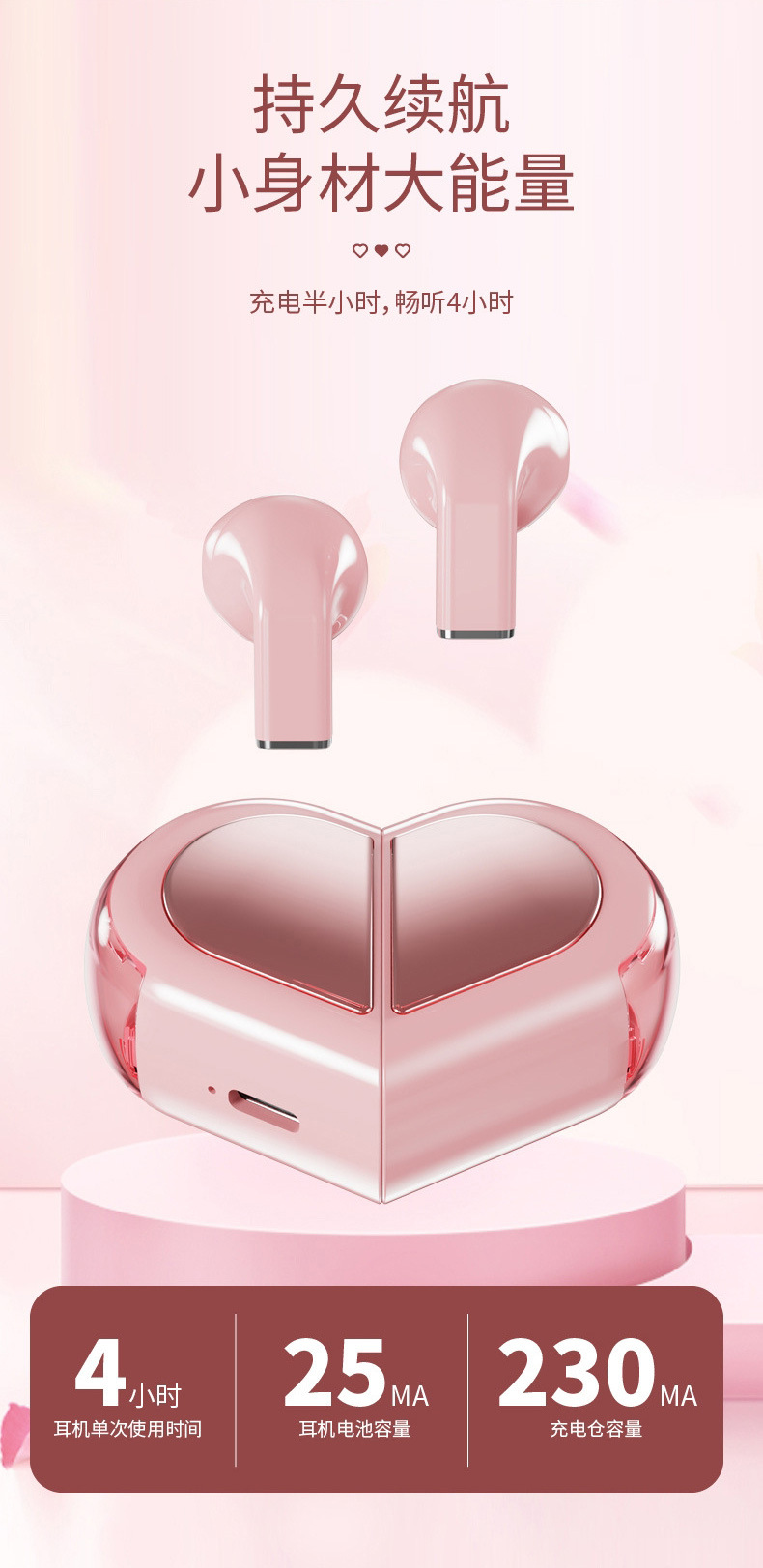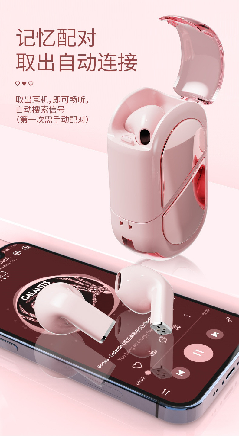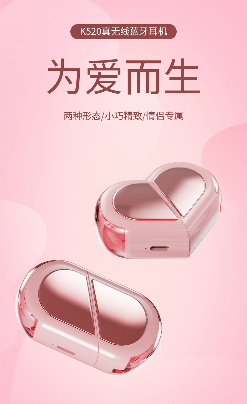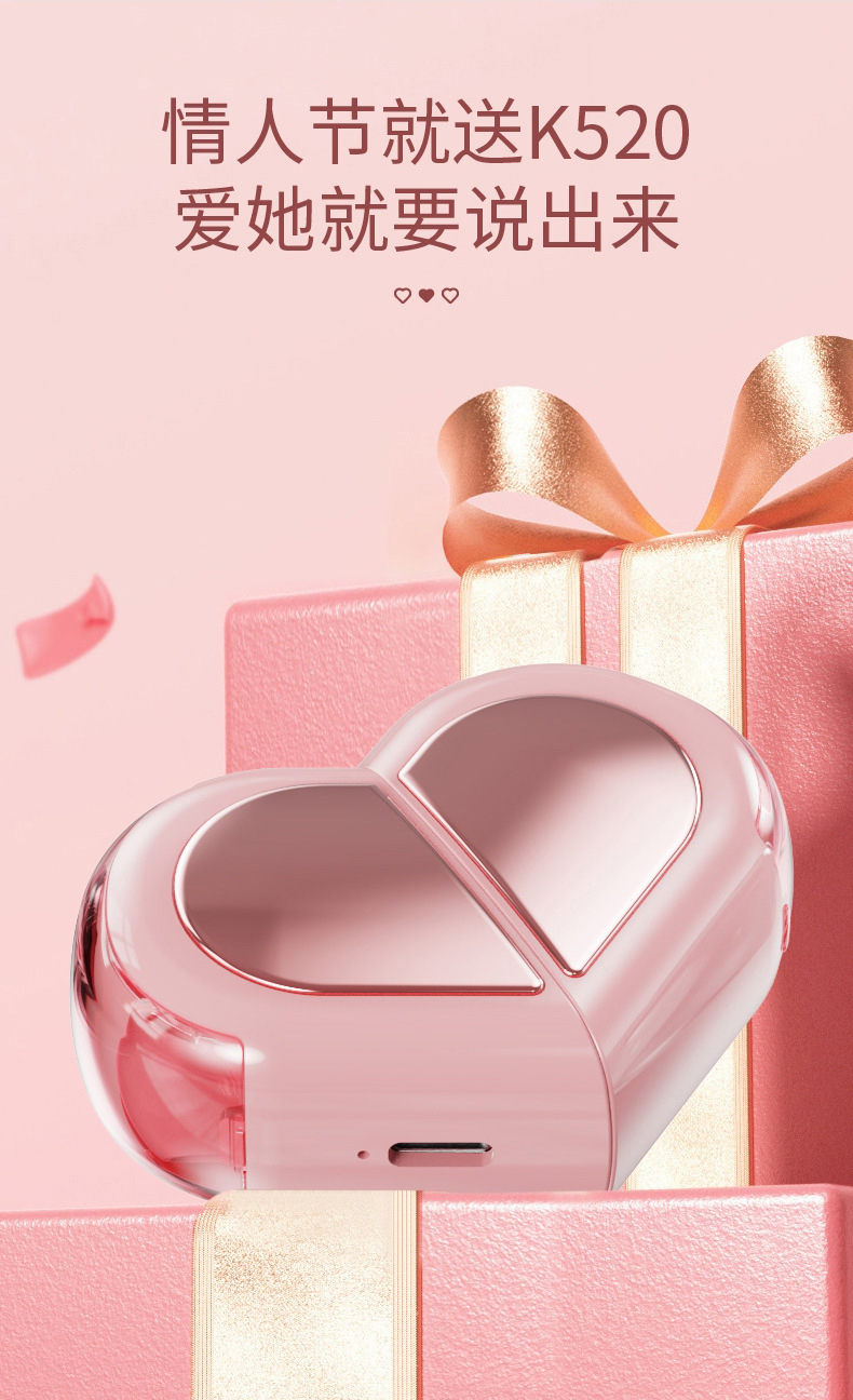 여자 친구와 커플이 음악을 듣고 무선으로 통화할 수 있는 크리에이티브 하트 모양의 변형 가능한 회전형 크로스보더 K520 블루투스 헤드셋스토어 가기