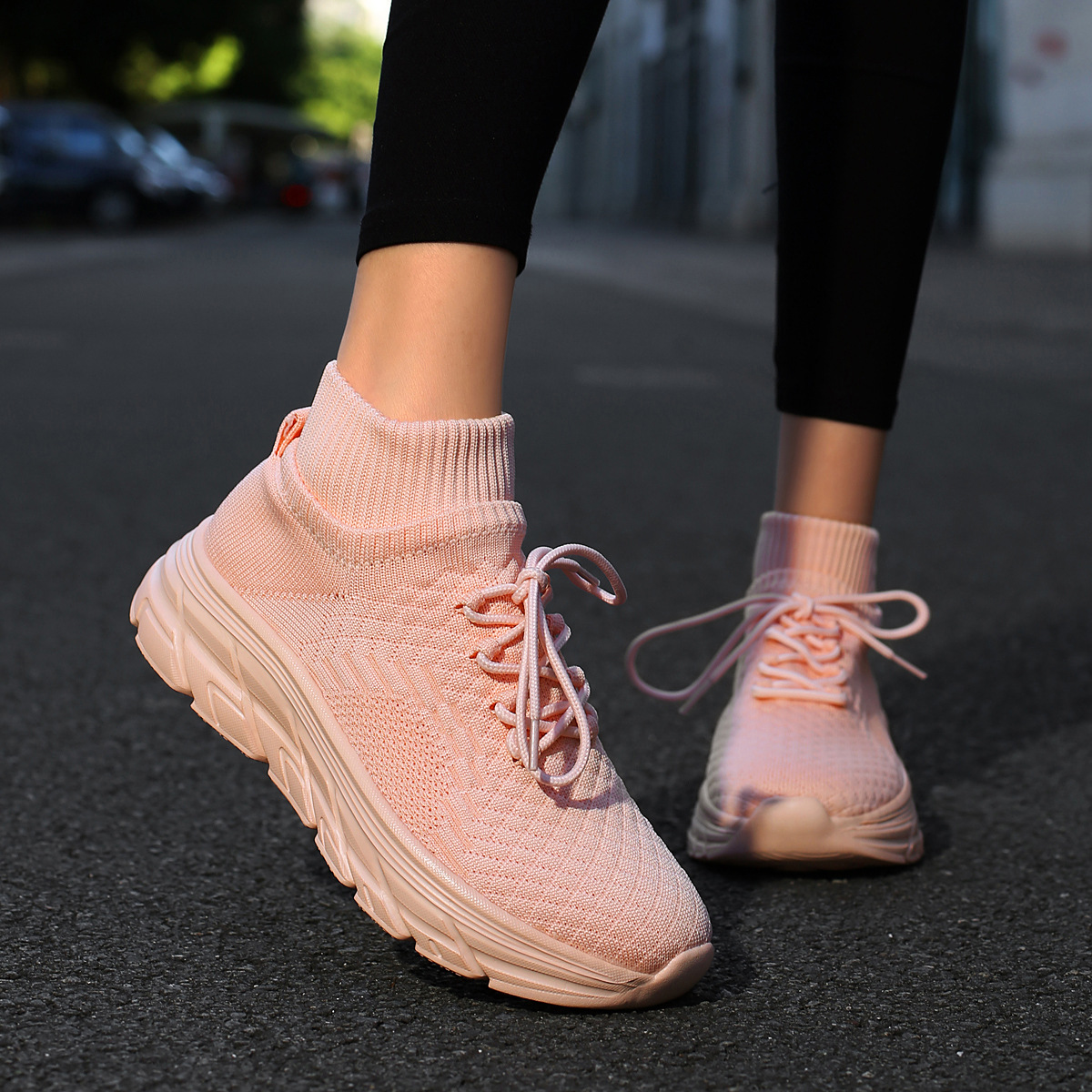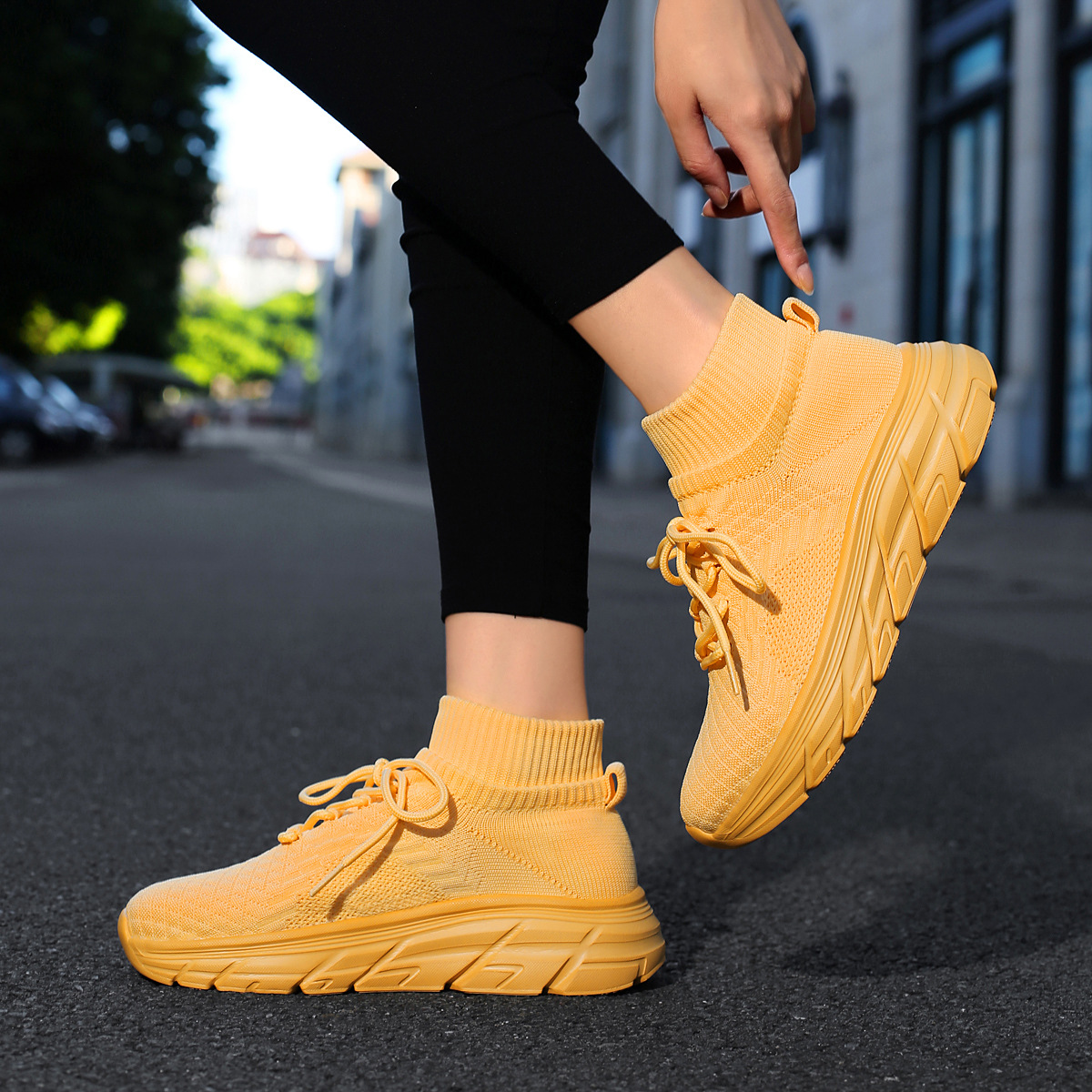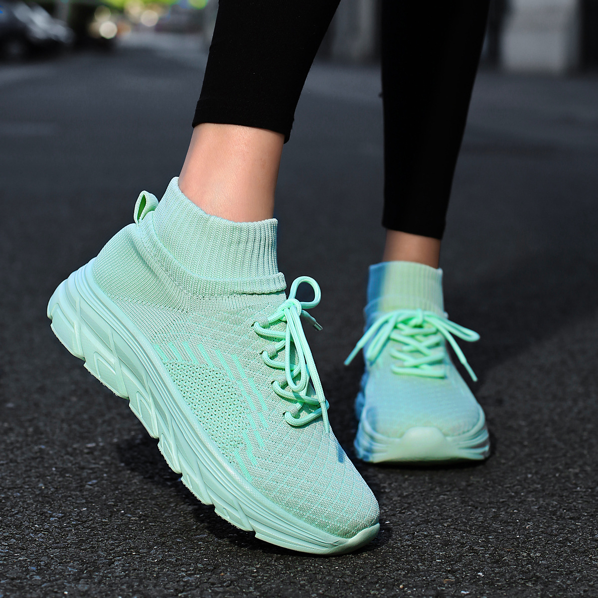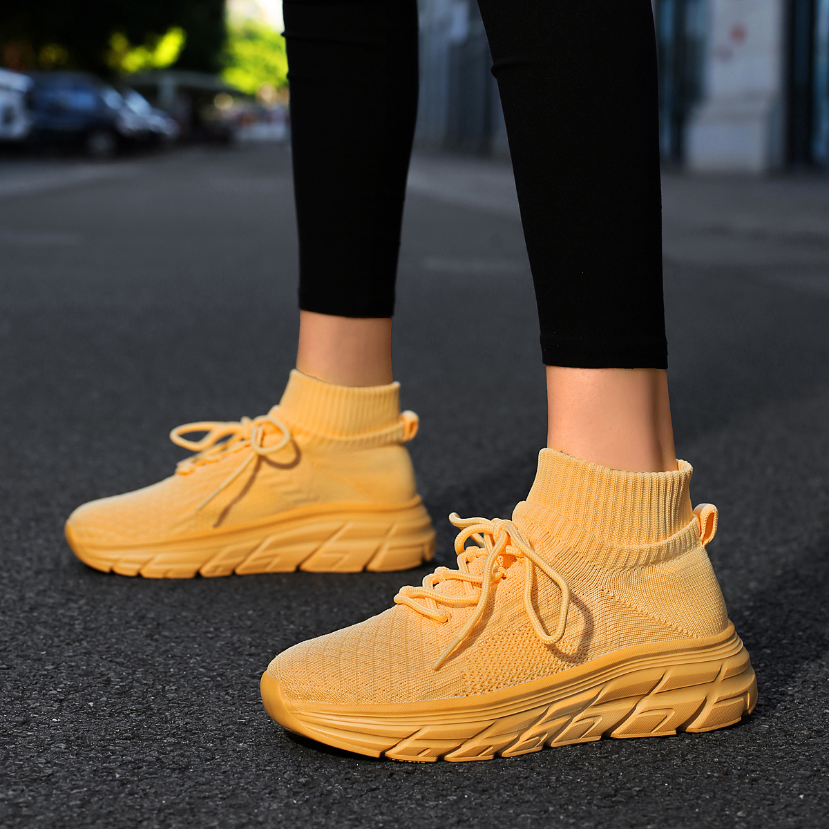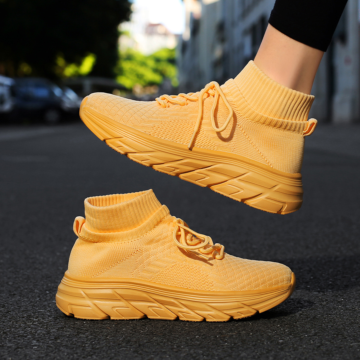 미국에서 직배송 가능한 트렌디한 플라이니트 슈즈, 여성용 슬립온 패션 양말 슈즈, 커플용 숏부츠, 아웃도어 트렌디 슈즈