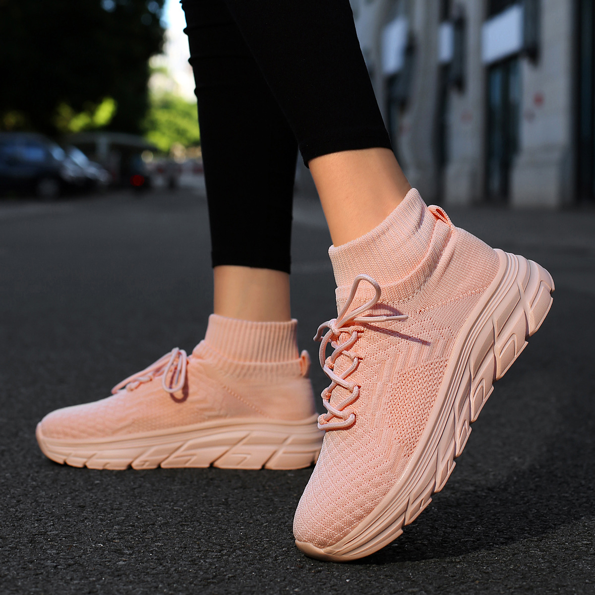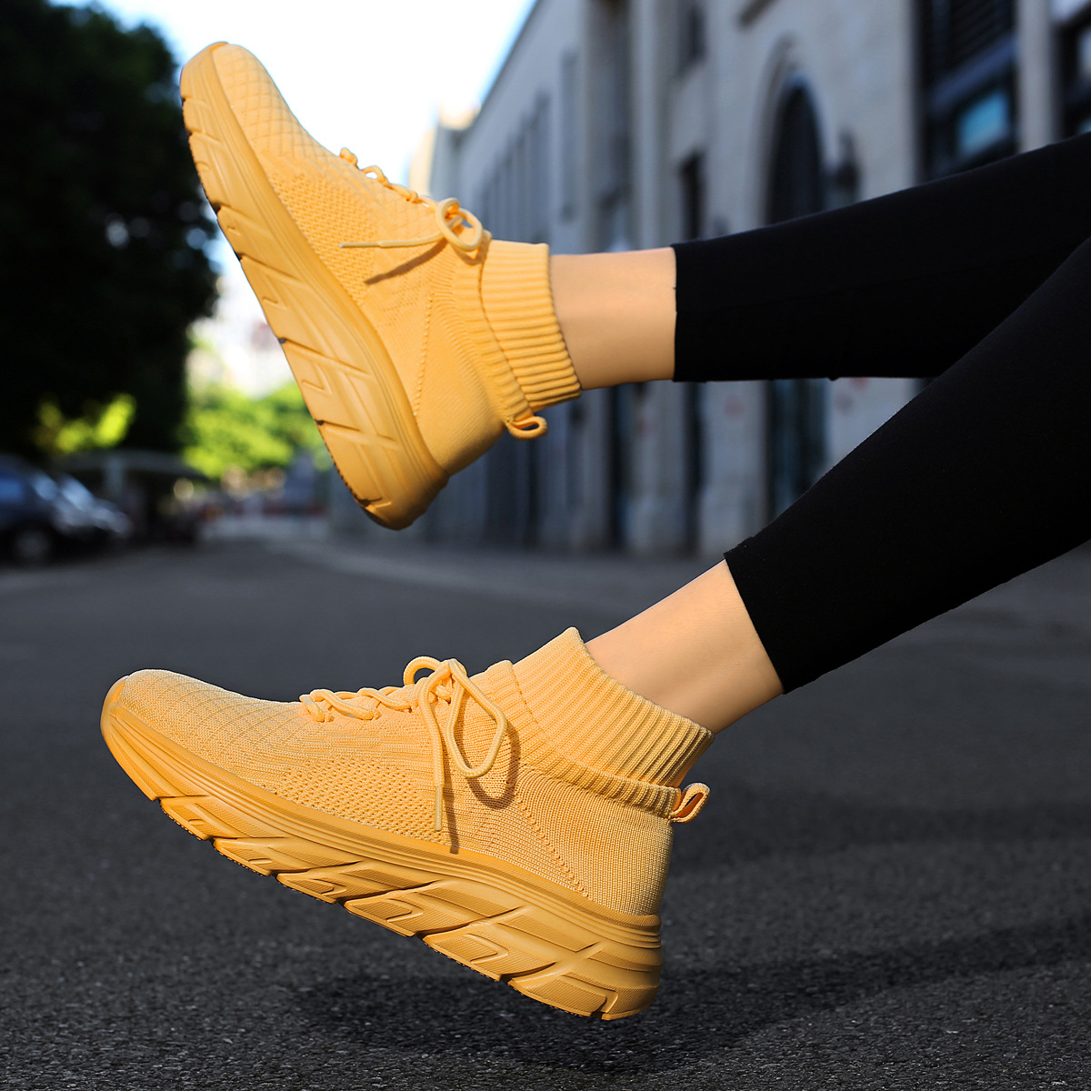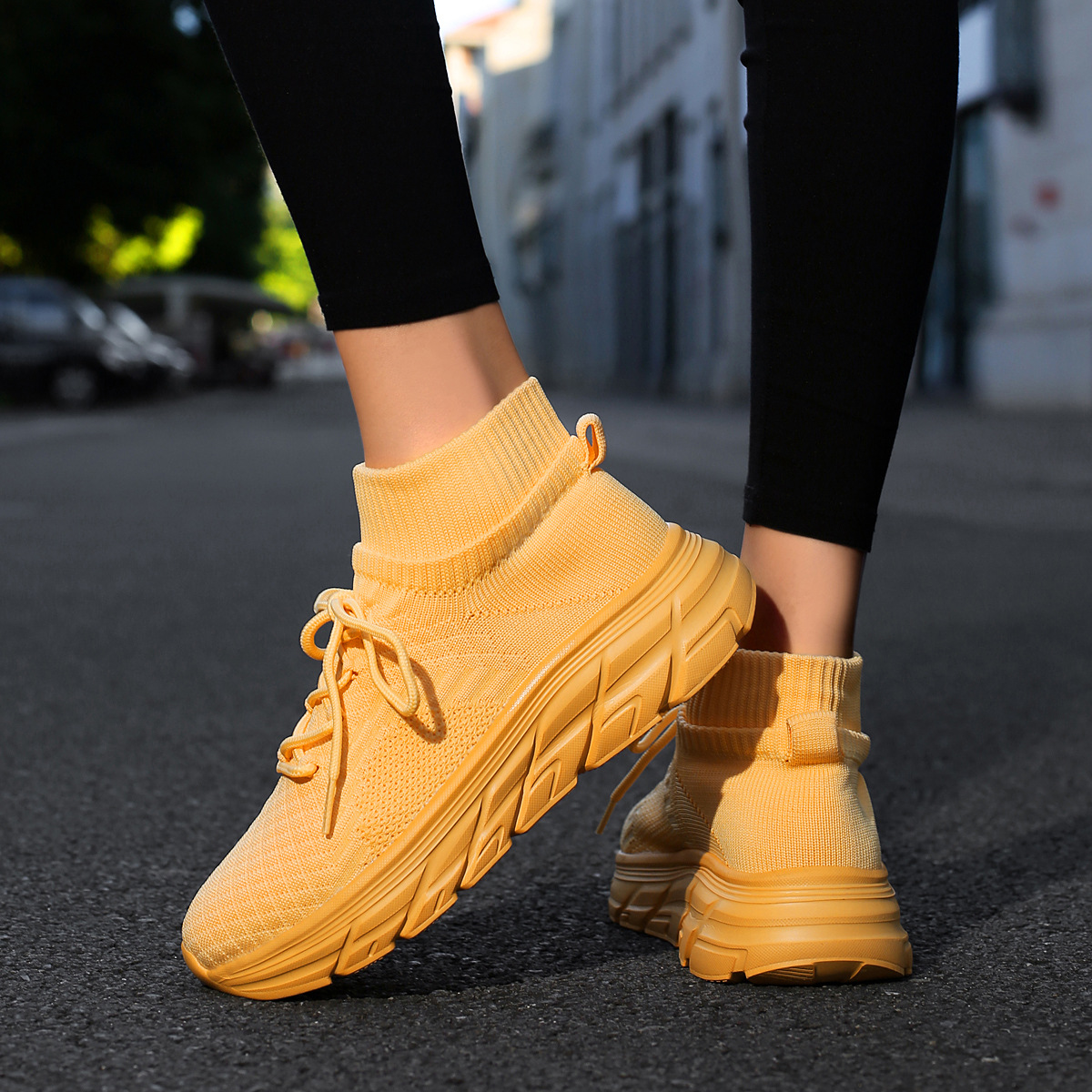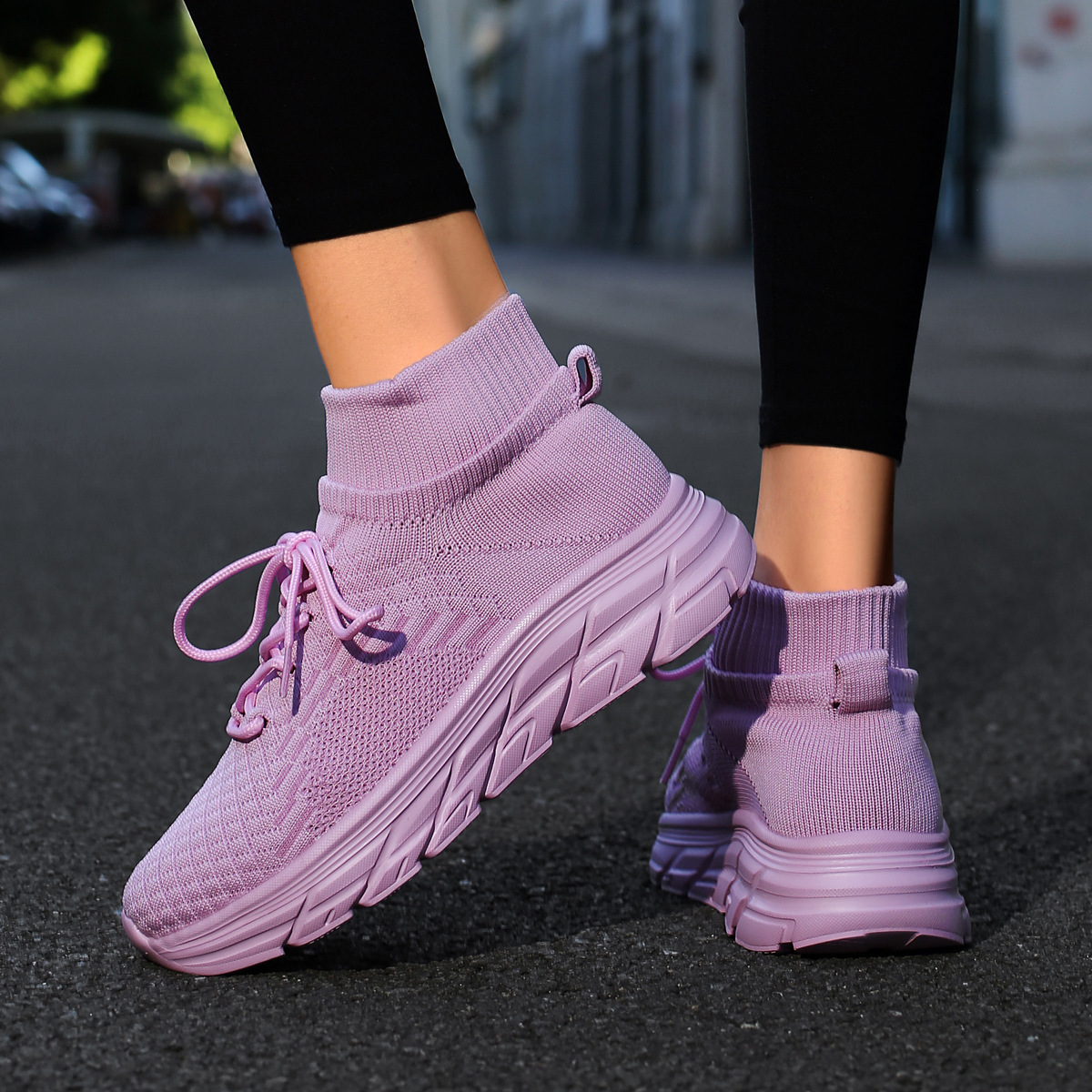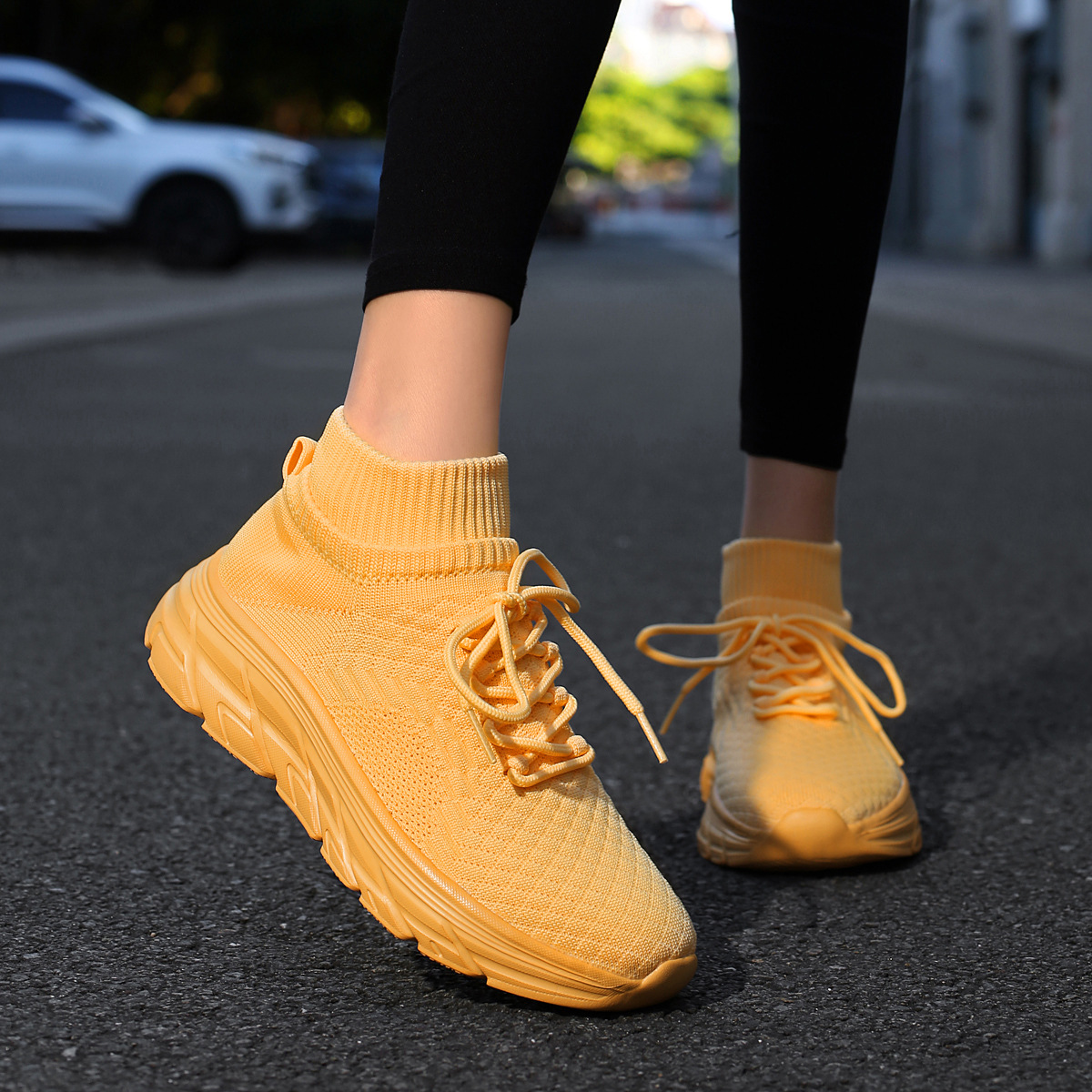 미국에서 직배송 가능한 트렌디한 플라이니트 슈즈, 여성용 슬립온 패션 양말 슈즈, 커플용 숏부츠, 아웃도어 트렌디 슈즈
