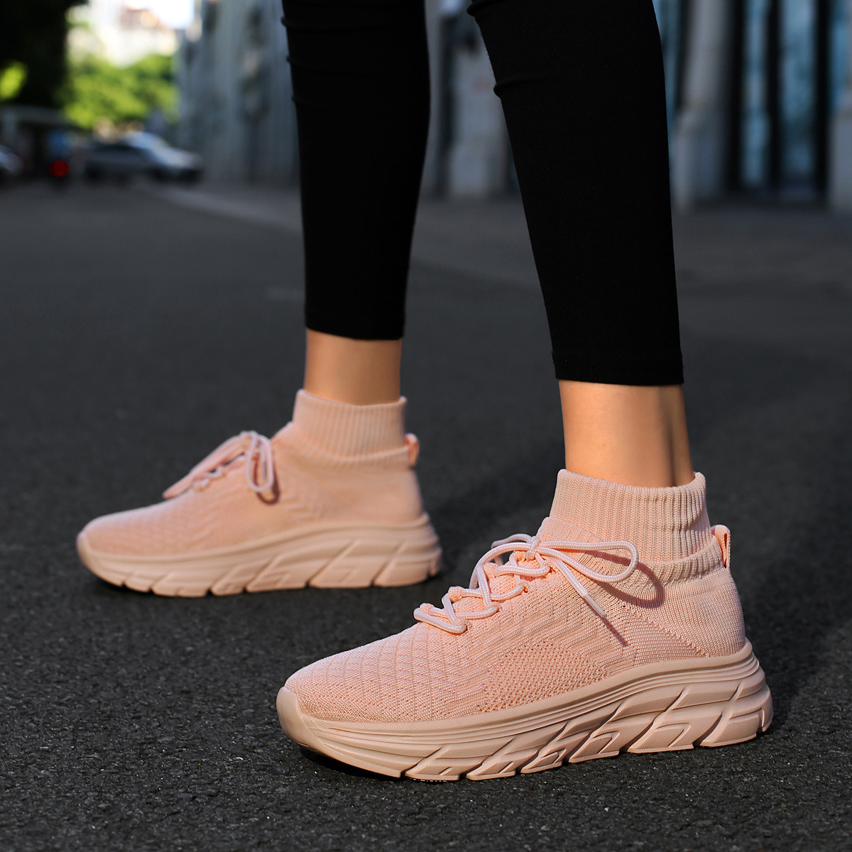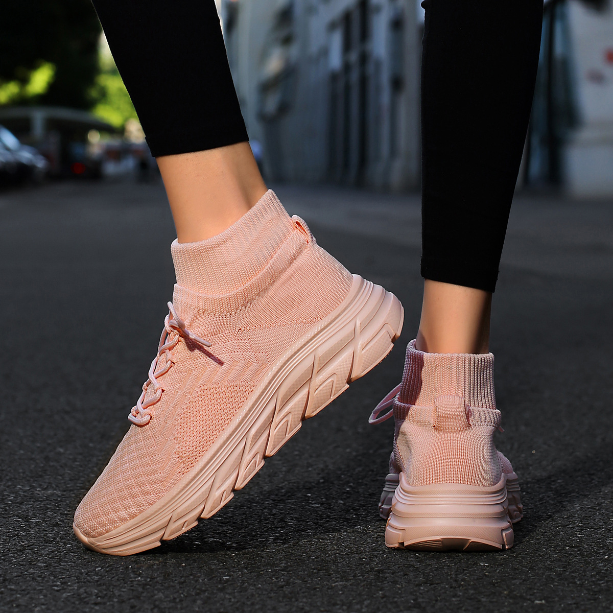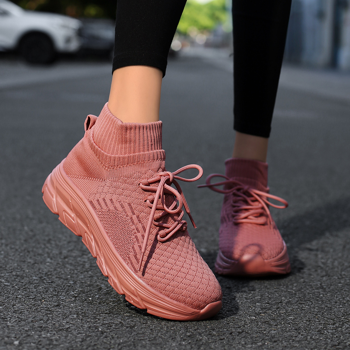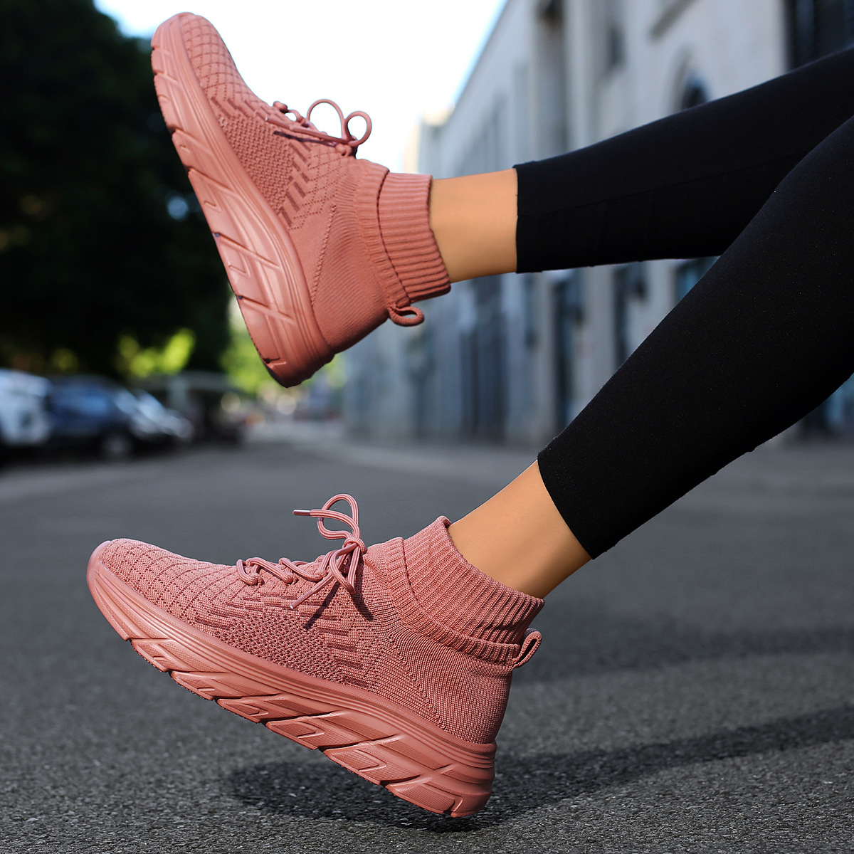 미국에서 직배송 가능한 트렌디한 플라이니트 슈즈, 여성용 슬립온 패션 양말 슈즈, 커플용 숏부츠, 아웃도어 트렌디 슈즈