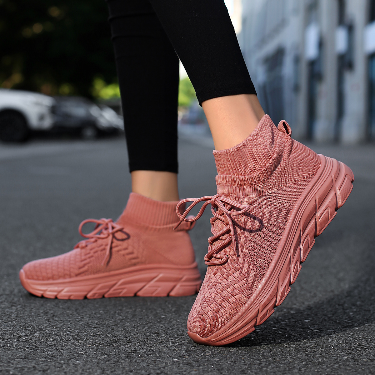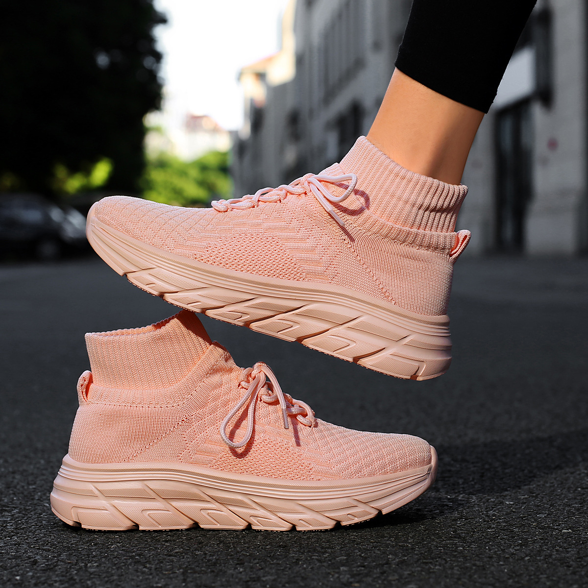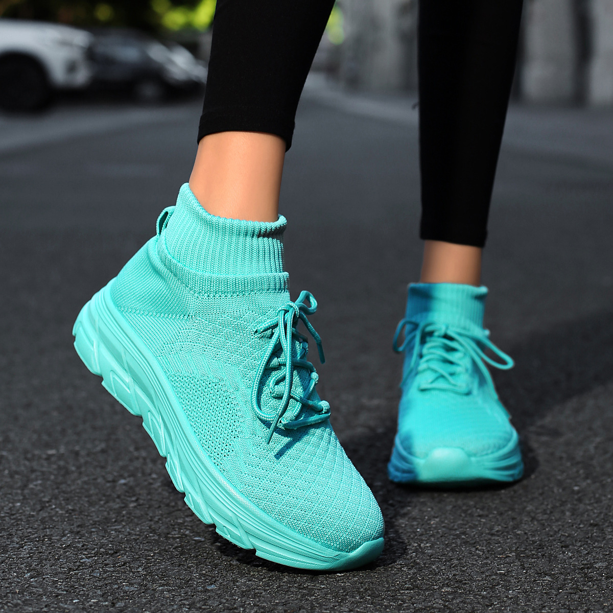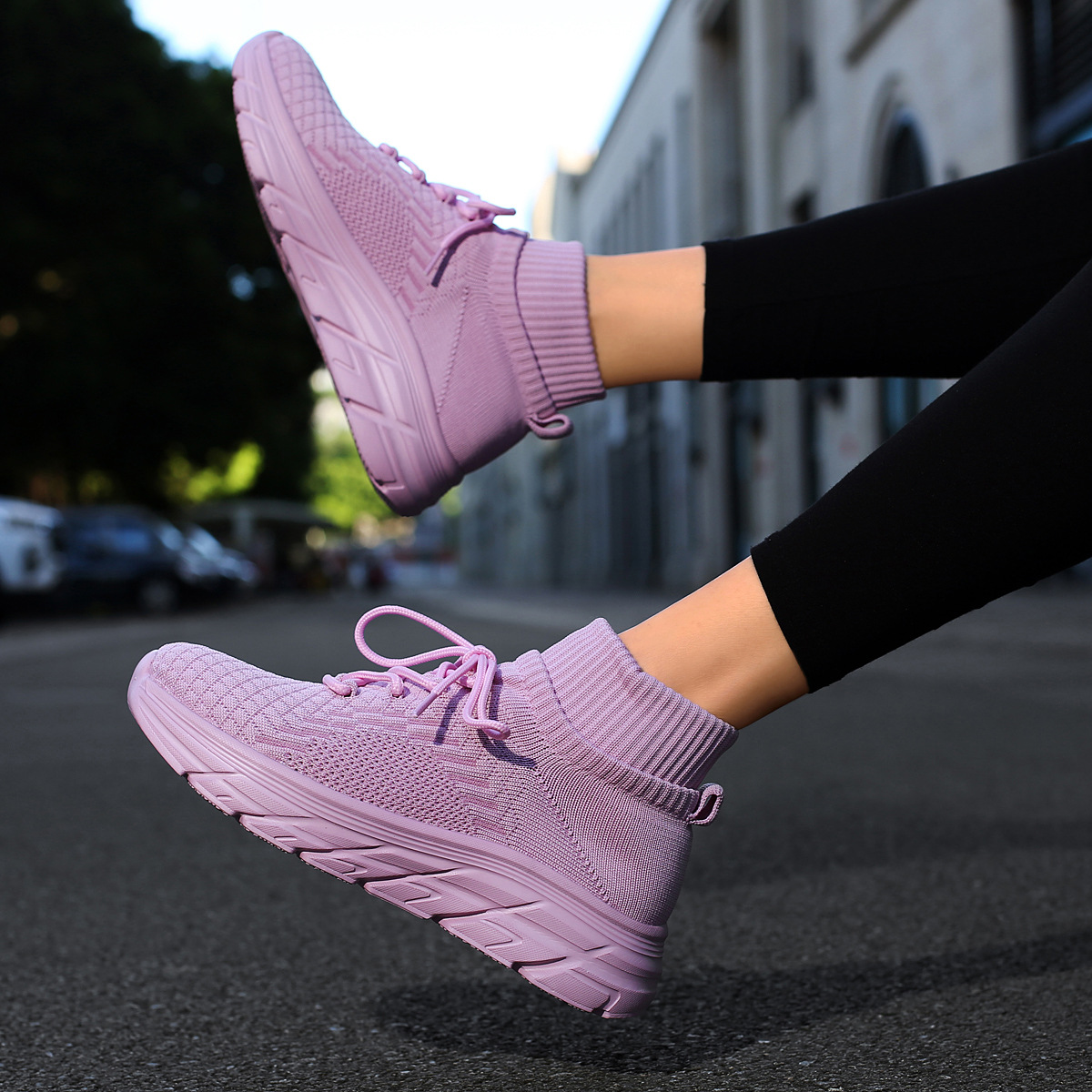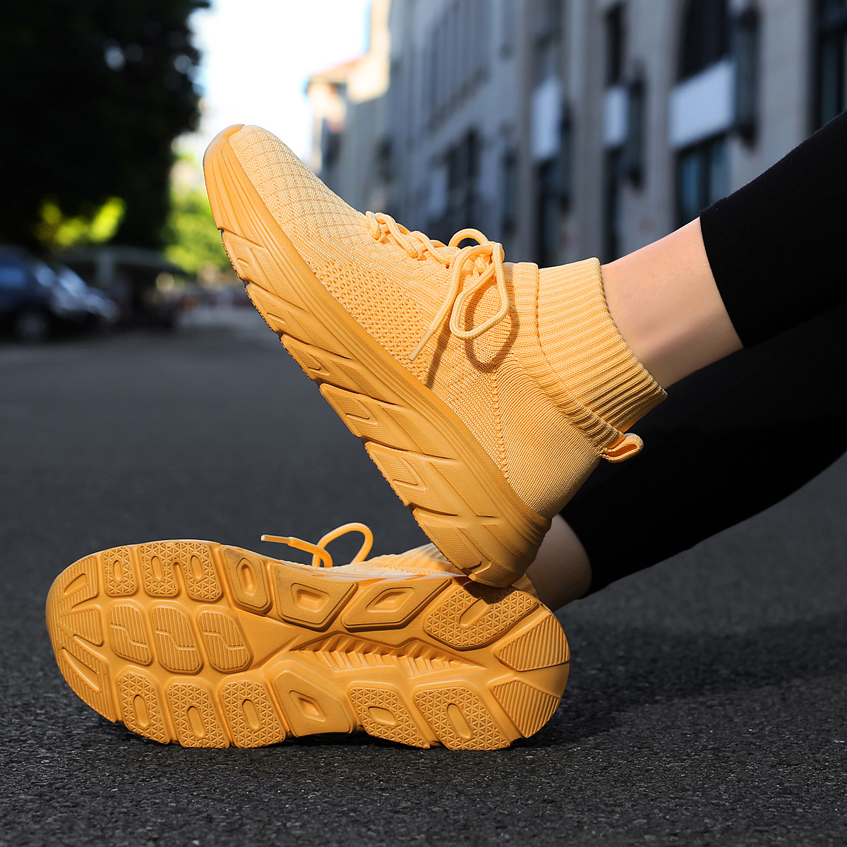 미국에서 직배송 가능한 트렌디한 플라이니트 슈즈, 여성용 슬립온 패션 양말 슈즈, 커플용 숏부츠, 아웃도어 트렌디 슈즈
