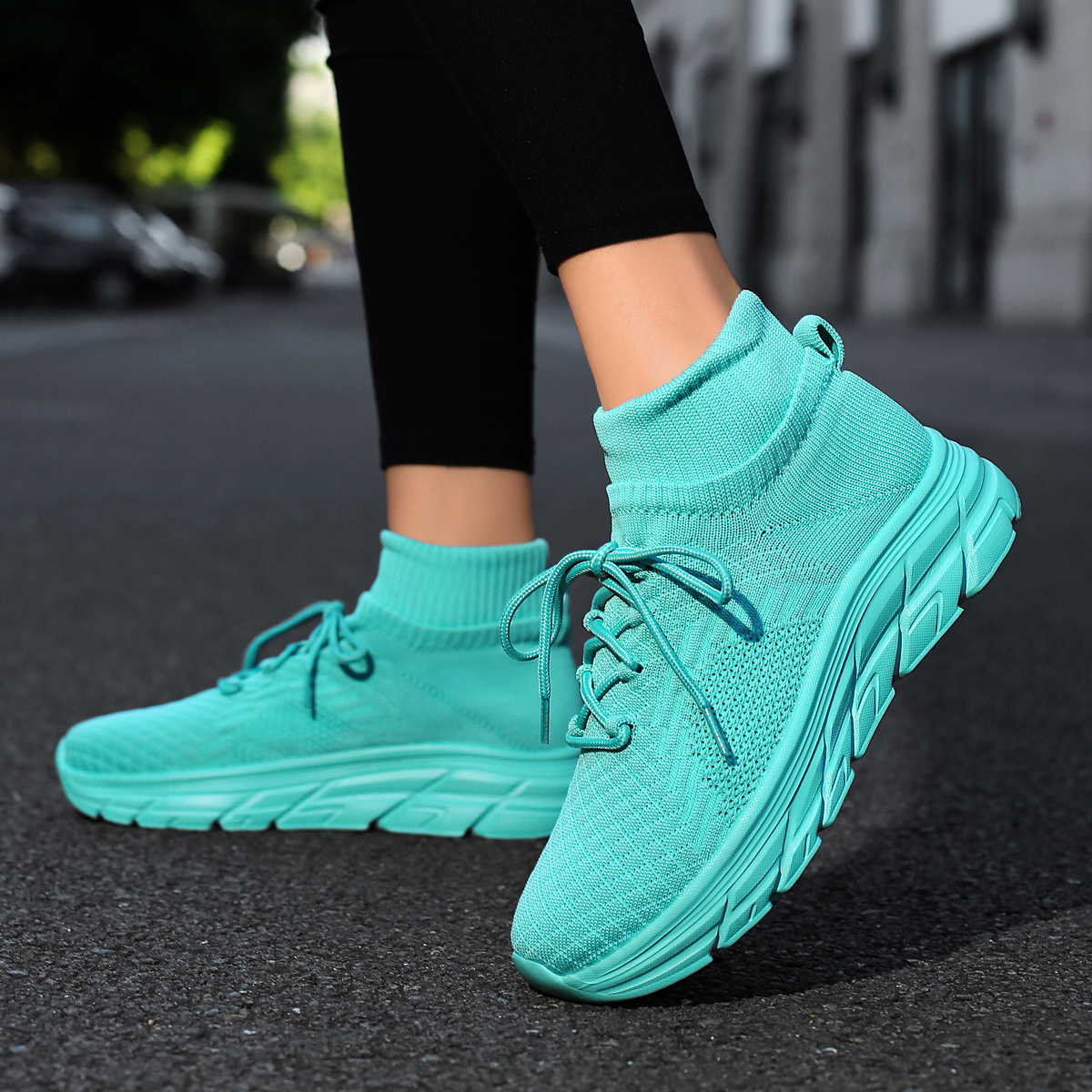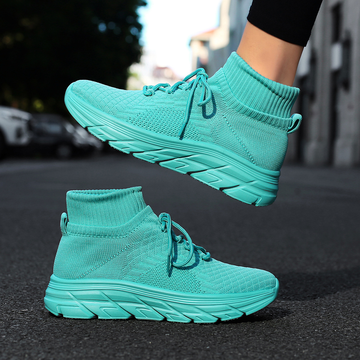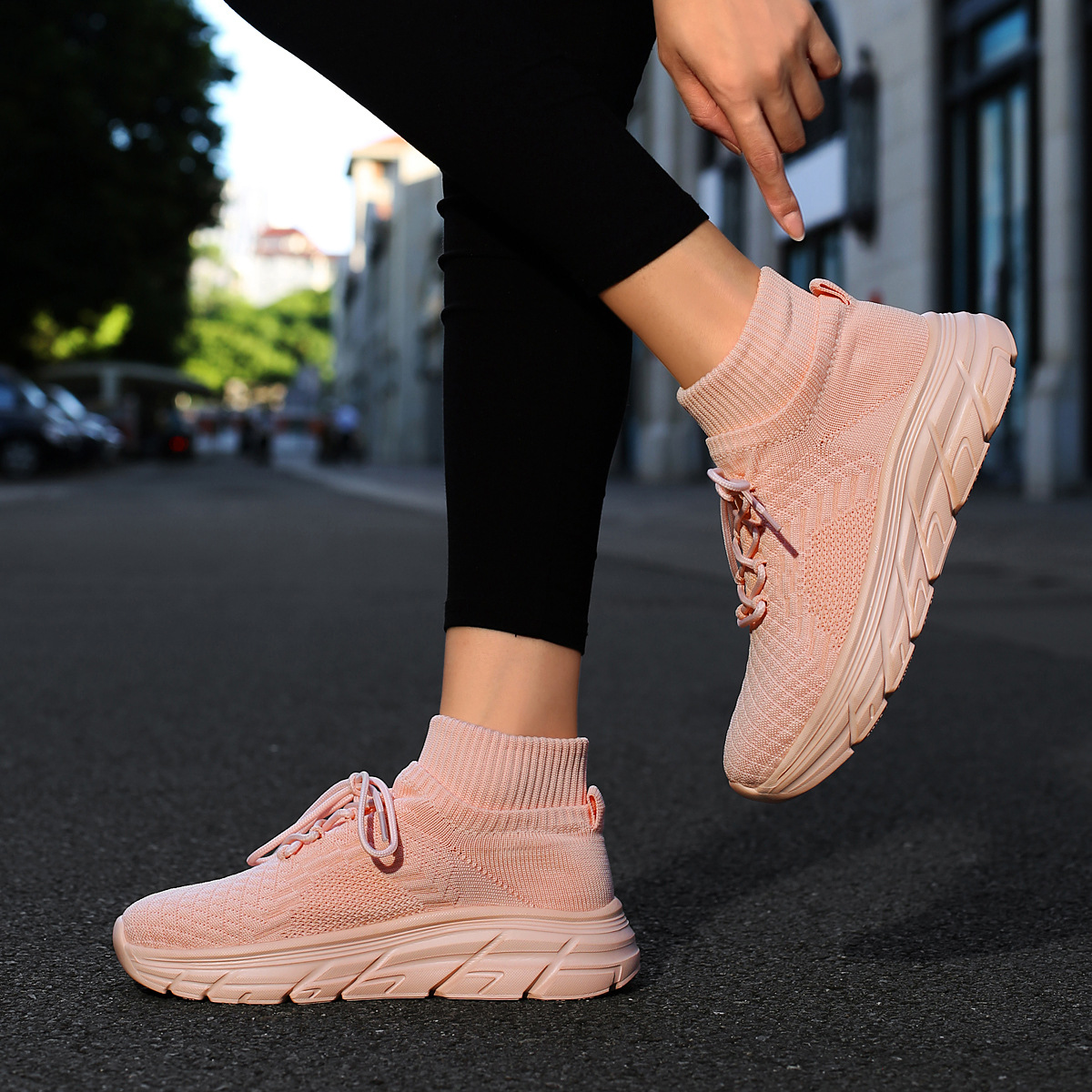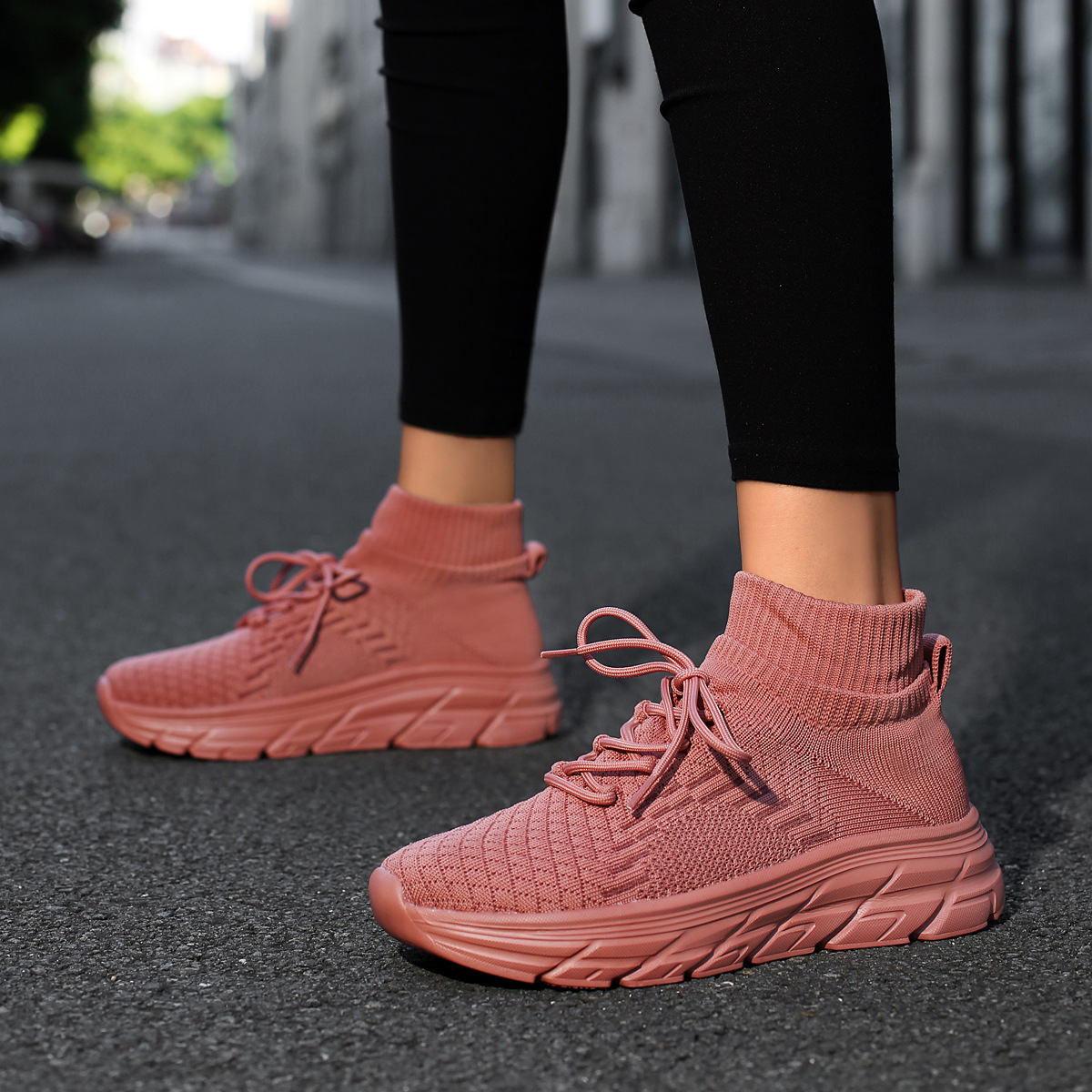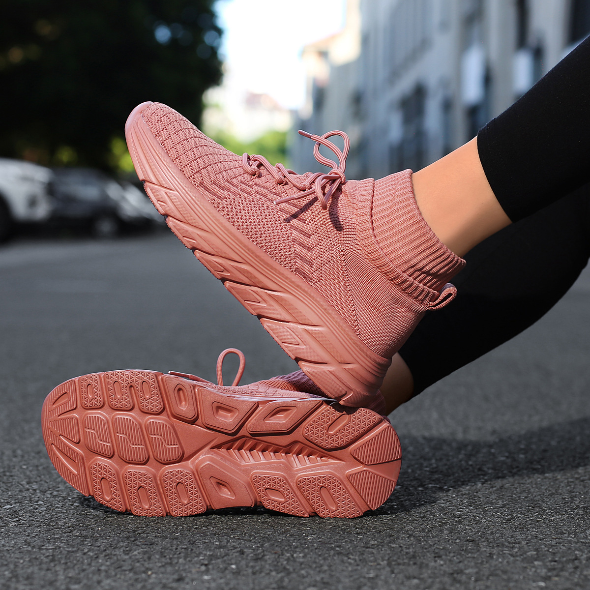 미국에서 직배송 가능한 트렌디한 플라이니트 슈즈, 여성용 슬립온 패션 양말 슈즈, 커플용 숏부츠, 아웃도어 트렌디 슈즈