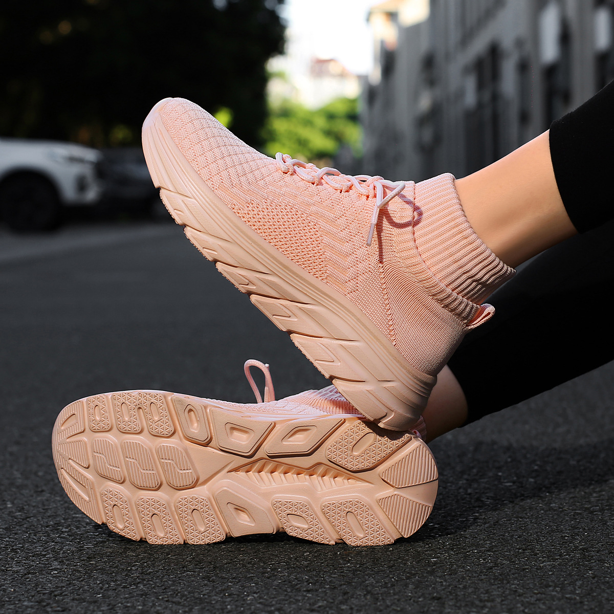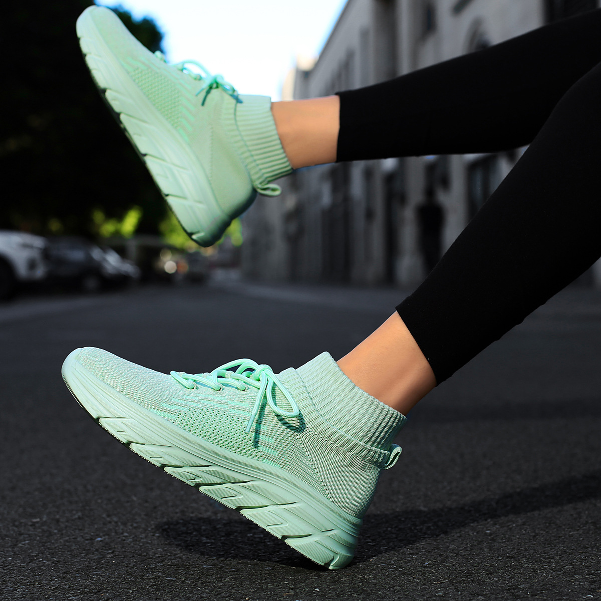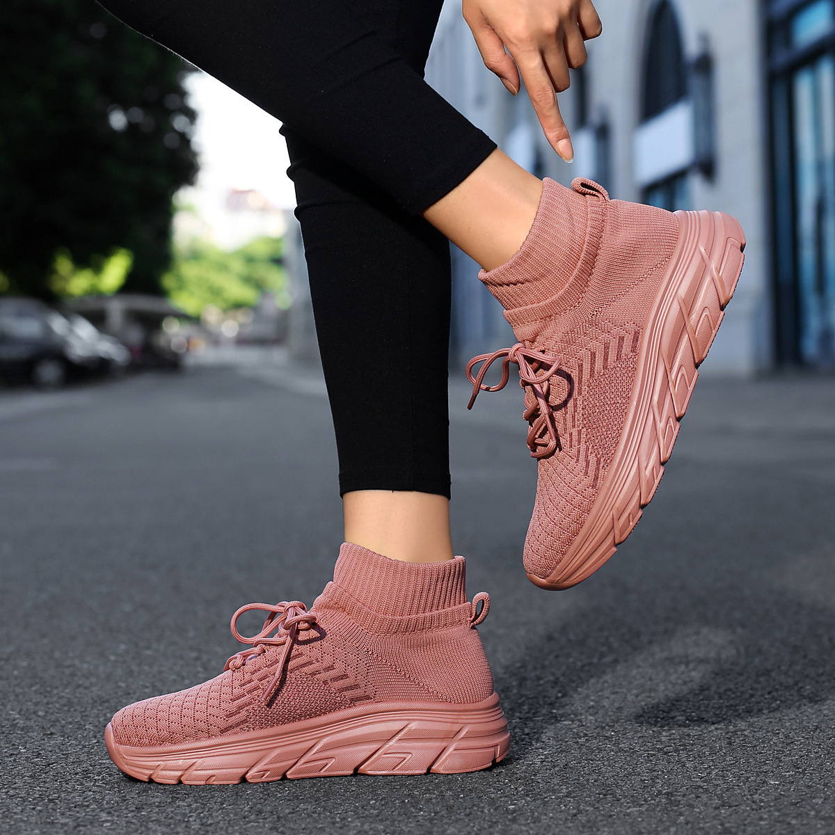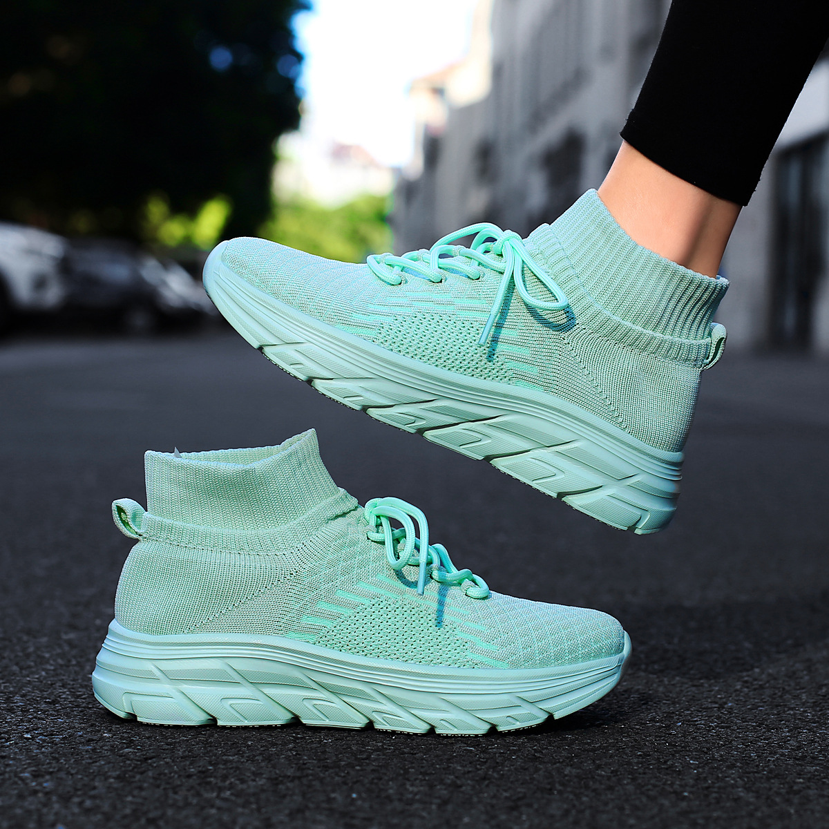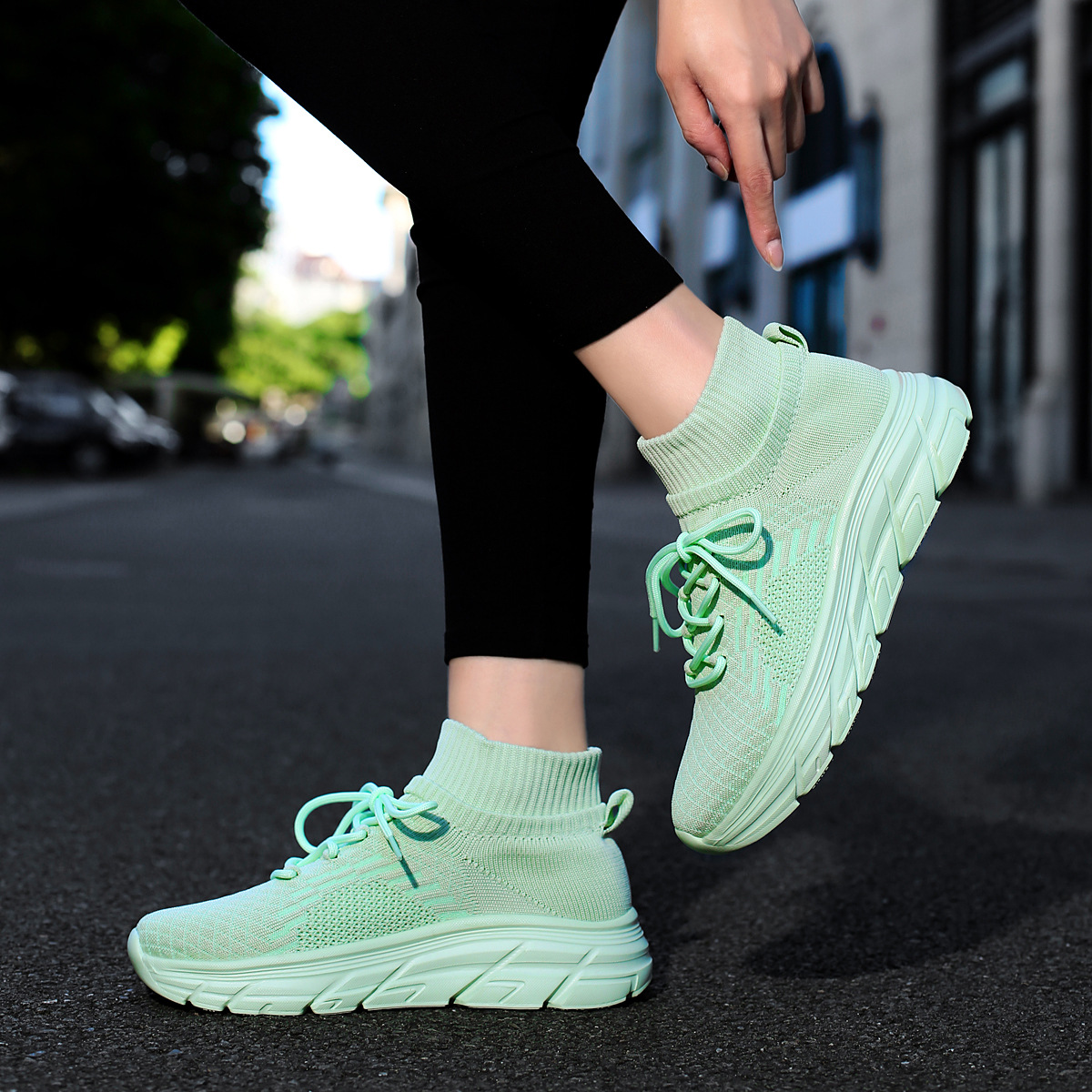 미국에서 직배송 가능한 트렌디한 플라이니트 슈즈, 여성용 슬립온 패션 양말 슈즈, 커플용 숏부츠, 아웃도어 트렌디 슈즈