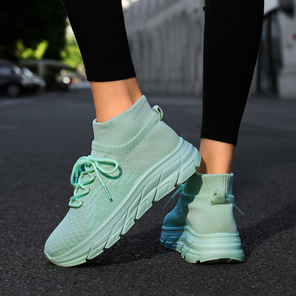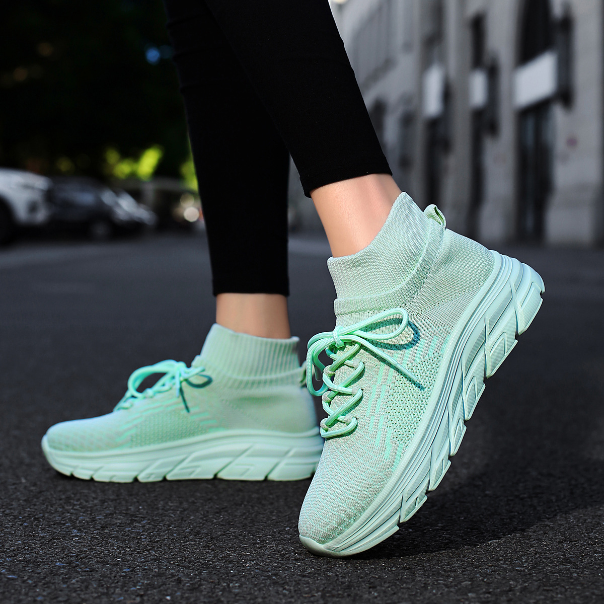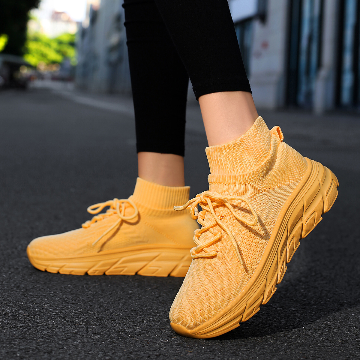 미국에서 직배송 가능한 트렌디한 플라이니트 슈즈, 여성용 슬립온 패션 양말 슈즈, 커플용 숏부츠, 아웃도어 트렌디 슈즈스토어 가기