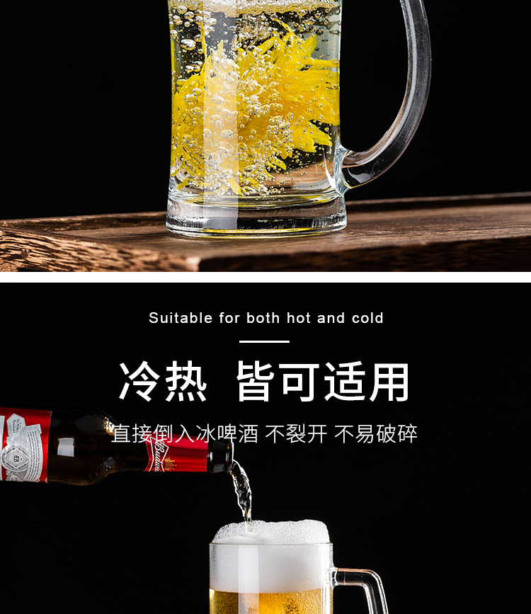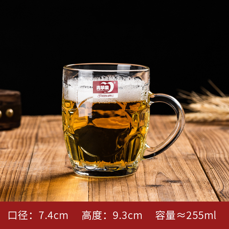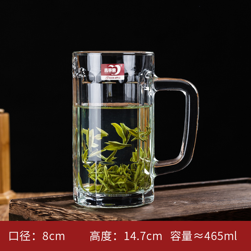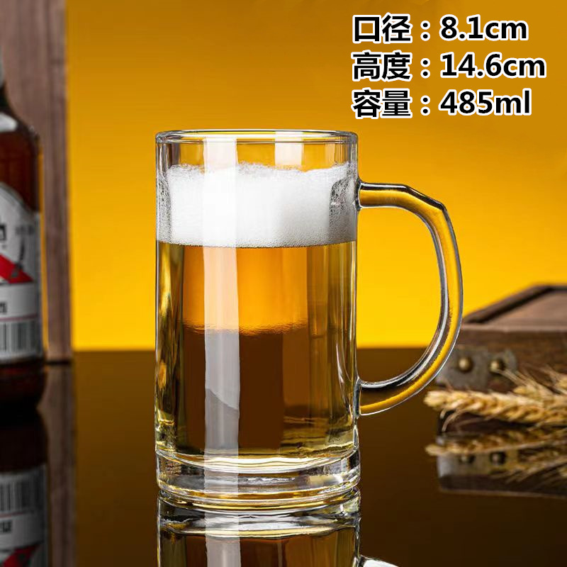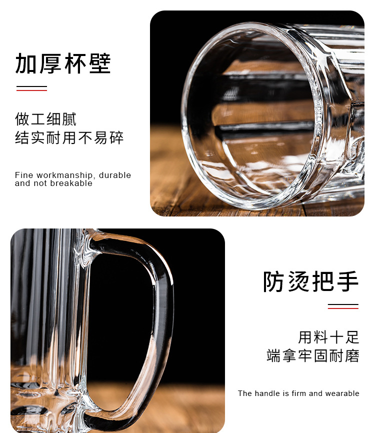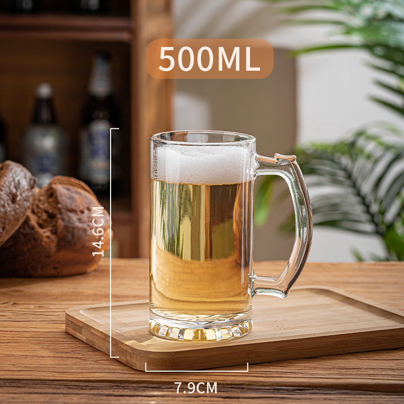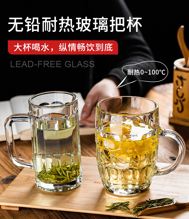 투명 유리 내열성 대형 두꺼운 찻집 핸들 바 맥주 컵 커버 바 선물 인쇄 로고
