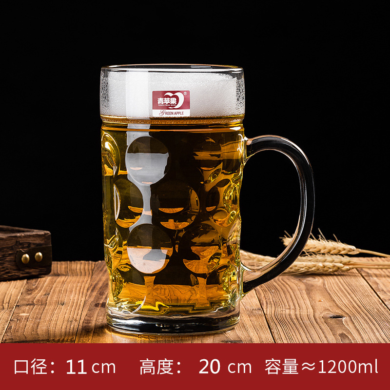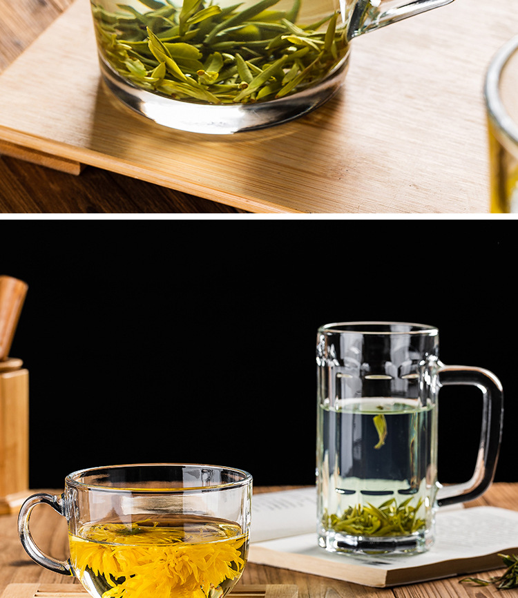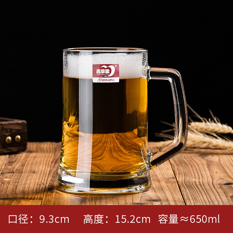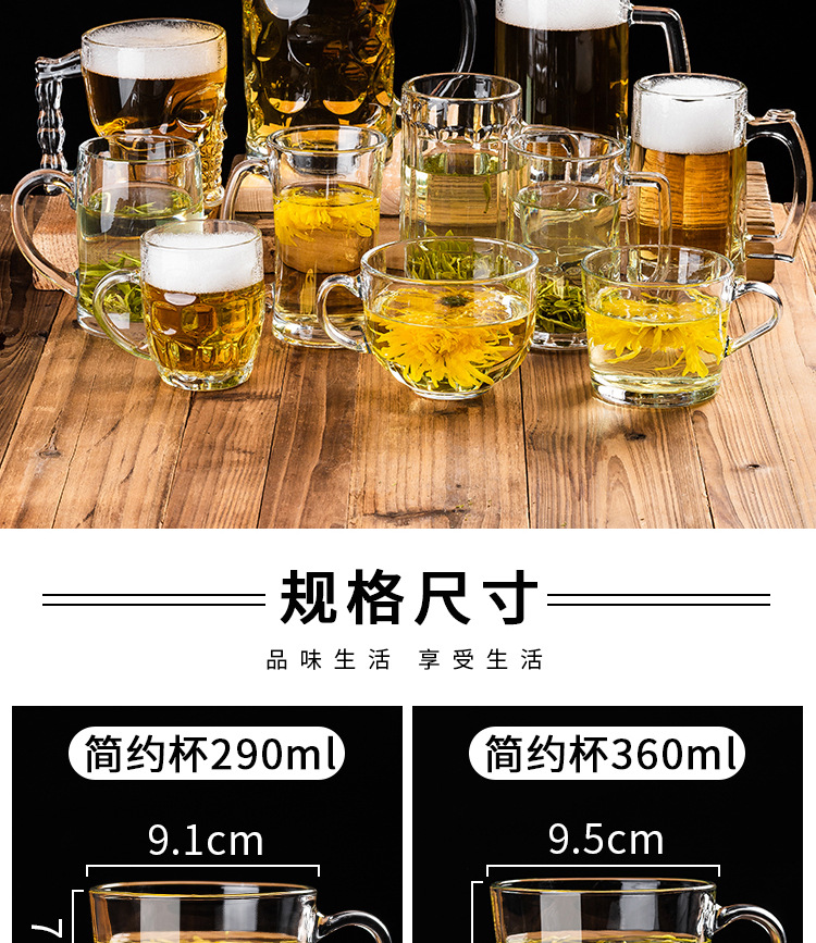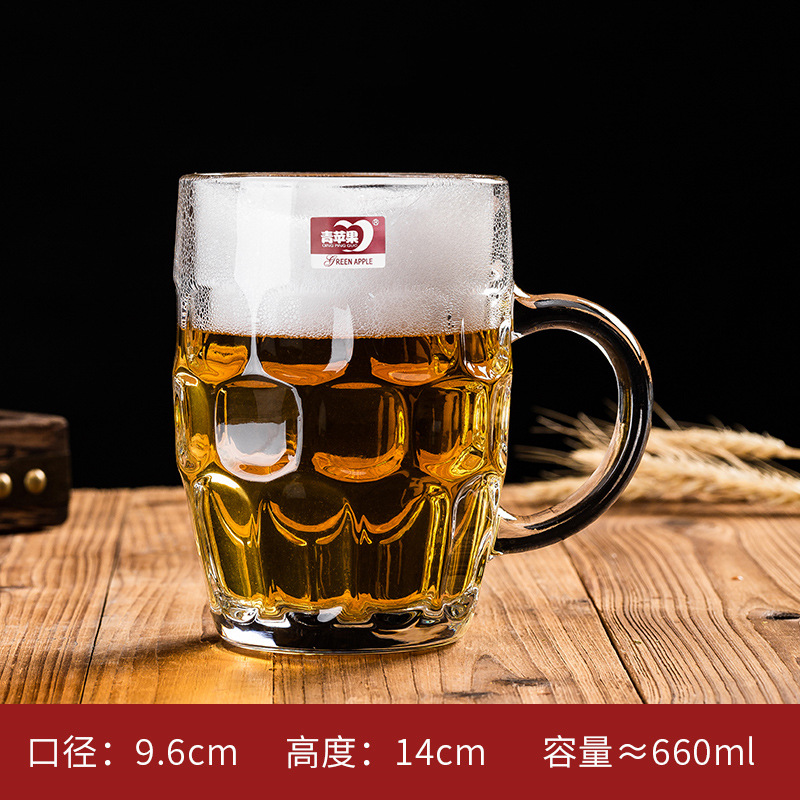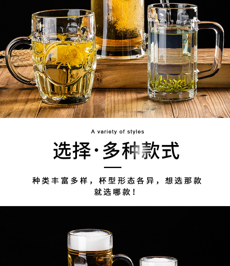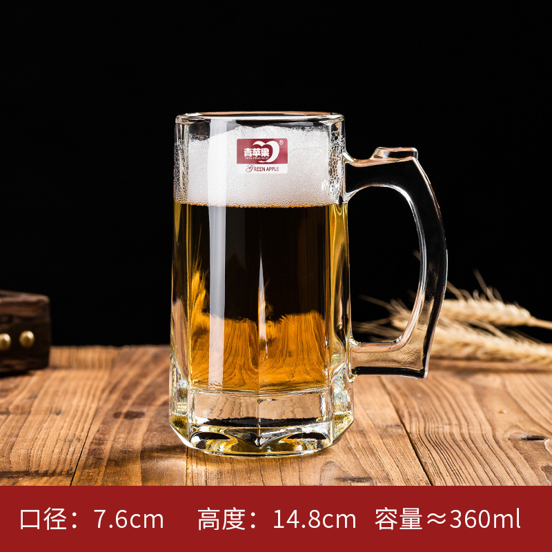 투명 유리 내열성 대형 두꺼운 찻집 핸들 바 맥주 컵 커버 바 선물 인쇄 로고