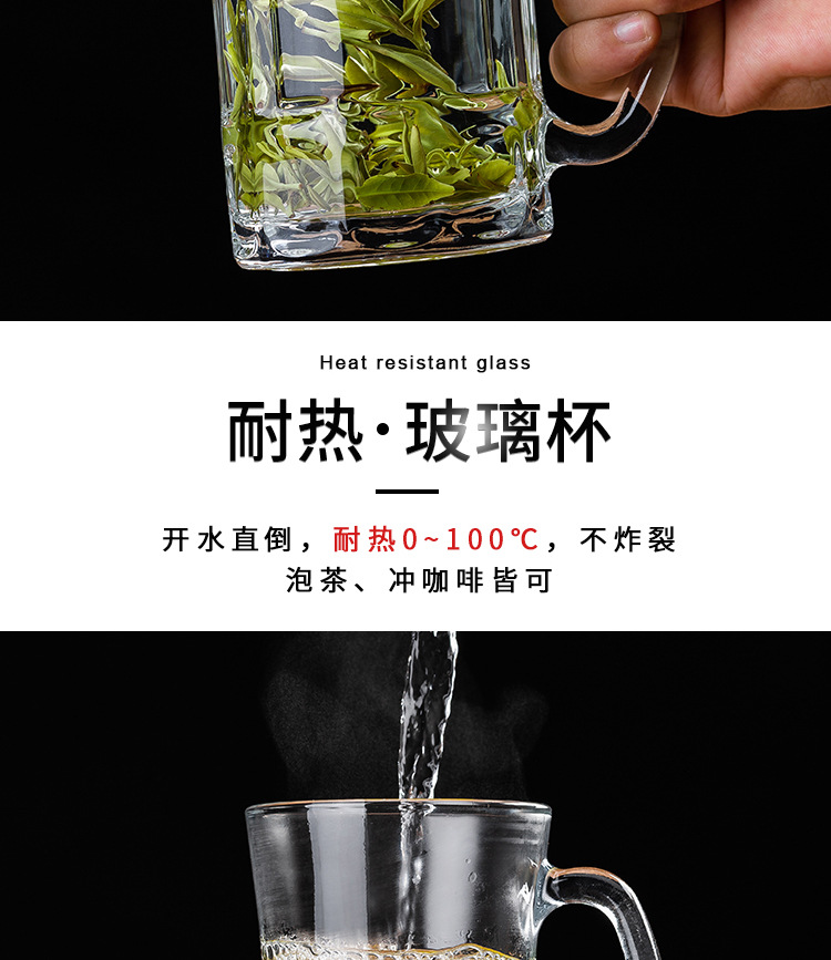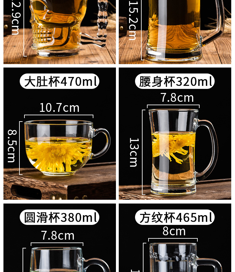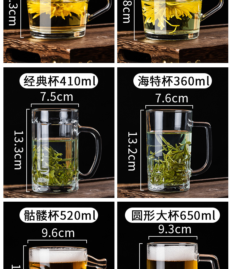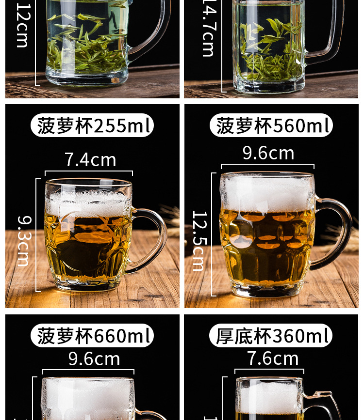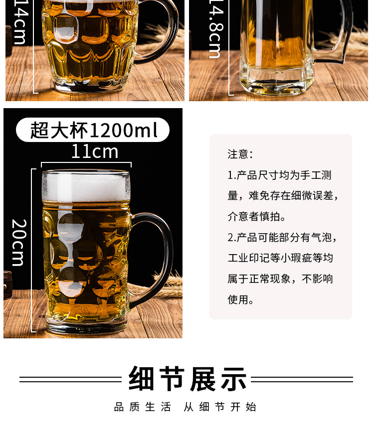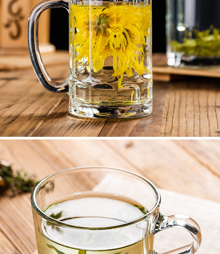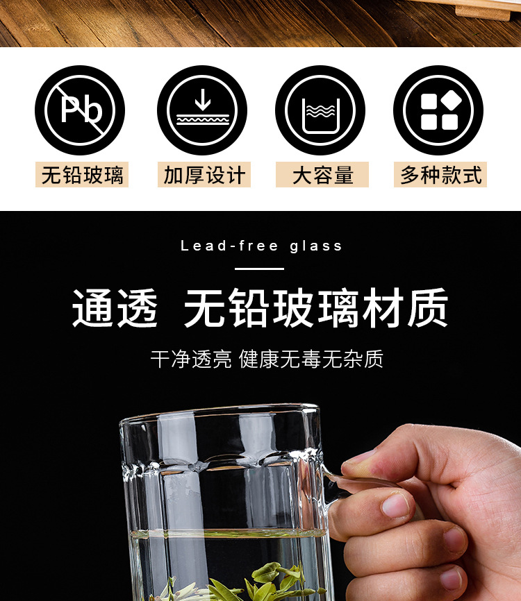 투명 유리 내열성 대형 두꺼운 찻집 핸들 바 맥주 컵 커버 바 선물 인쇄 로고