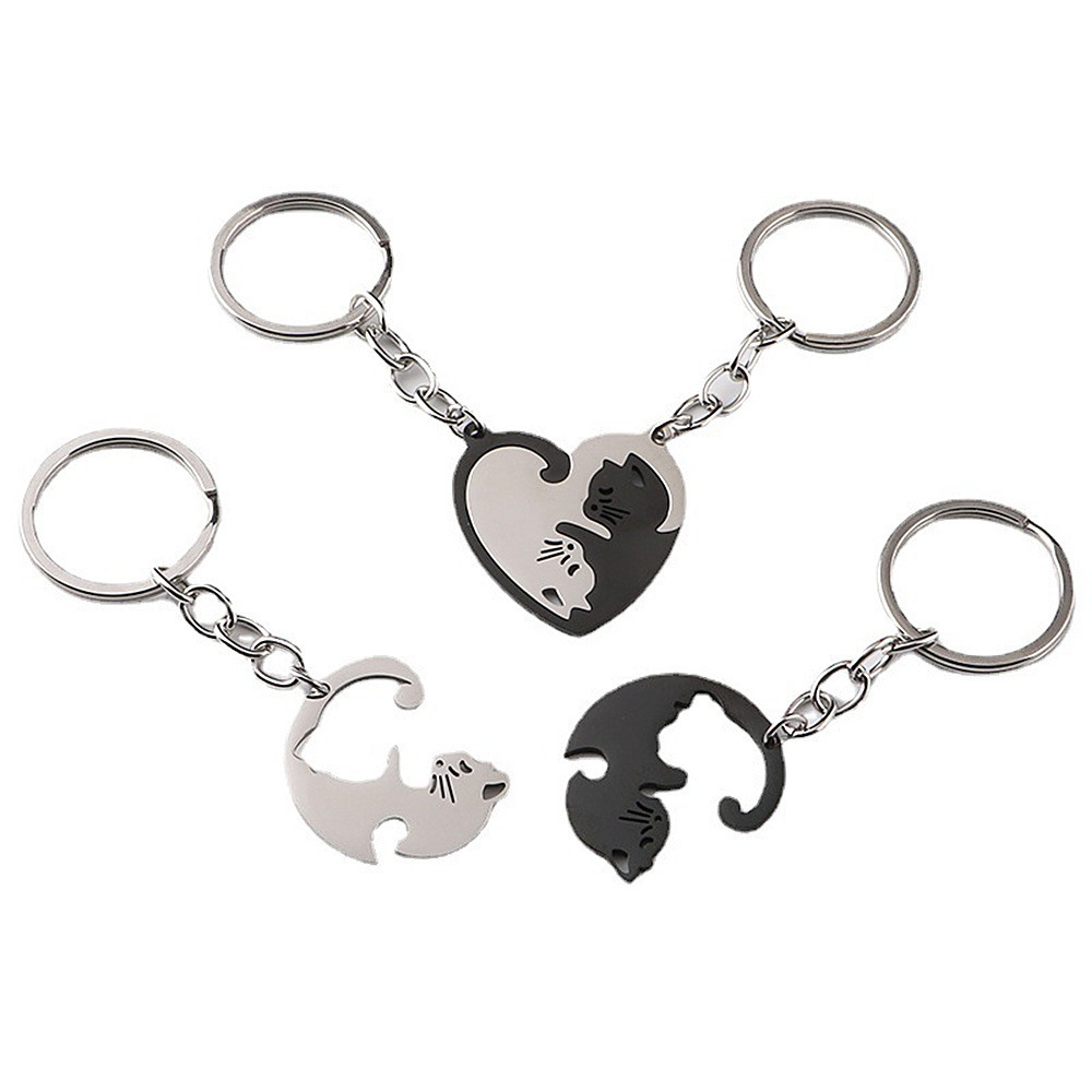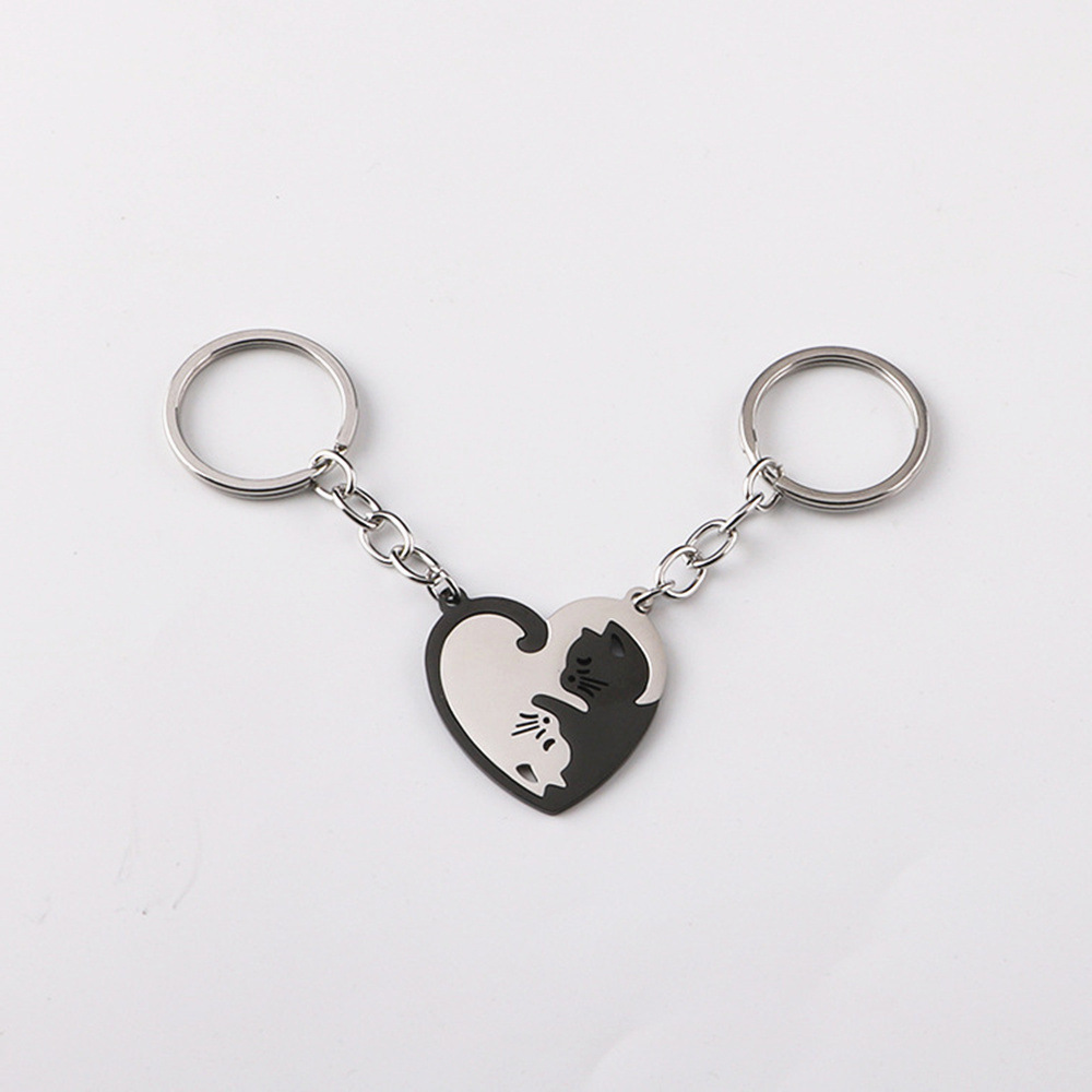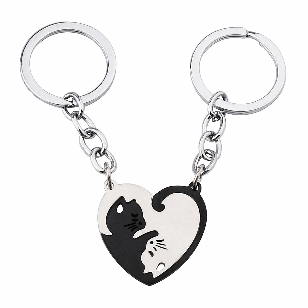 아마존 사랑 고양이 키 체인 펜던트 커플의 허리 매달려 스테인레스 스틸 안티 손실 키 체인 링 백 교수형 액세서리스토어 가기