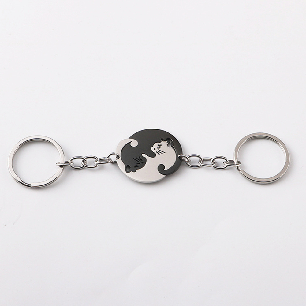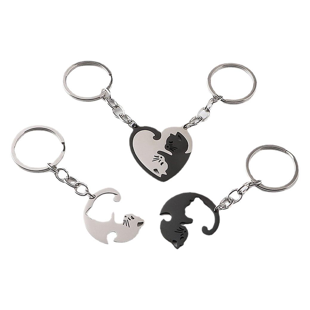아마존 사랑 고양이 키 체인 펜던트 커플의 허리 매달려 스테인레스 스틸 안티 손실 키 체인 링 백 교수형 액세서리