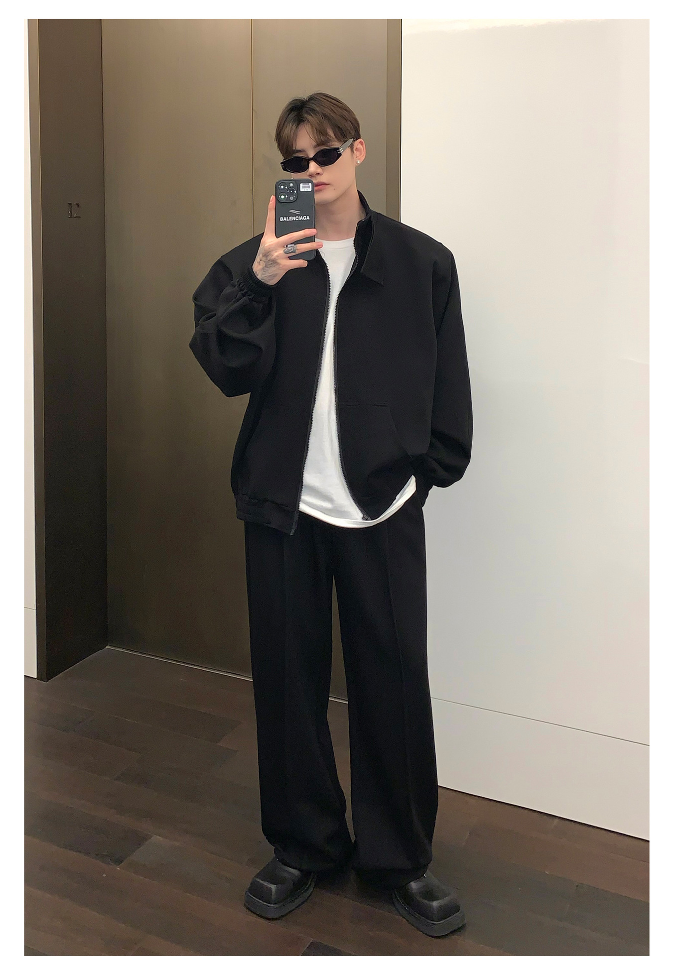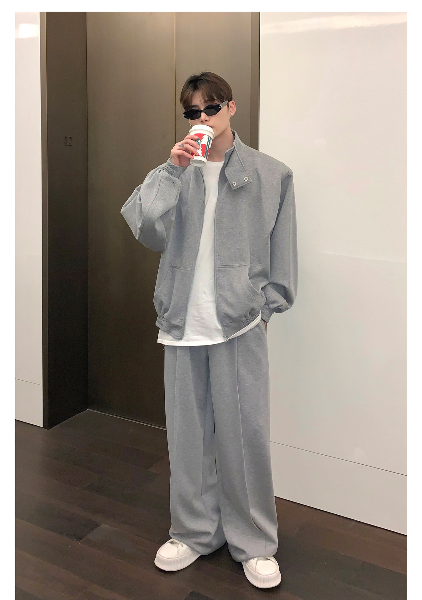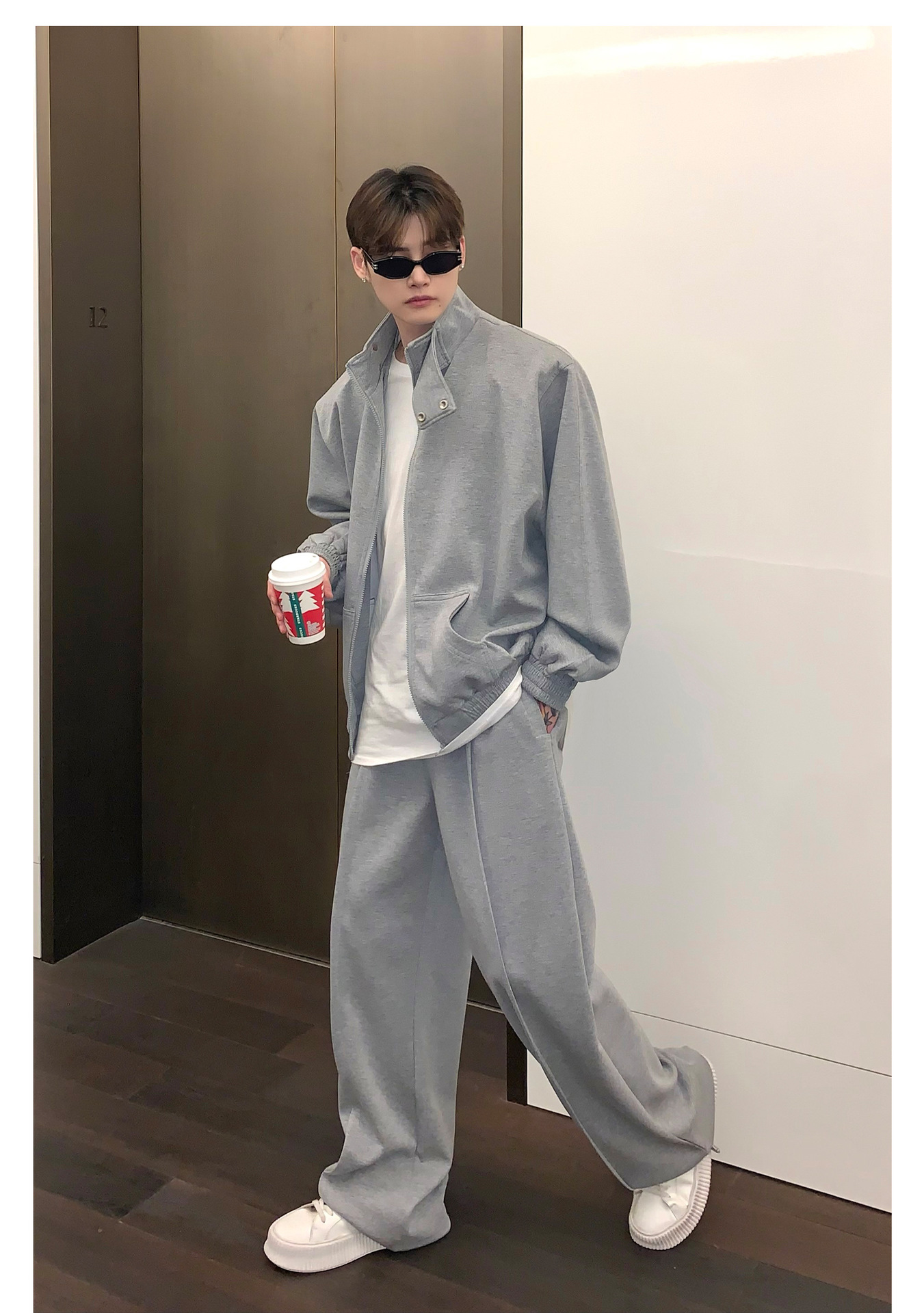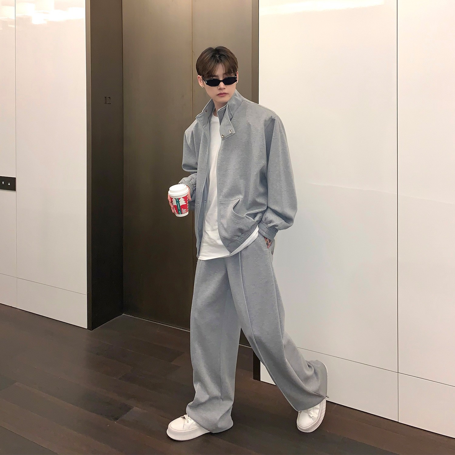 디자인 센스 2023 봄과 가을 새로운 스타일 수직 칼라 카디건 재킷 남자 스포츠 캐주얼 올 매치 세트 느슨한 바지 두 조각스토어 가기