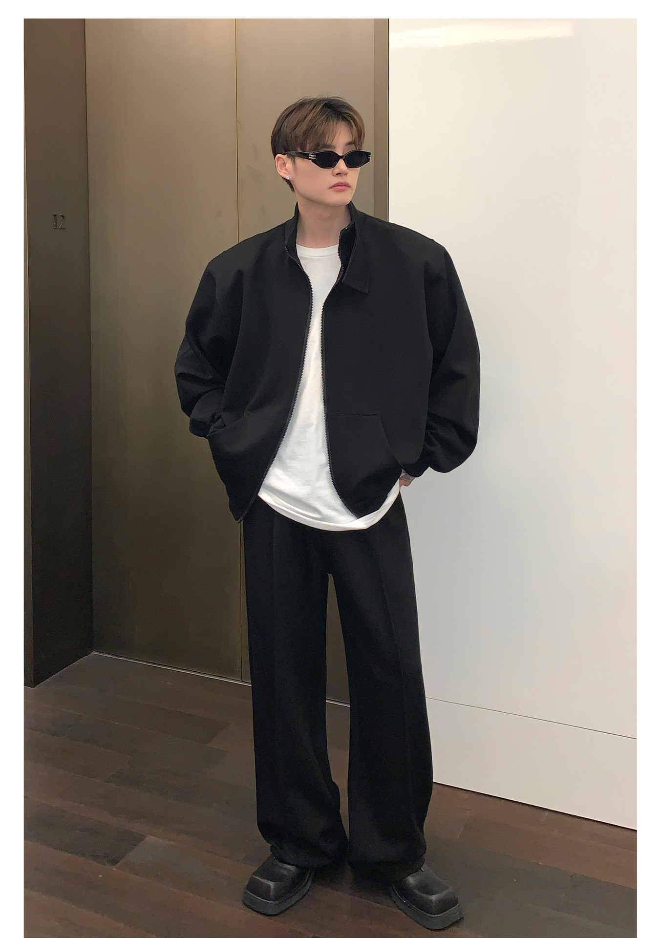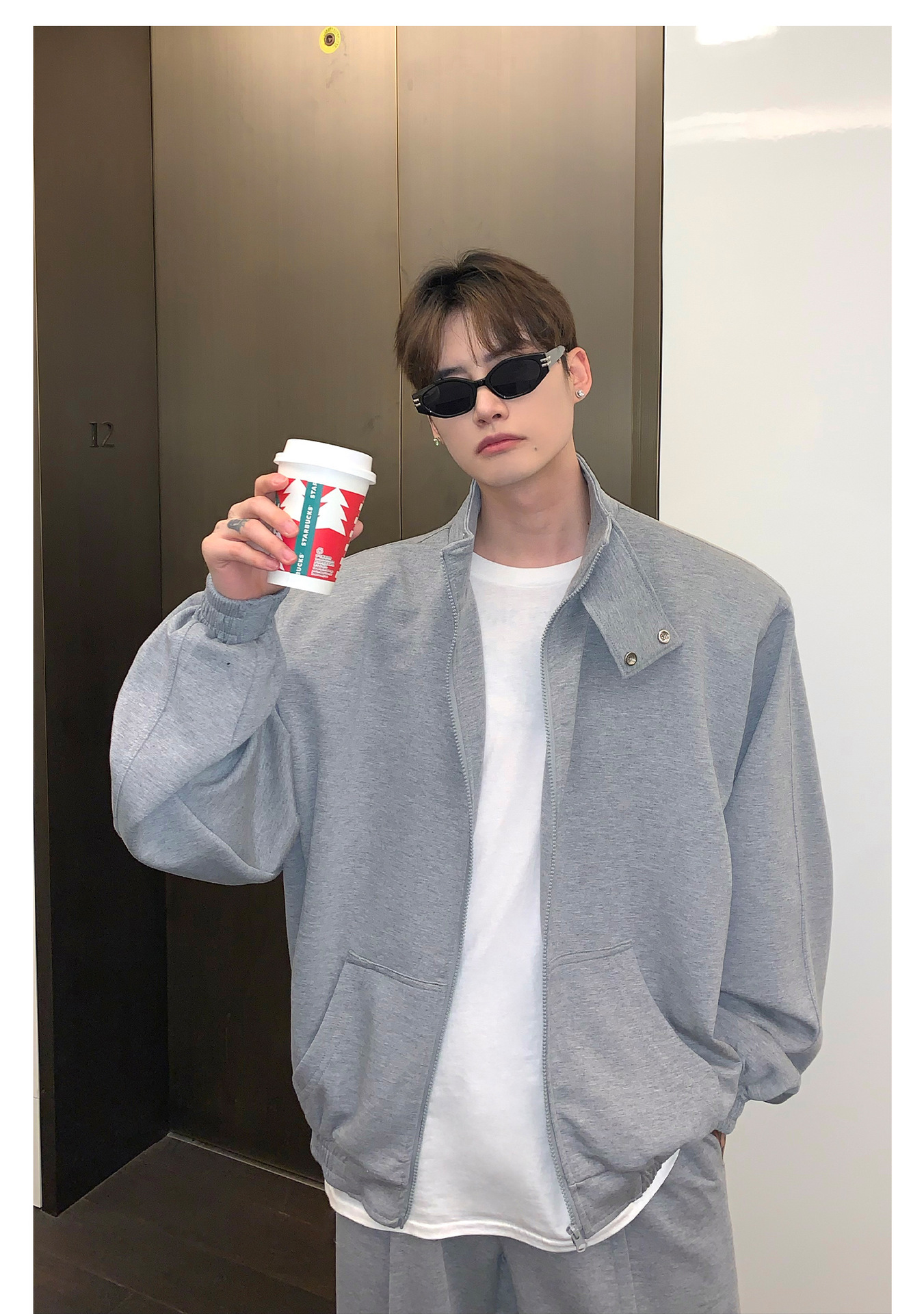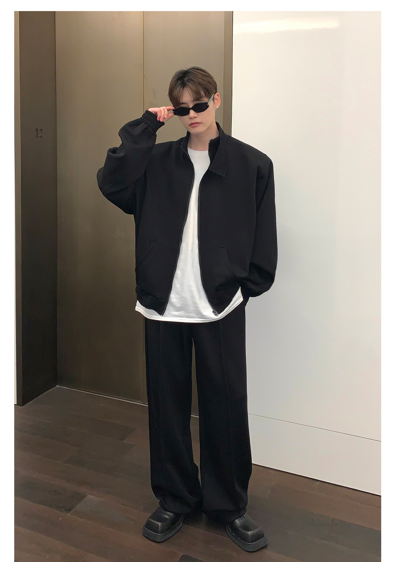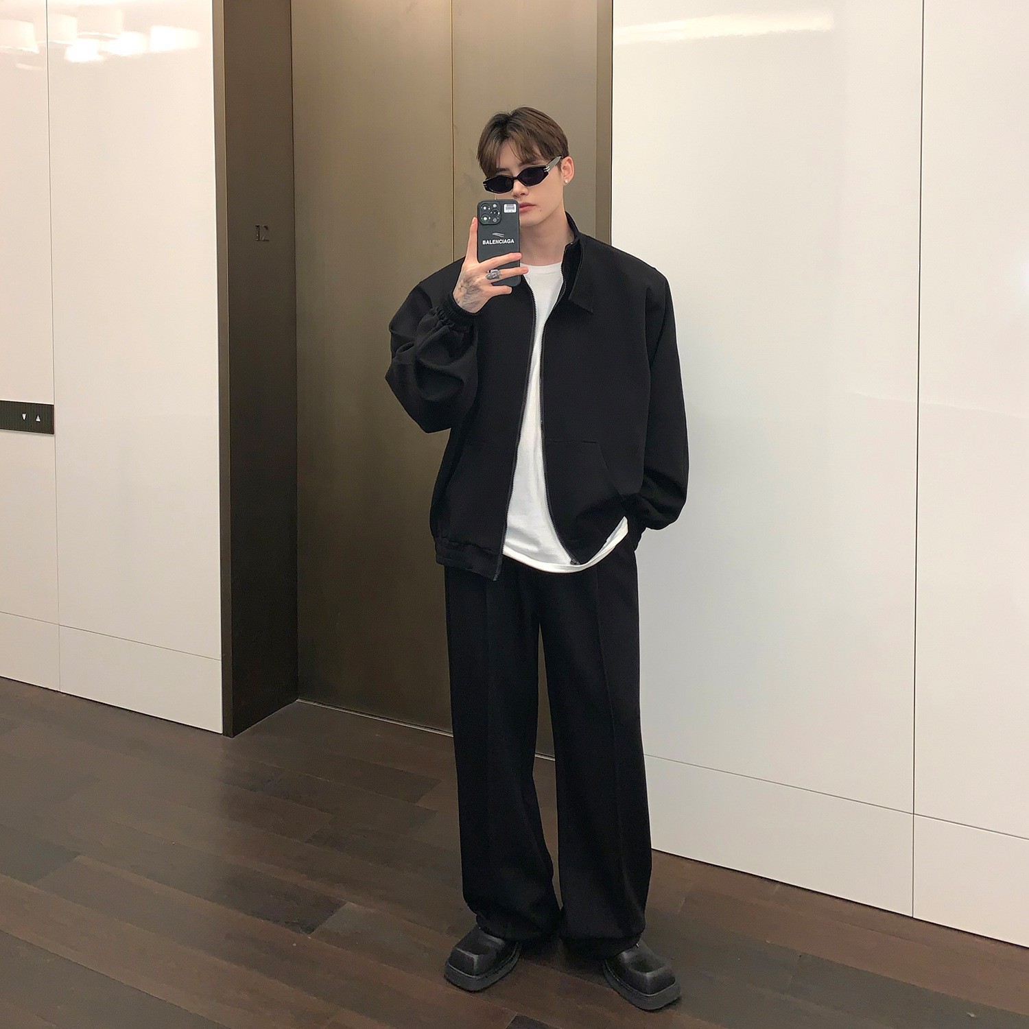 디자인 센스 2023 봄과 가을 새로운 스타일 수직 칼라 카디건 재킷 남자 스포츠 캐주얼 올 매치 세트 느슨한 바지 두 조각스토어 가기