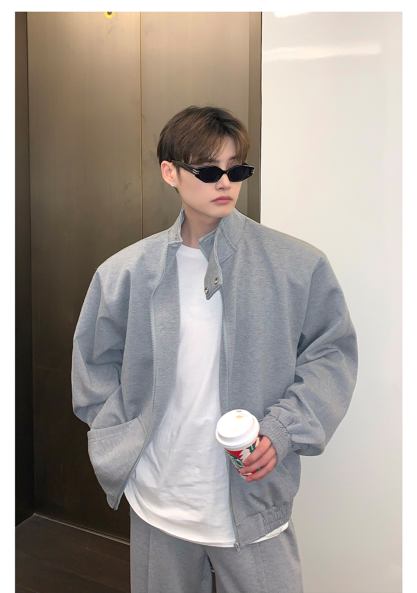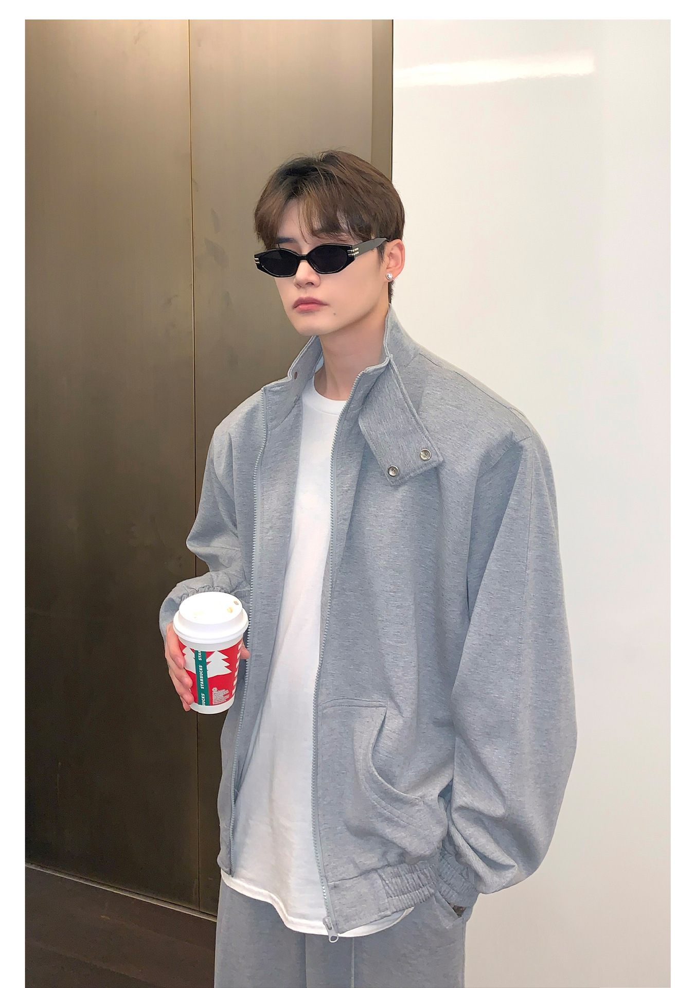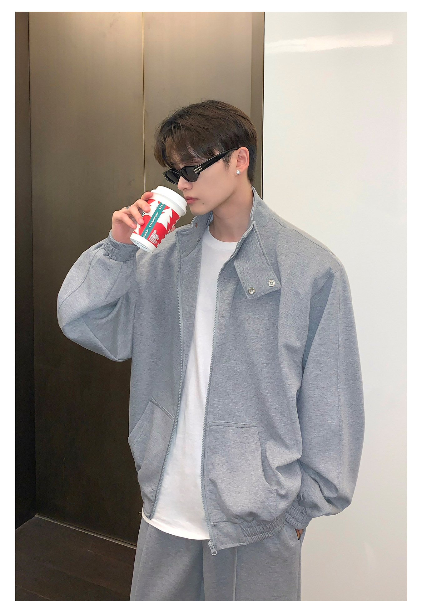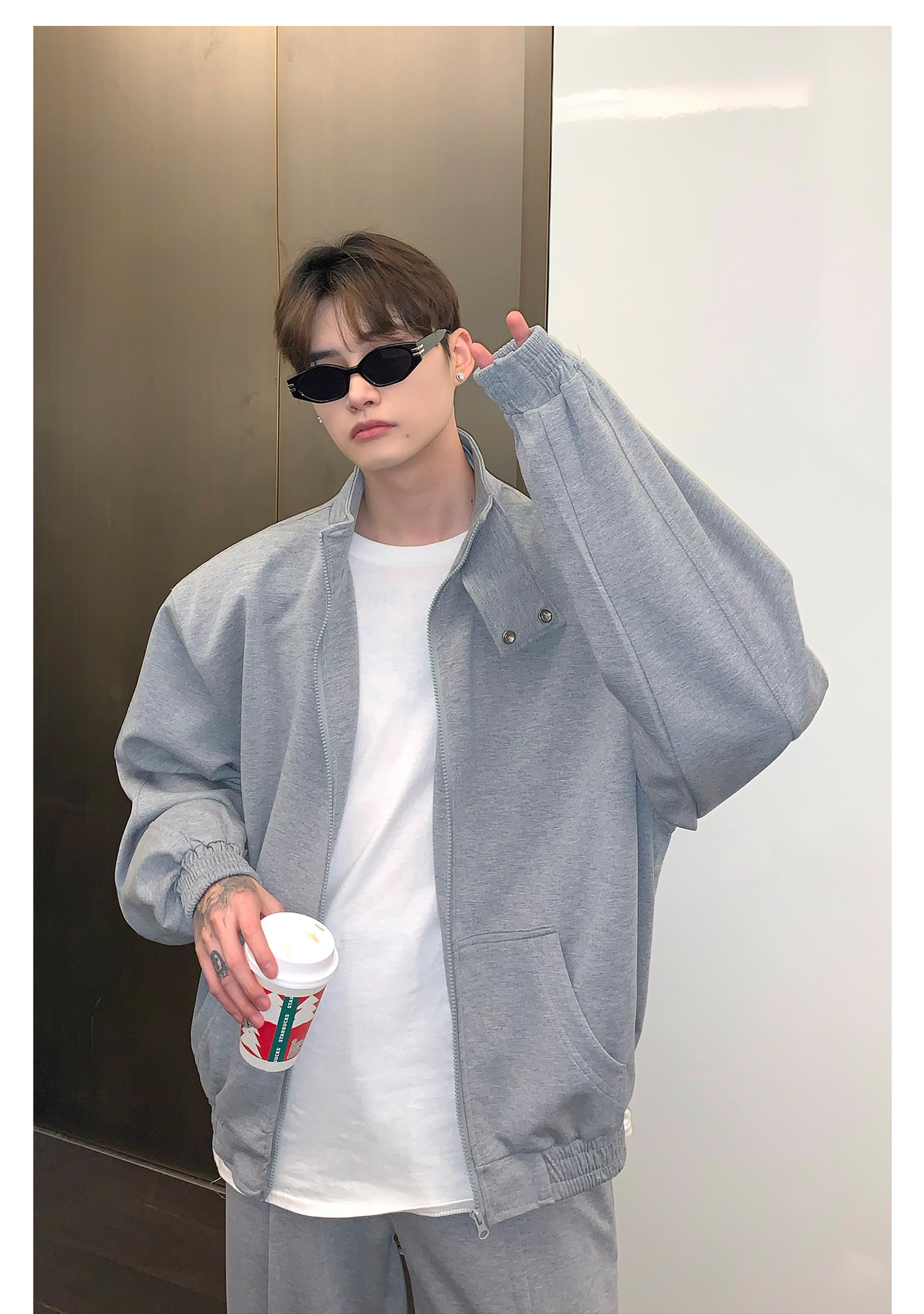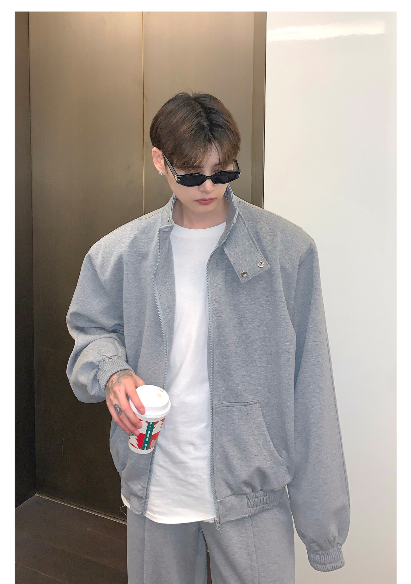 디자인 센스 2023 봄과 가을 새로운 스타일 수직 칼라 카디건 재킷 남자 스포츠 캐주얼 올 매치 세트 느슨한 바지 두 조각스토어 가기