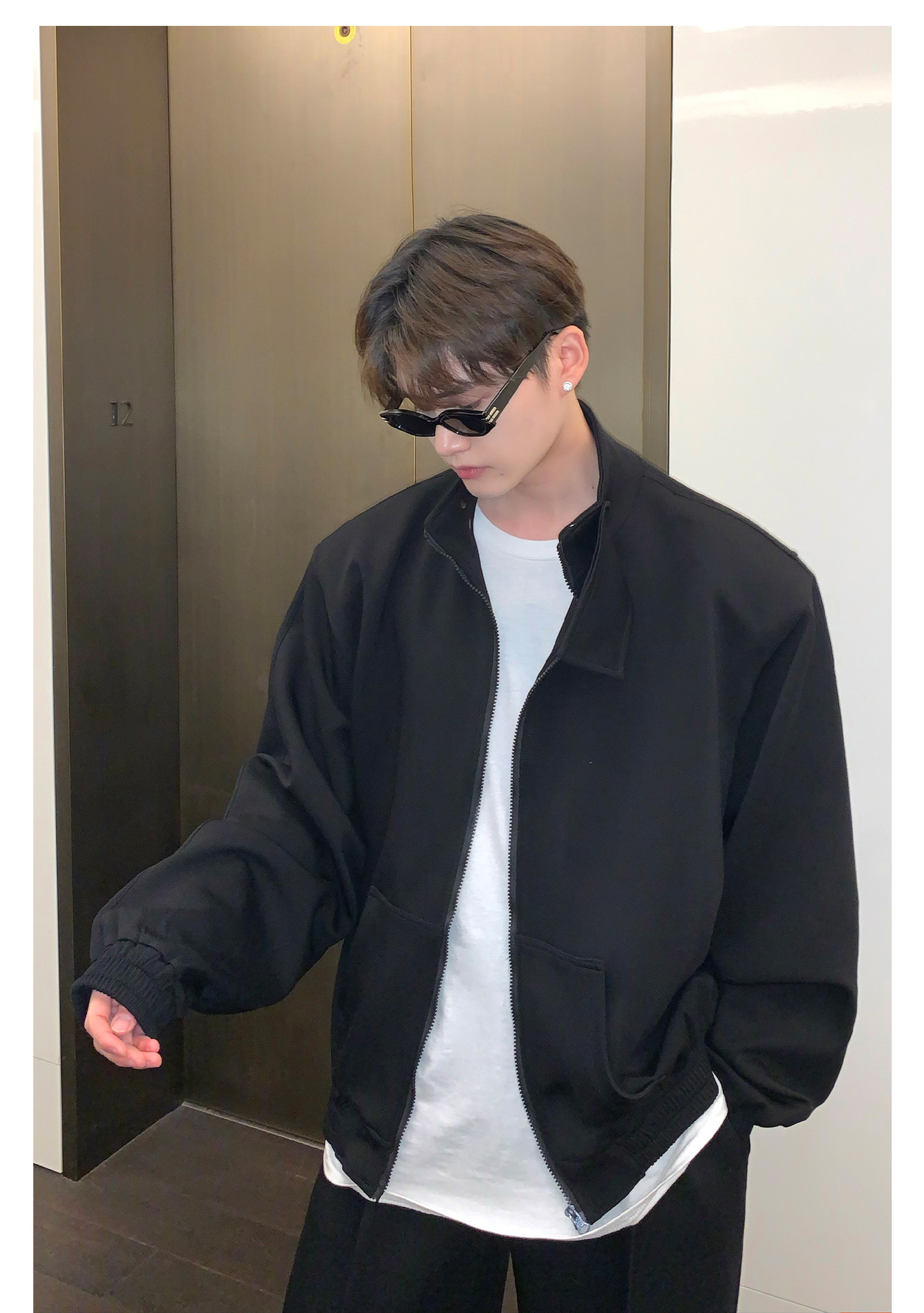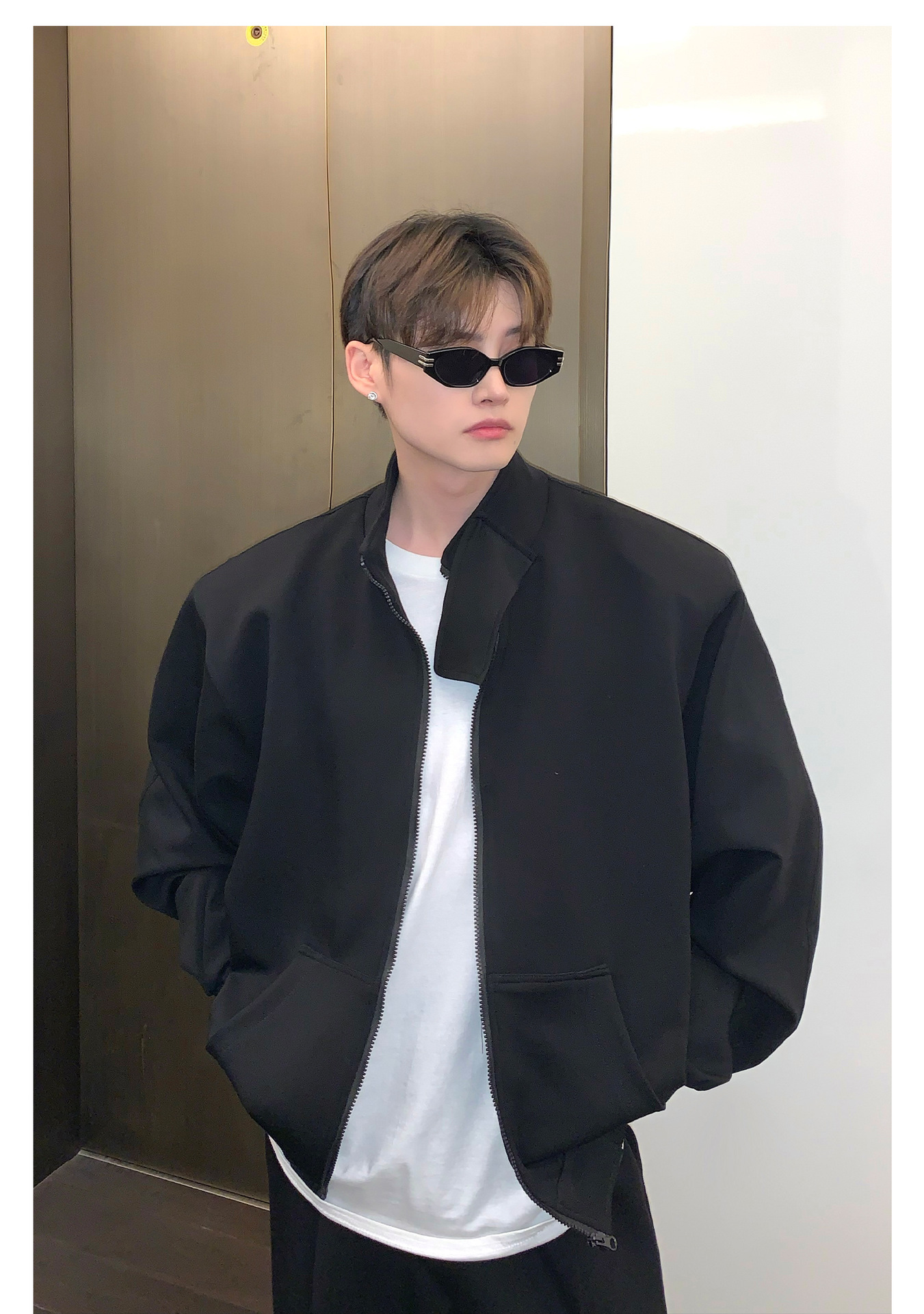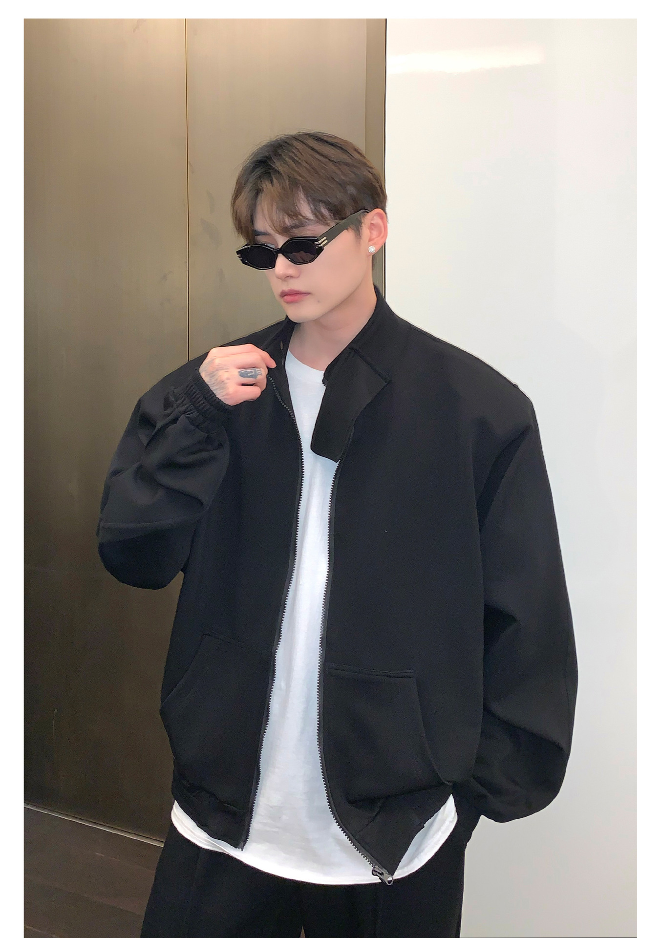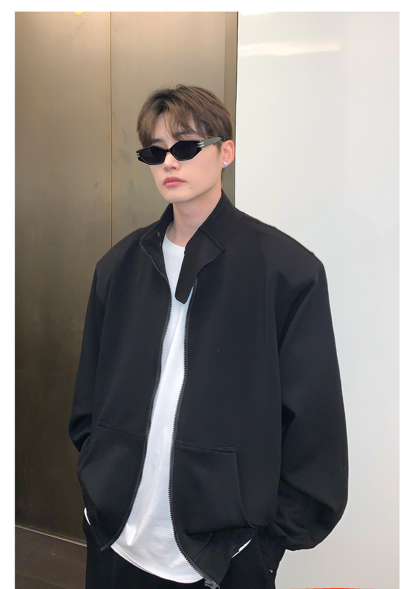 디자인 센스 2023 봄과 가을 새로운 스타일 수직 칼라 카디건 재킷 남자 스포츠 캐주얼 올 매치 세트 느슨한 바지 두 조각스토어 가기