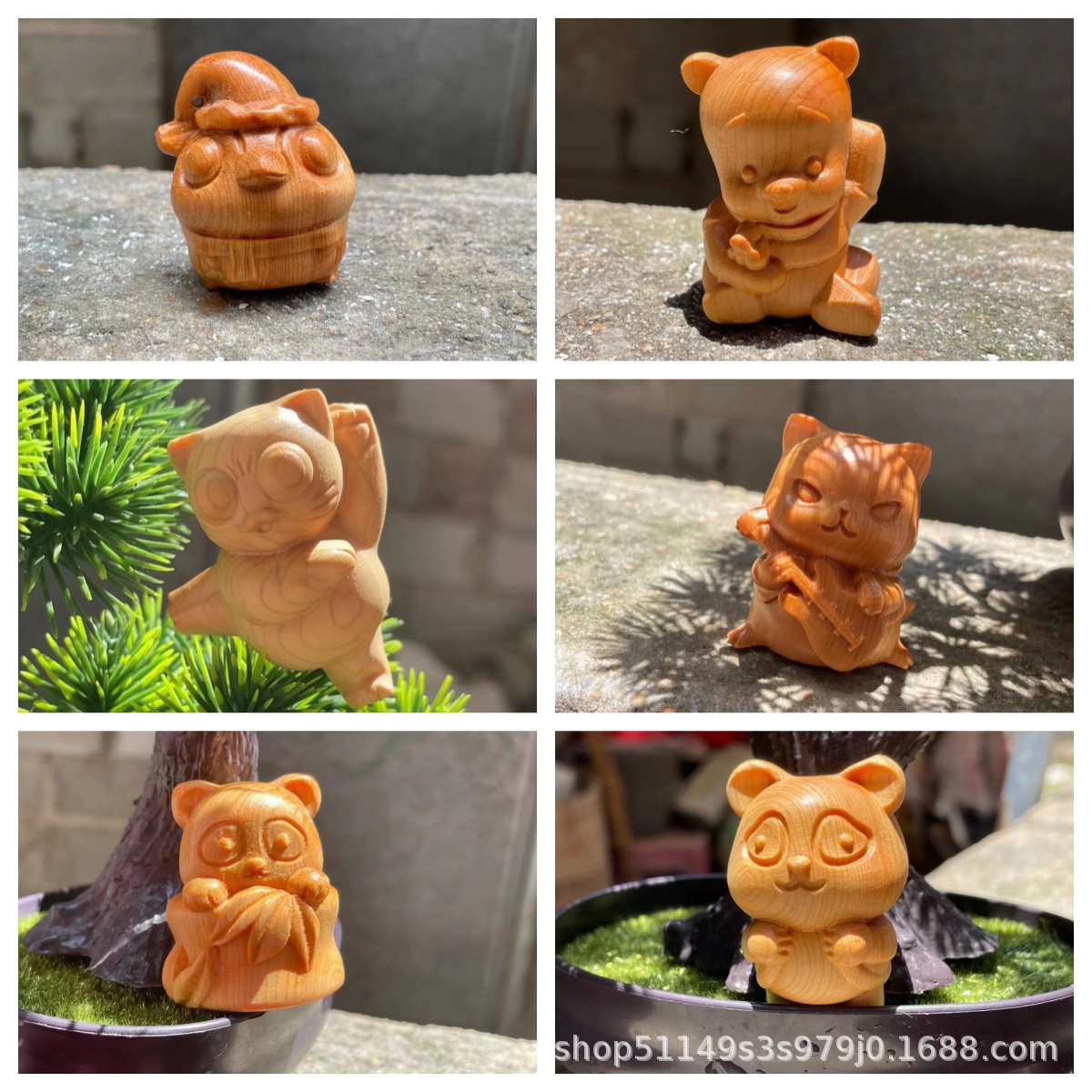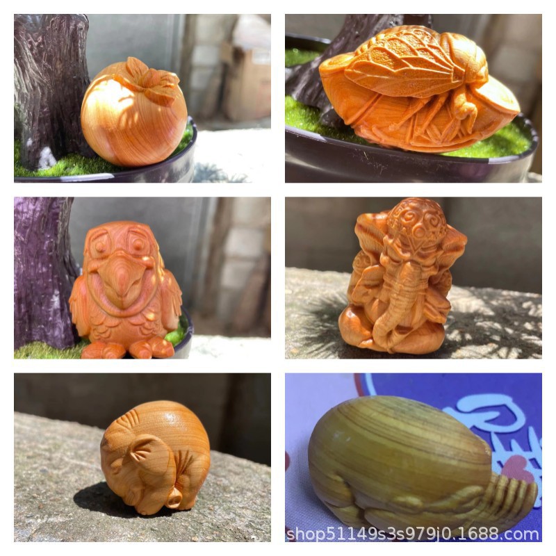 Thuja 나무 조각 귀여운 귀여운 손잡이 장식품 창조적 인 문화 놀이 선물 나무 공예스토어 가기