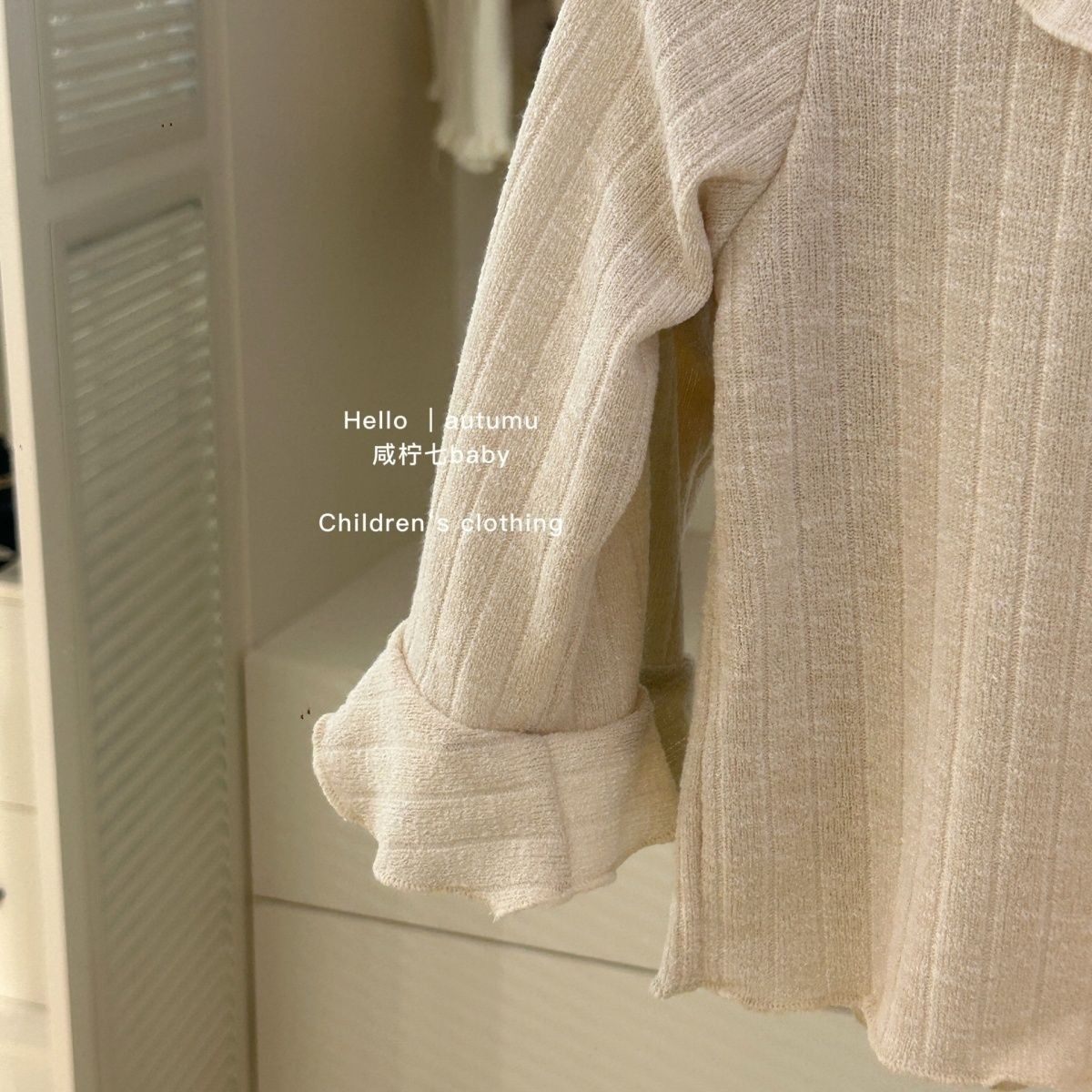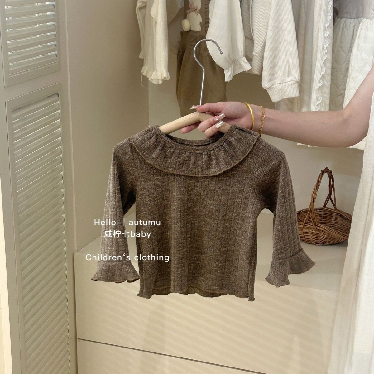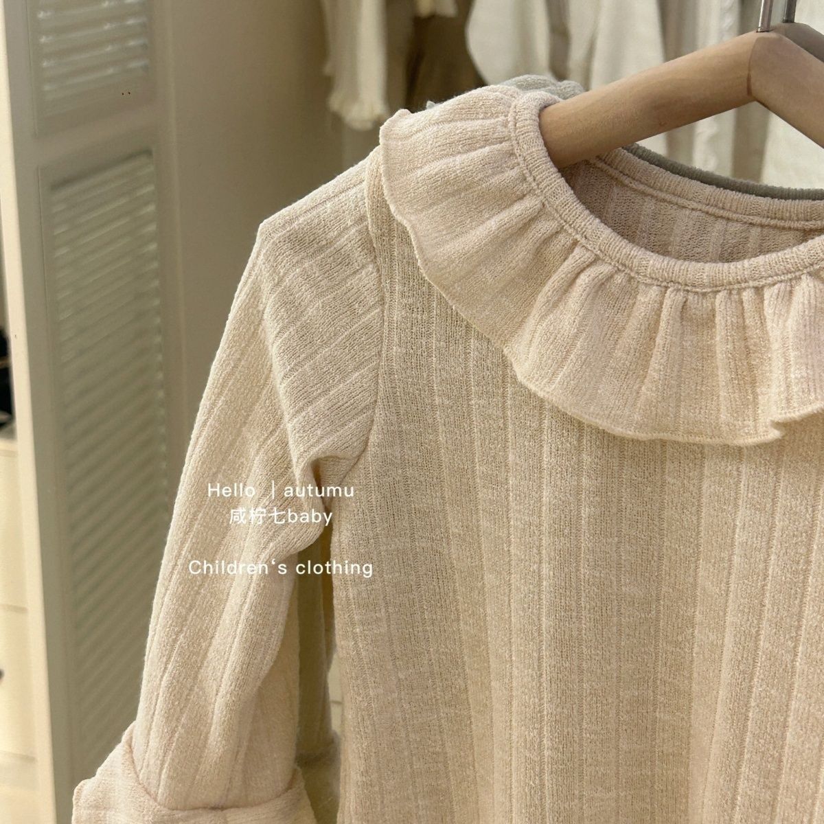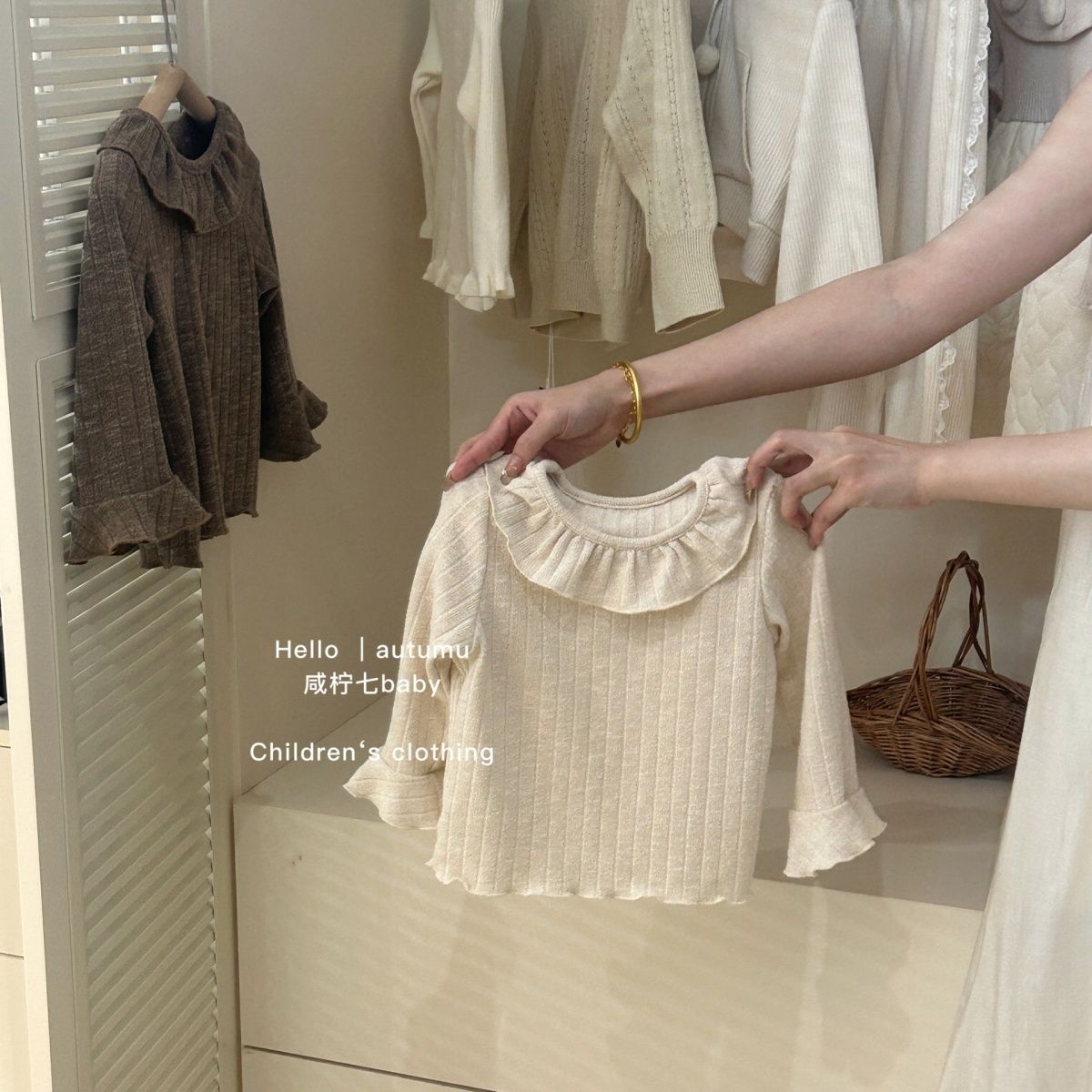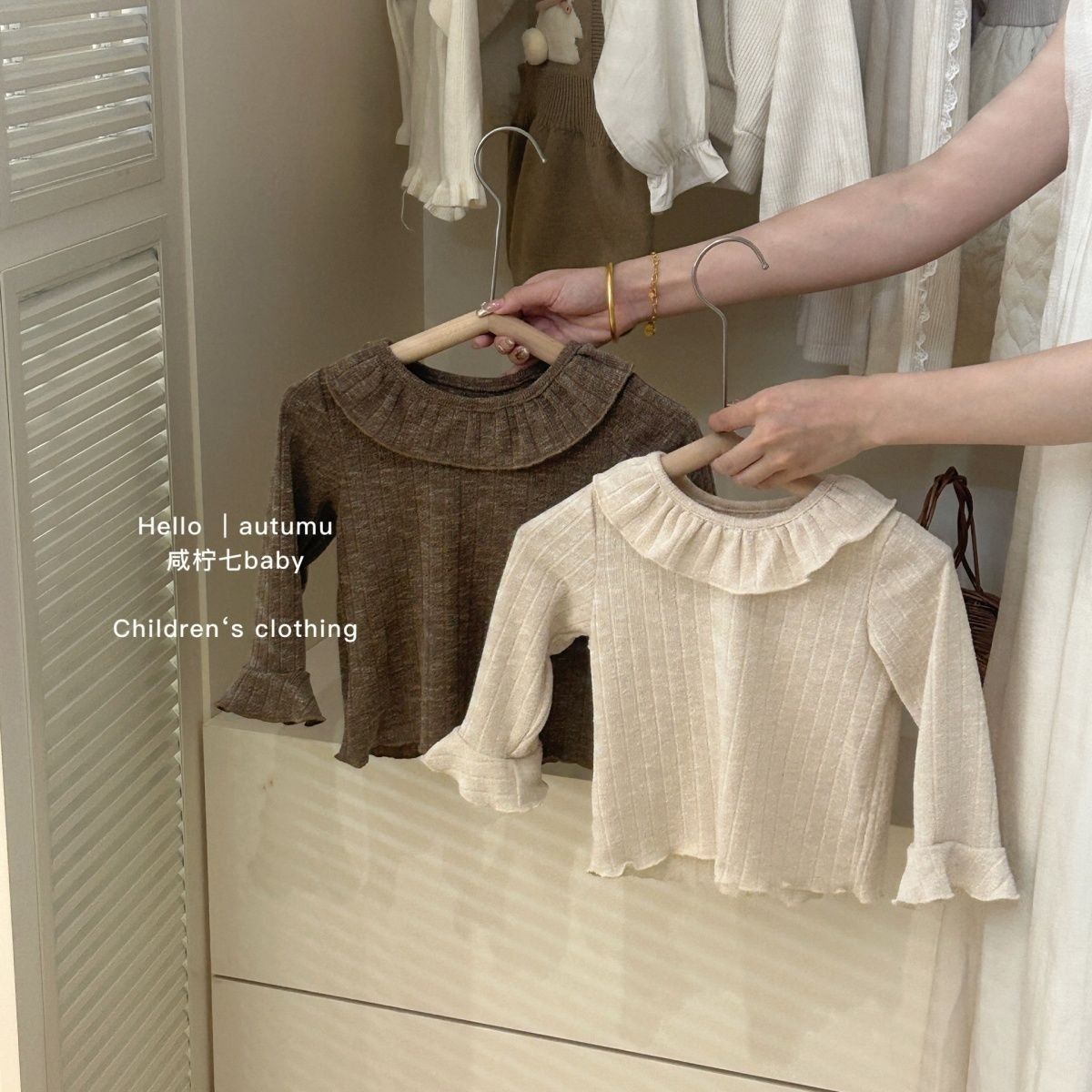 봄과 가을 소녀 티셔츠 아기 세련 된 어린이 성격 유행 브랜드 한국 스타일 모리 인형 칼라 핏 스트라이프베이스 셔츠