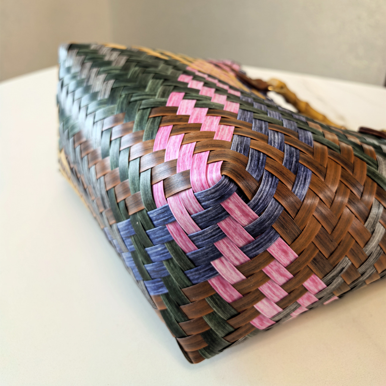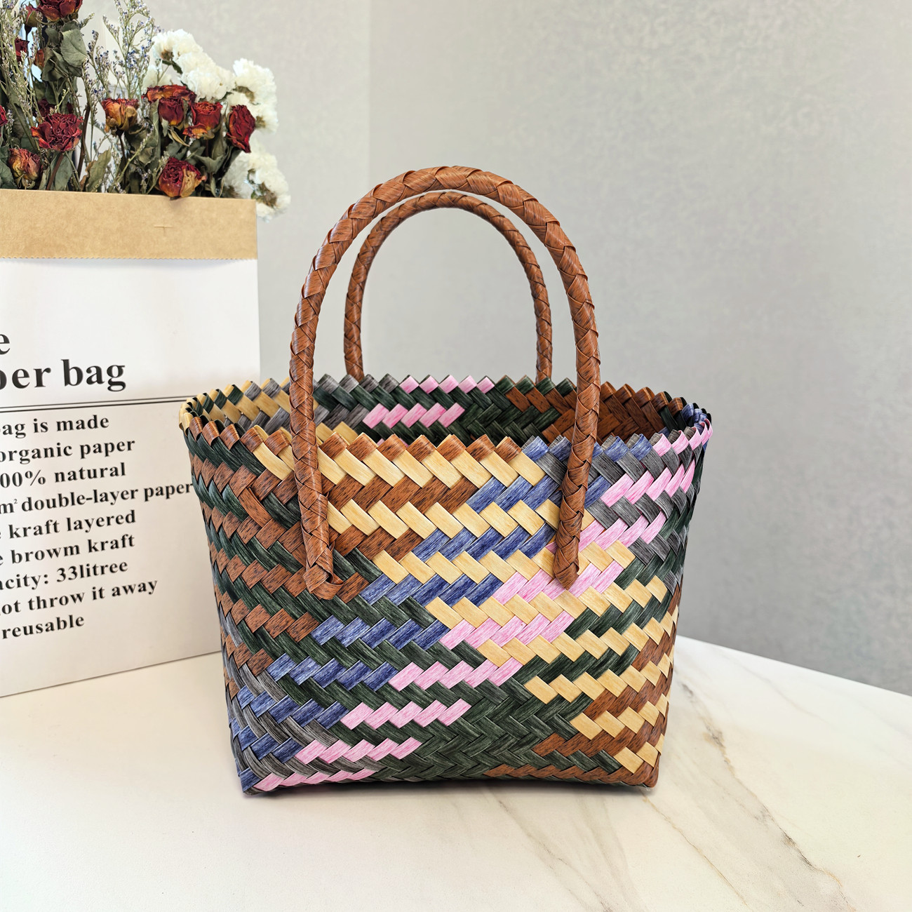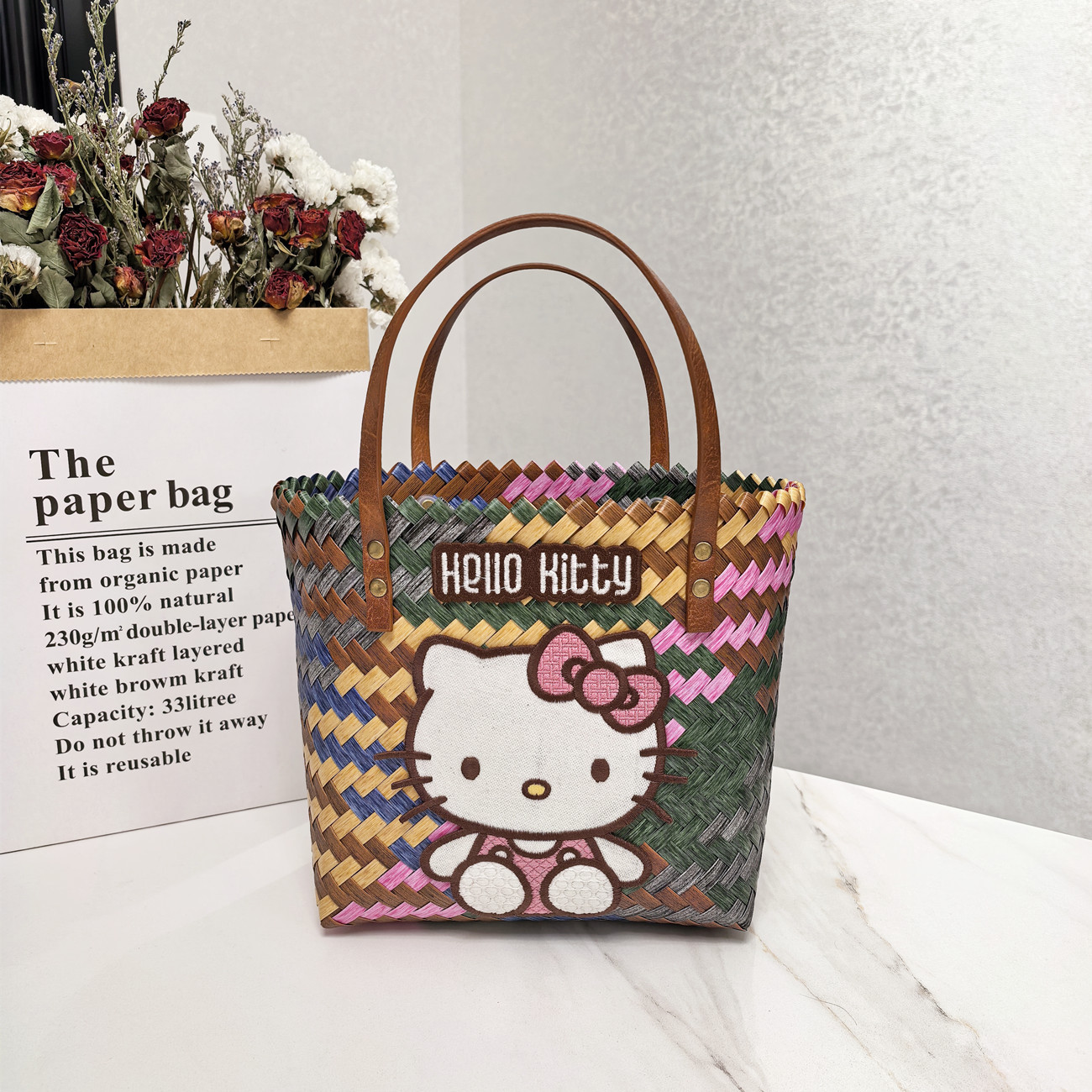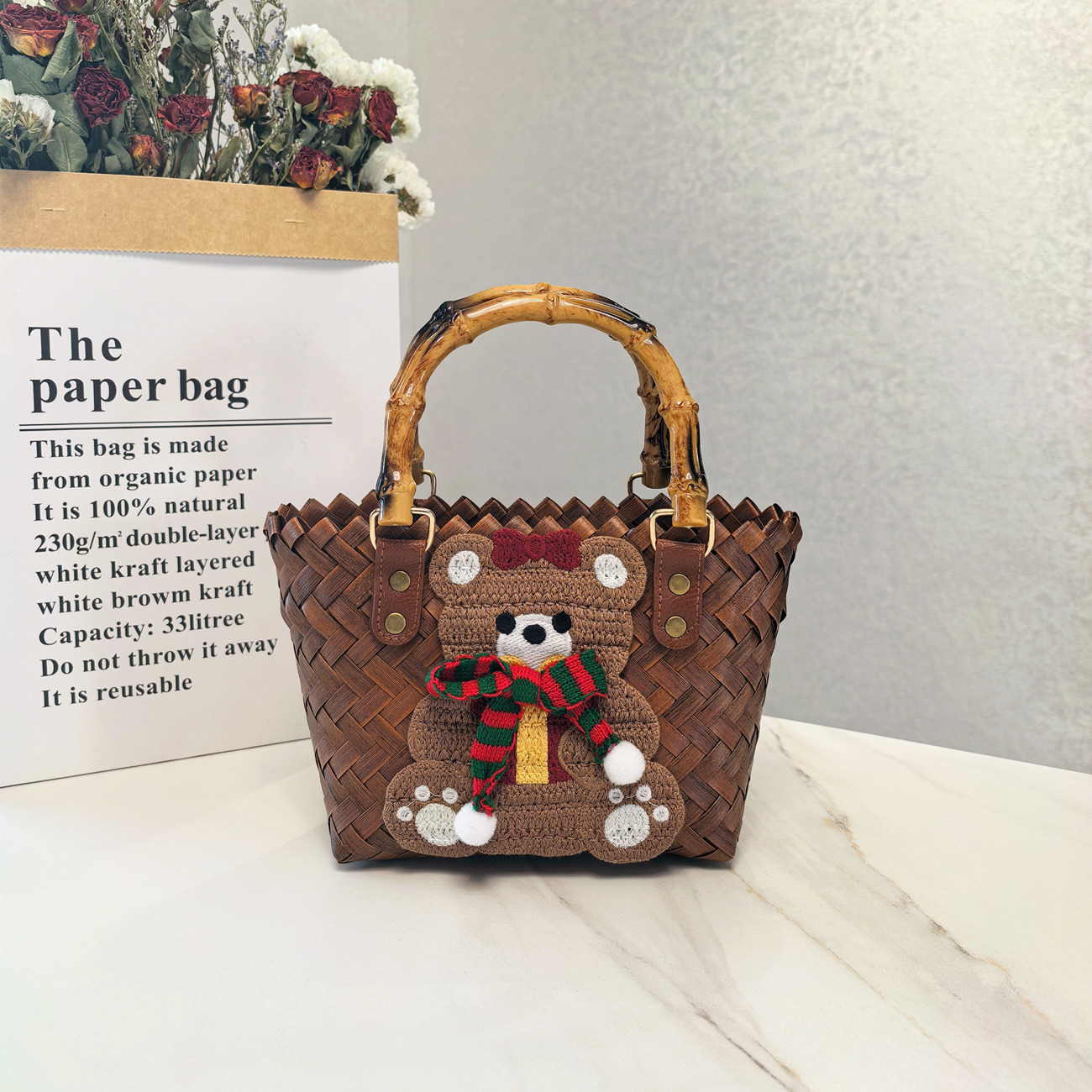 빈티지 줄무늬 Weenie 개 짠 가방 핸드백 나일론 로프 펜던트 토트 백 손을 들고 여성 가방 비치 백