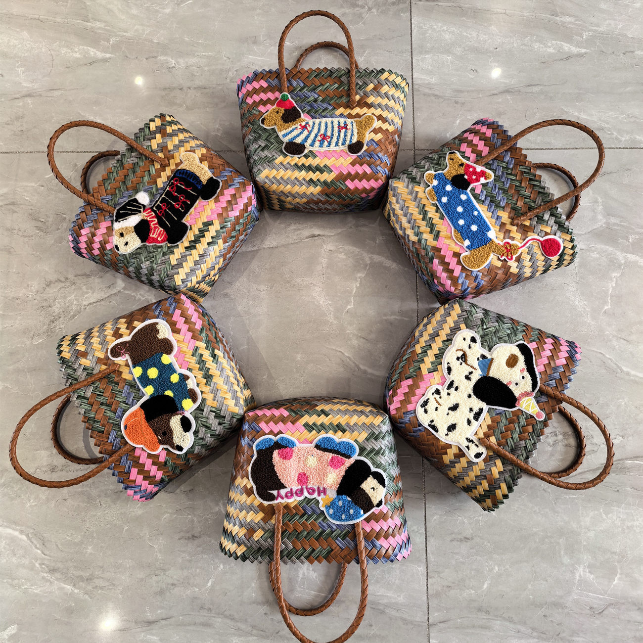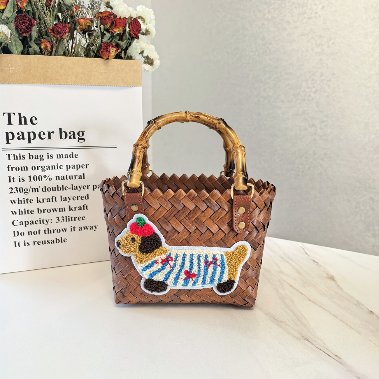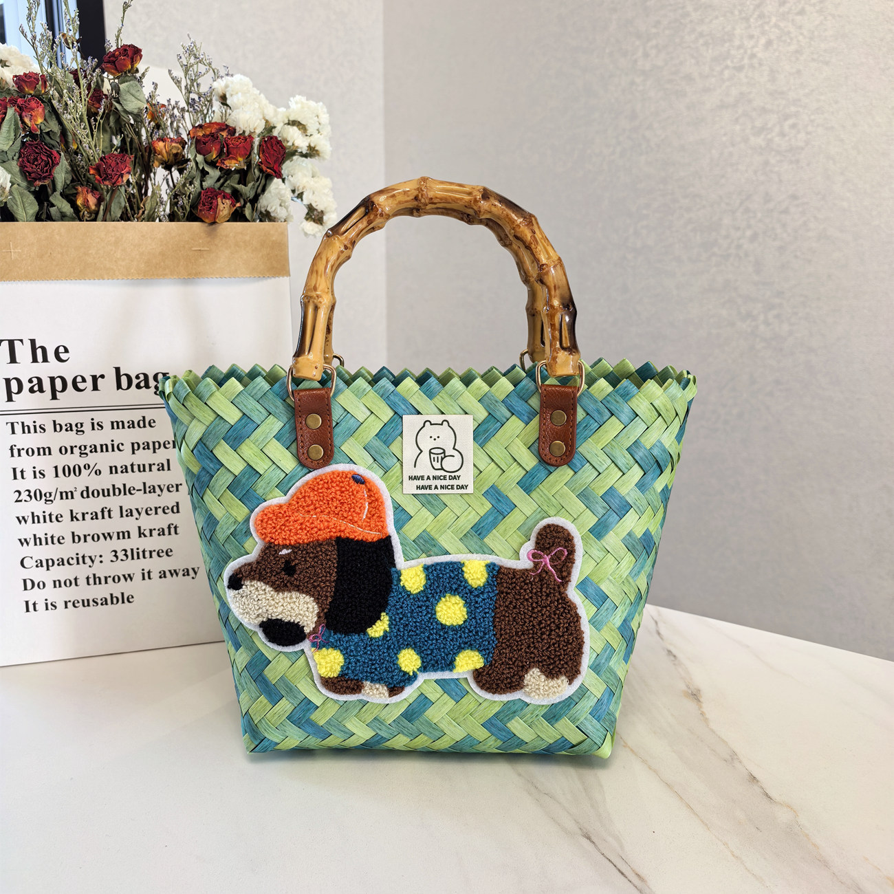 빈티지 줄무늬 Weenie 개 짠 가방 핸드백 나일론 로프 펜던트 토트 백 손을 들고 여성 가방 비치 백스토어 가기