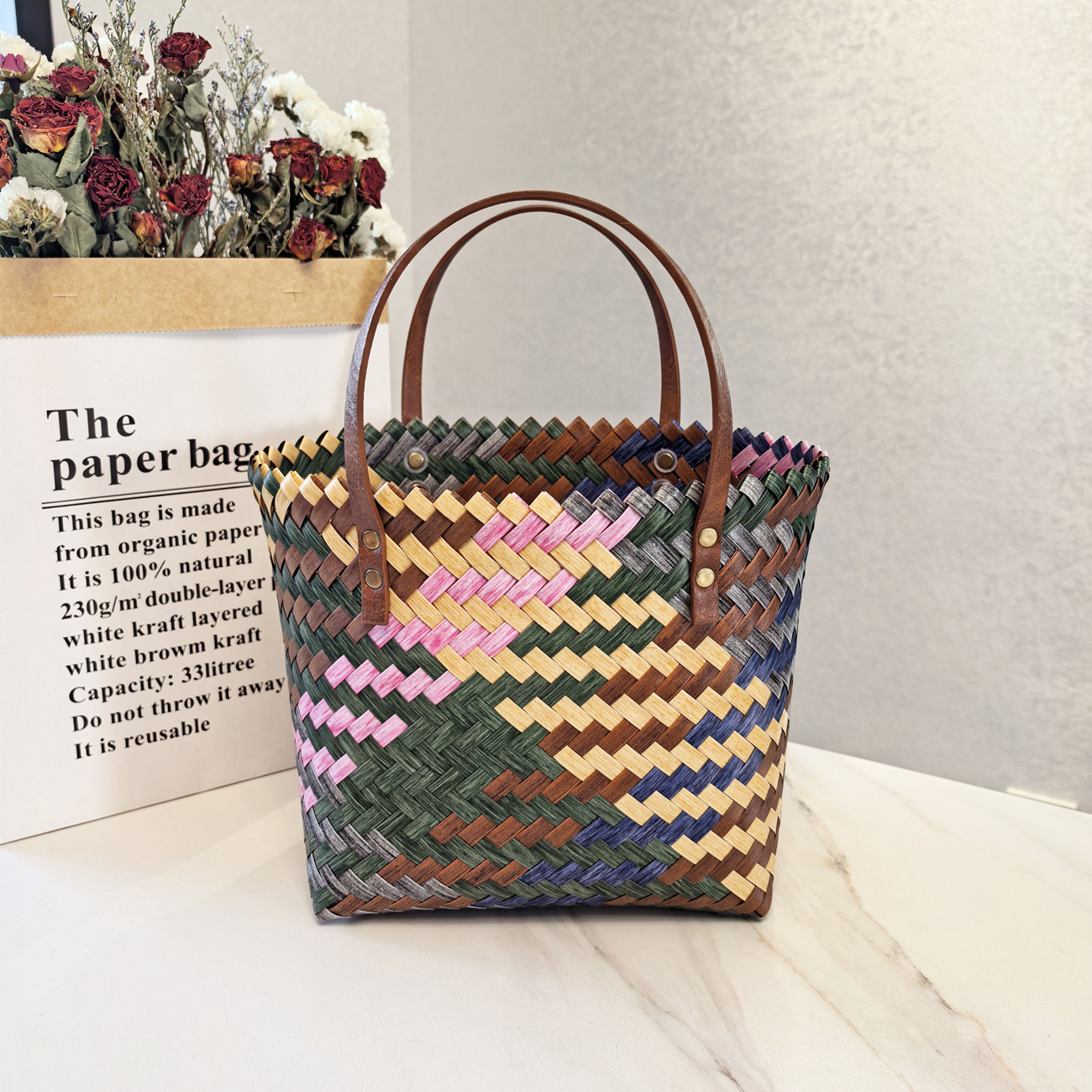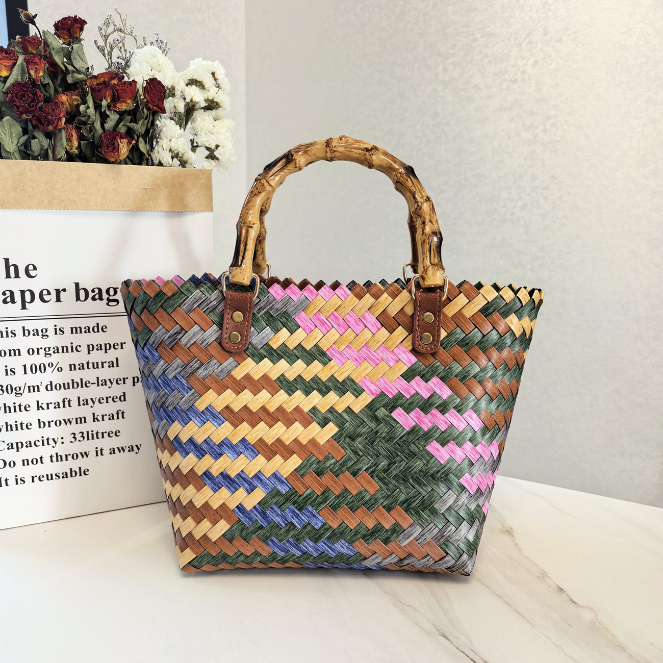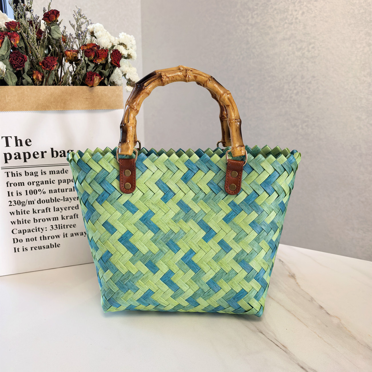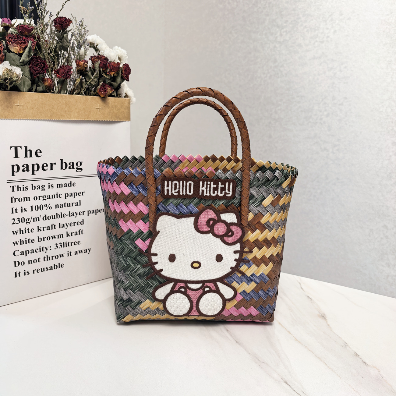 빈티지 줄무늬 Weenie 개 짠 가방 핸드백 나일론 로프 펜던트 토트 백 손을 들고 여성 가방 비치 백스토어 가기