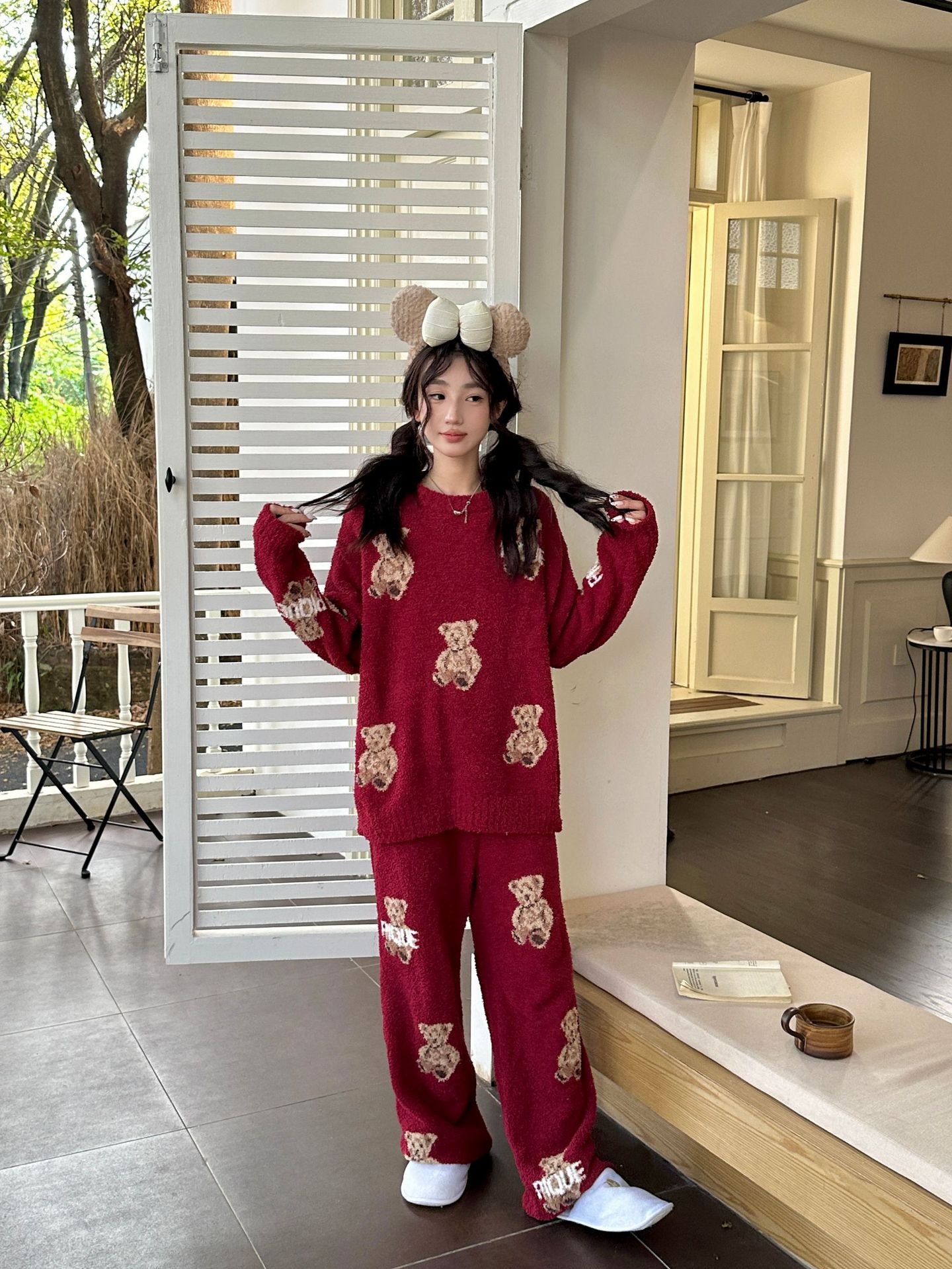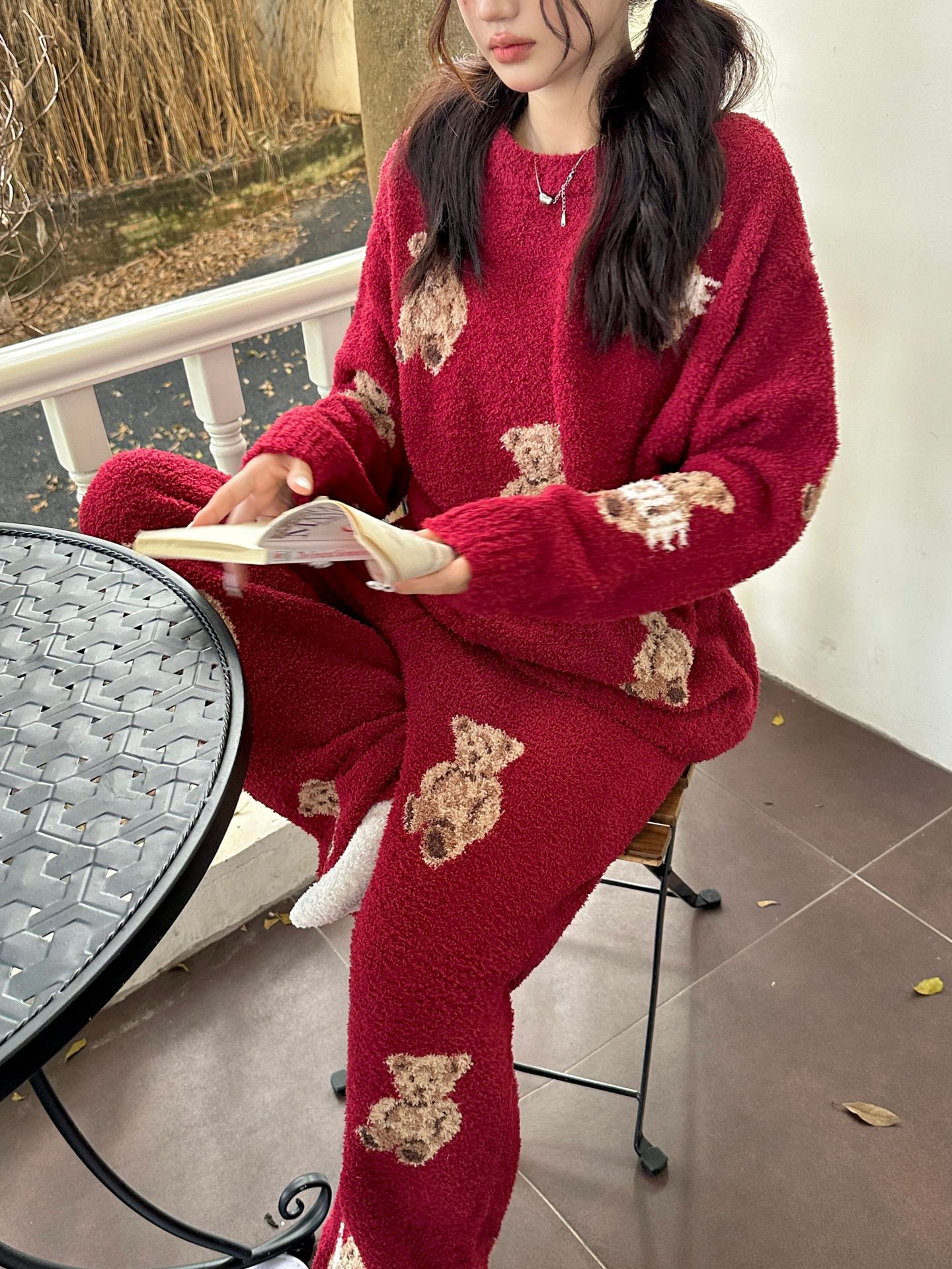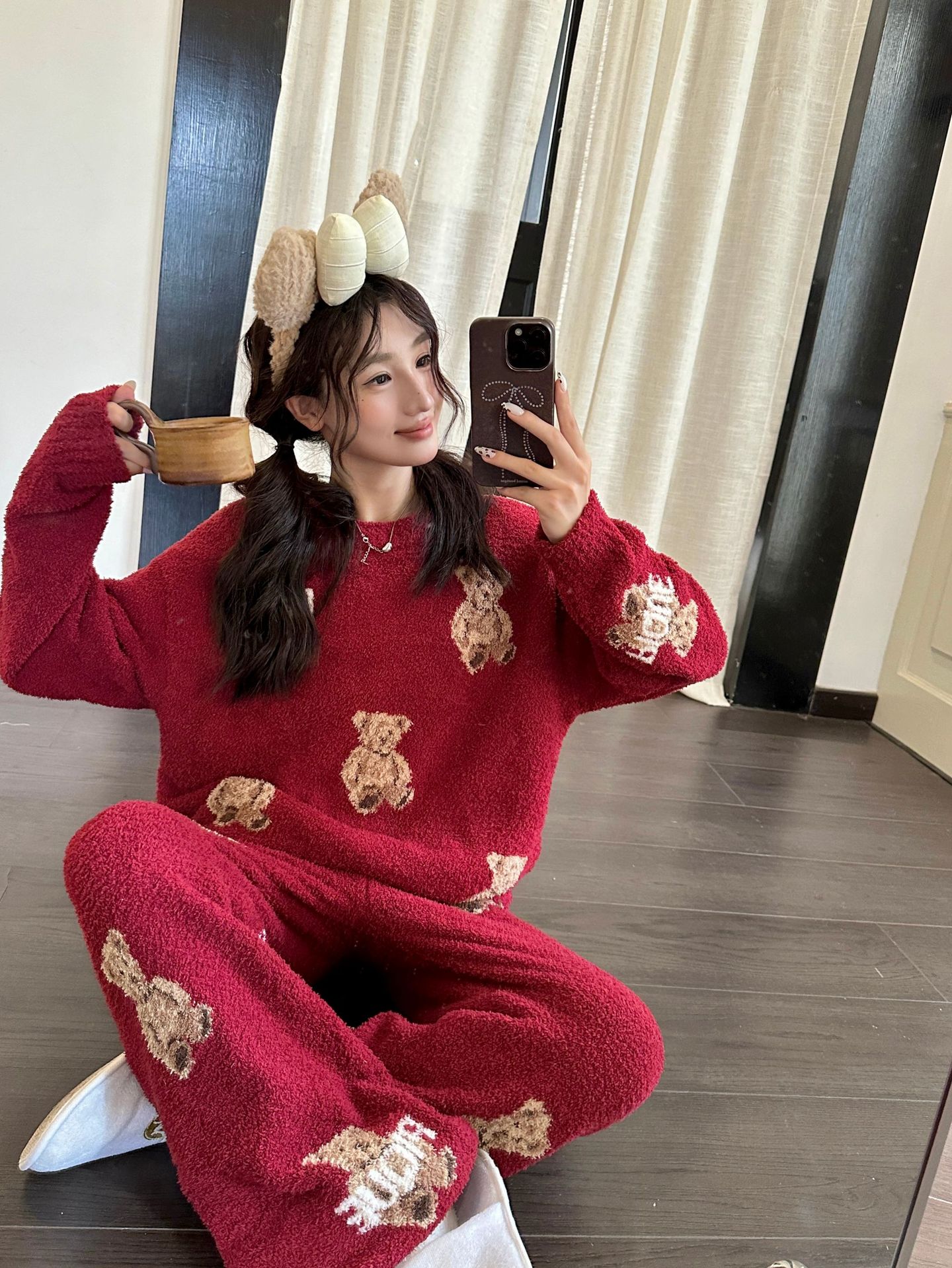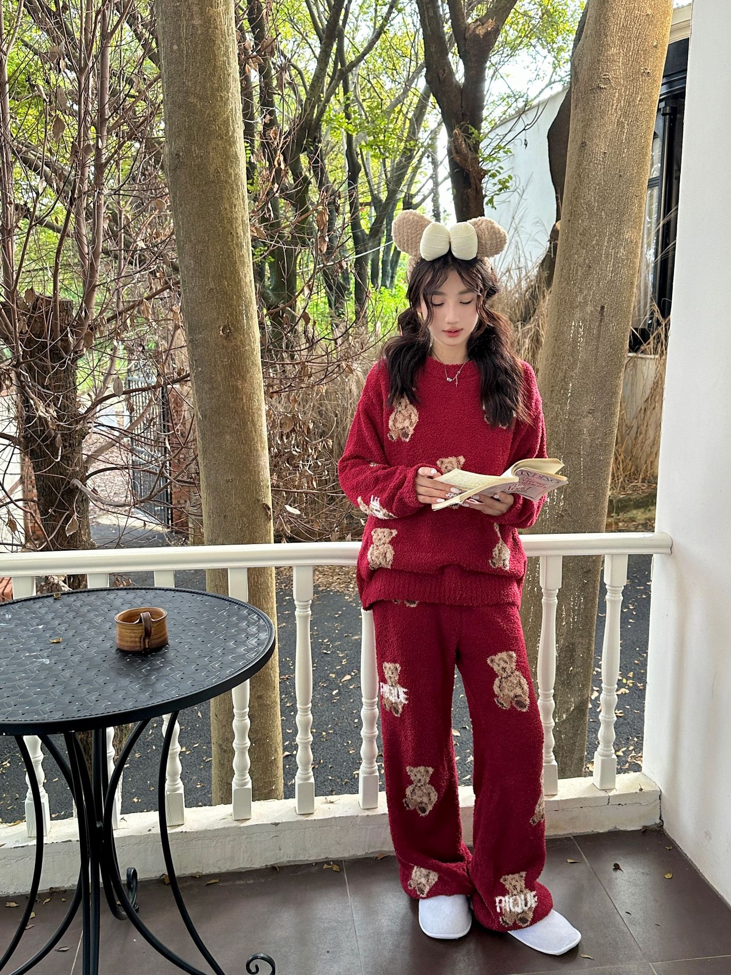 Gp 가을과 겨울 24 귀여운 커버 자카드 곰 크리스마스 붉은 부드러운 숙녀 집 옷 잠옷 세트스토어 가기