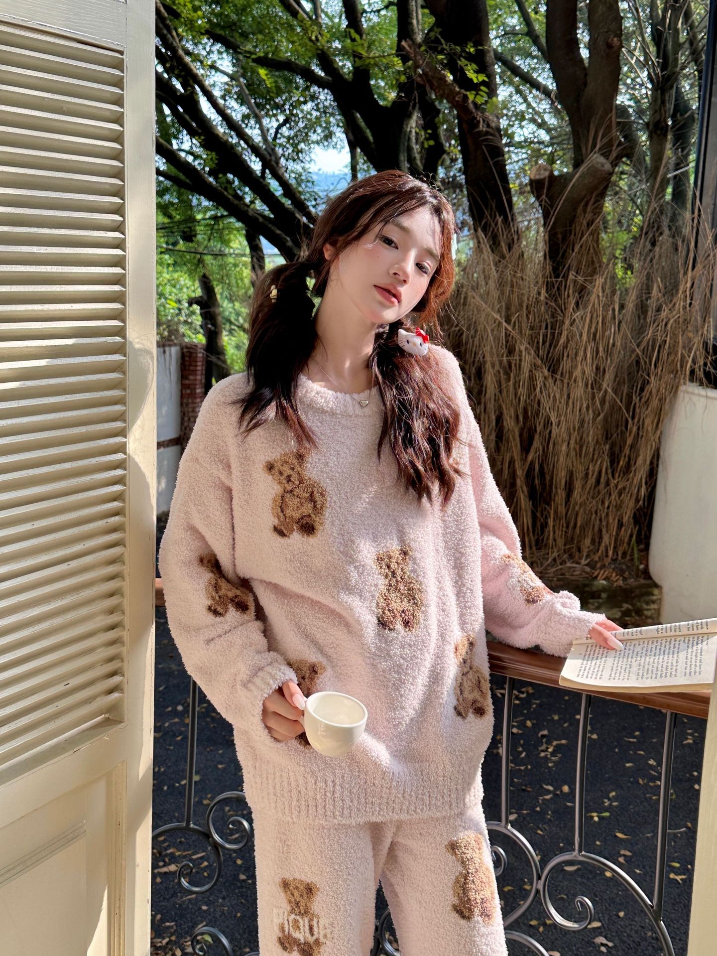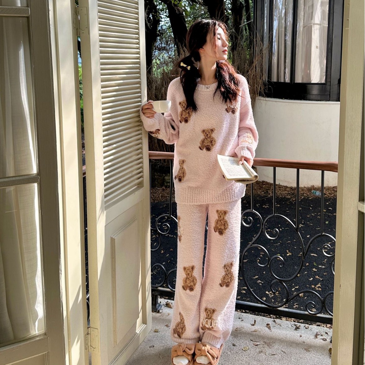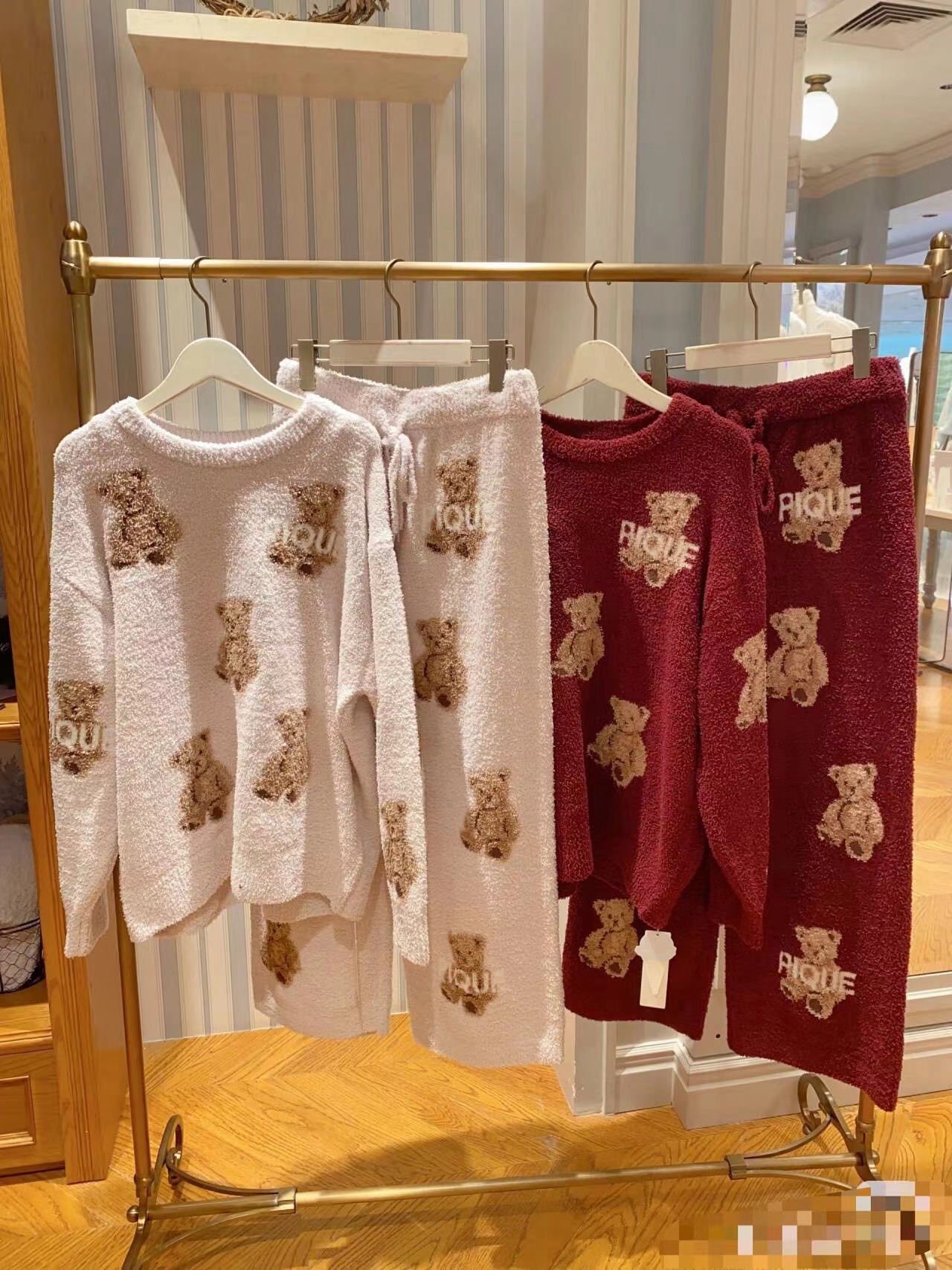 Gp 가을과 겨울 24 귀여운 커버 자카드 곰 크리스마스 붉은 부드러운 숙녀 집 옷 잠옷 세트스토어 가기