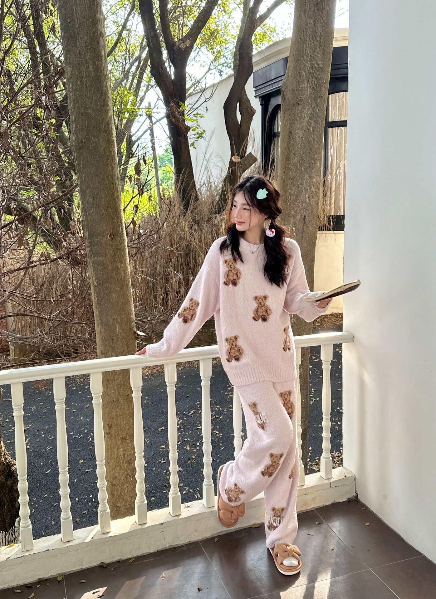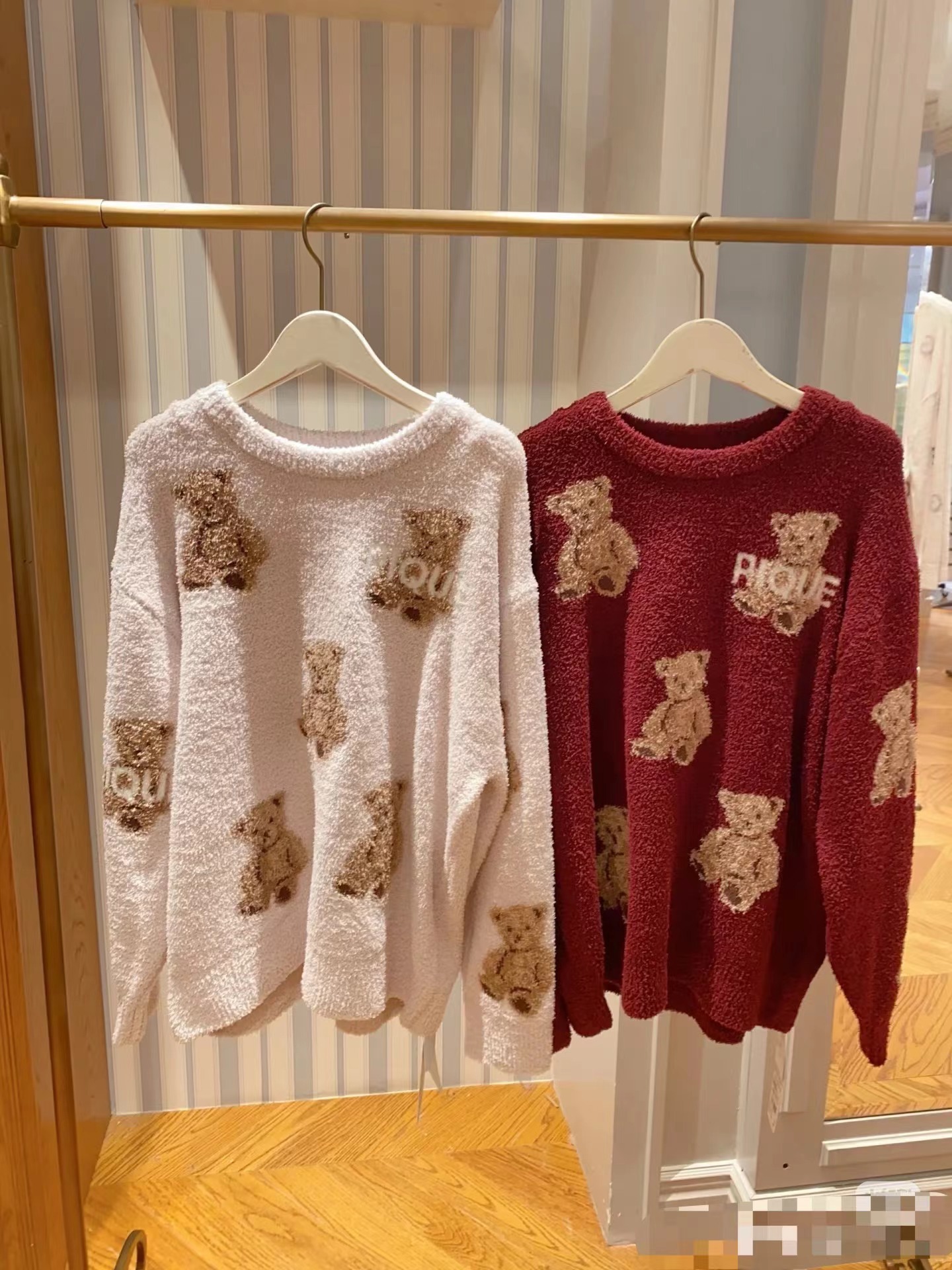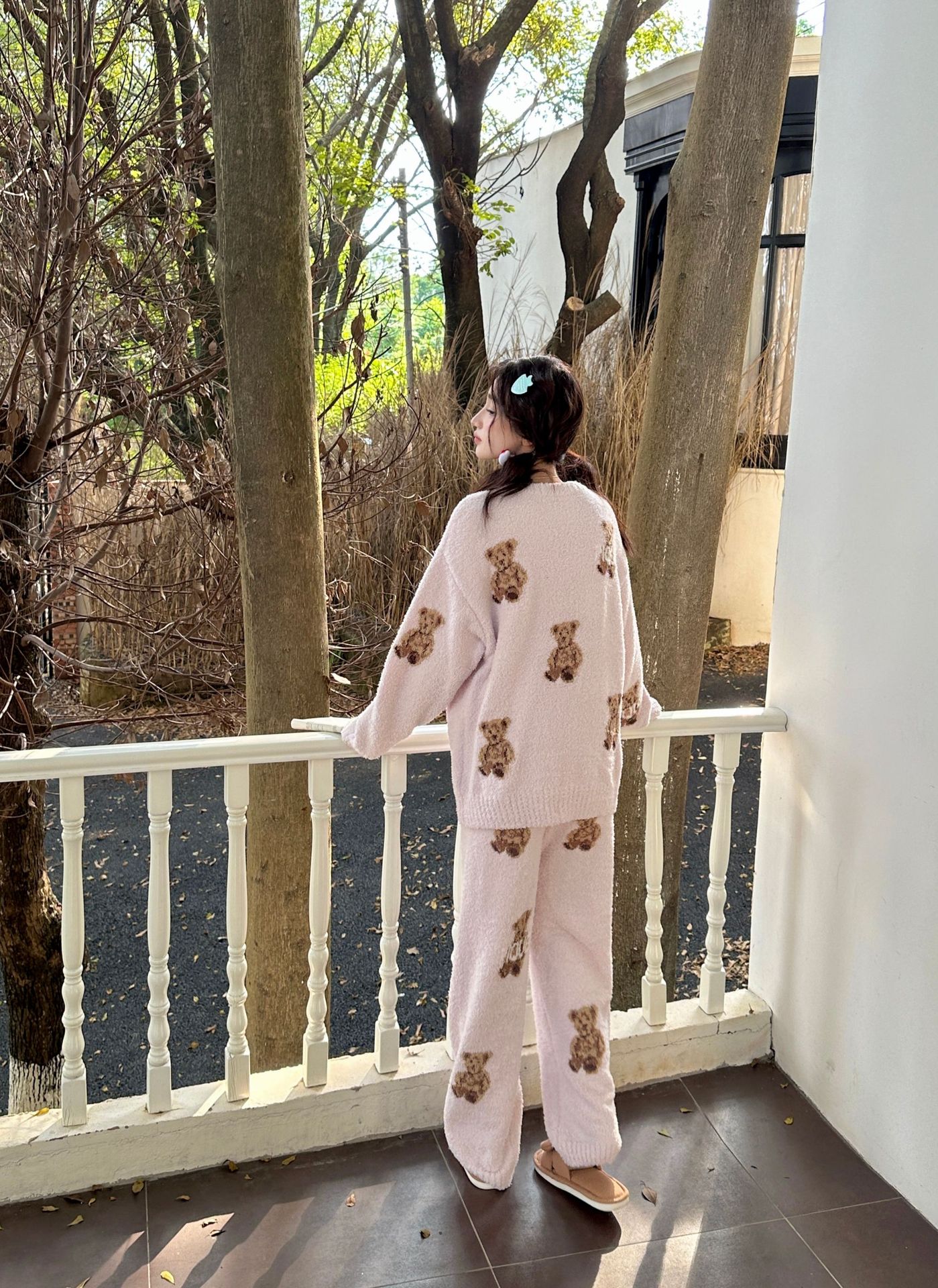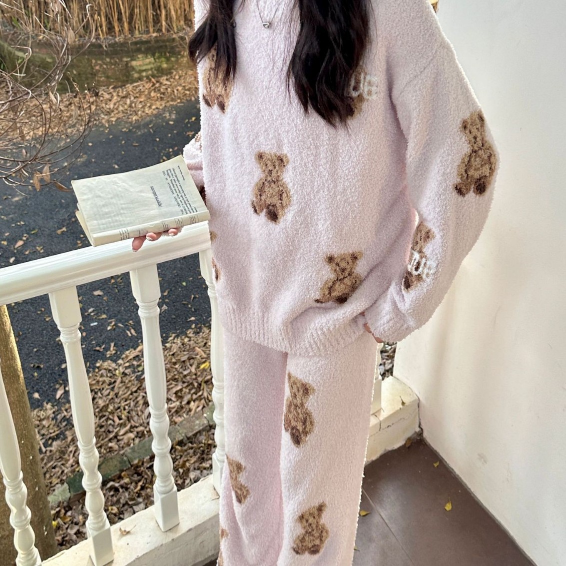 Gp 가을과 겨울 24 귀여운 커버 자카드 곰 크리스마스 붉은 부드러운 숙녀 집 옷 잠옷 세트스토어 가기