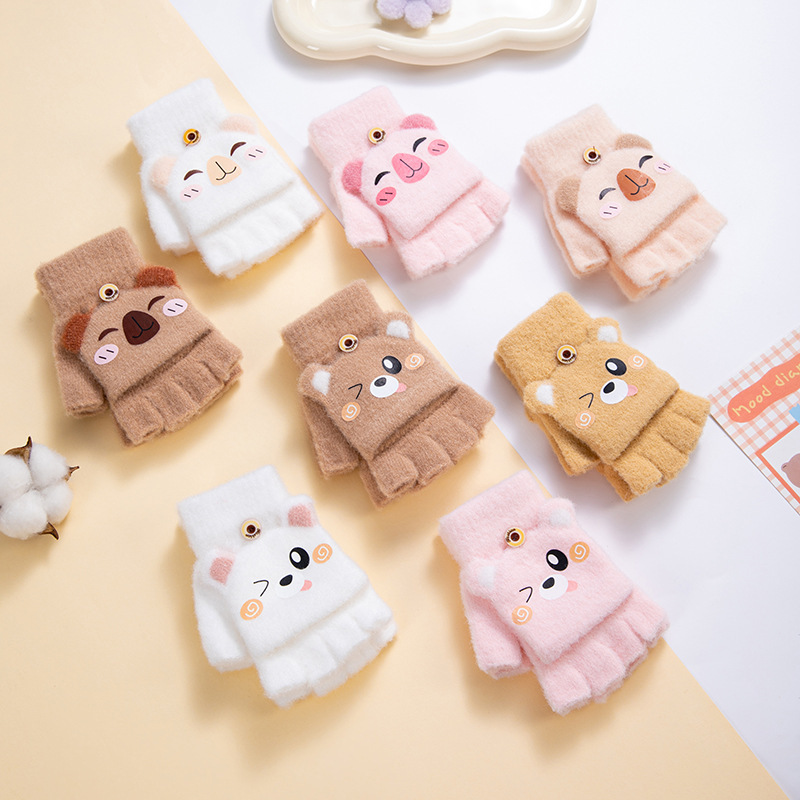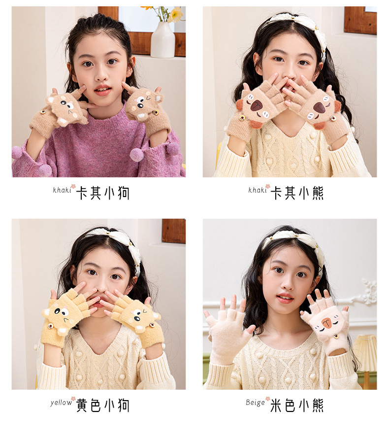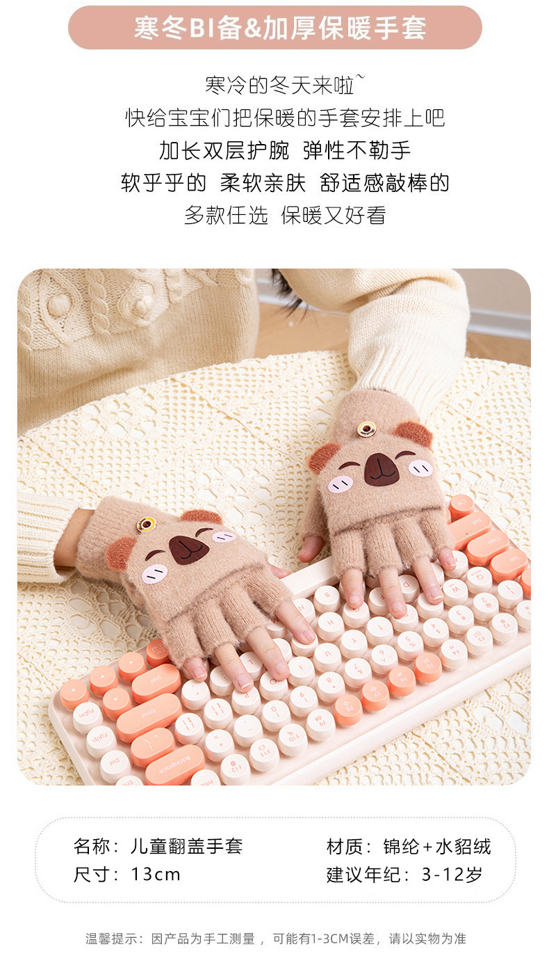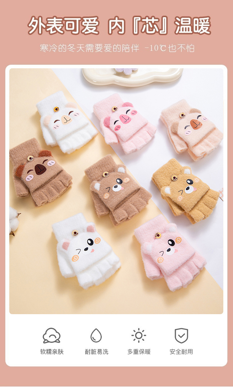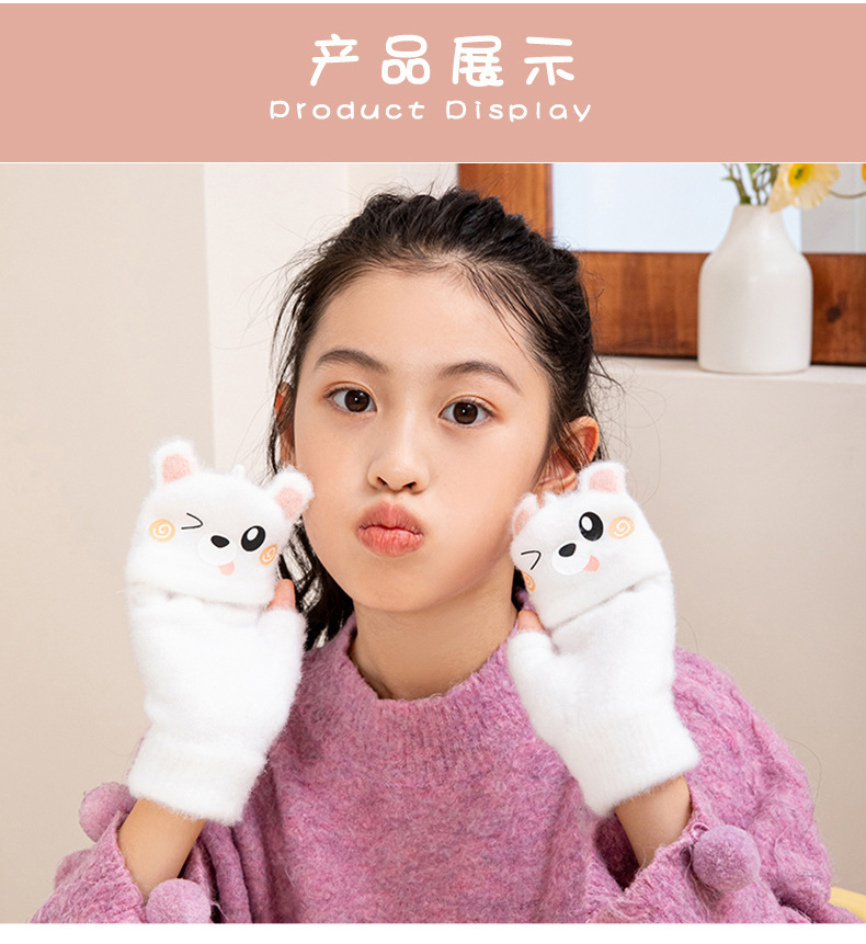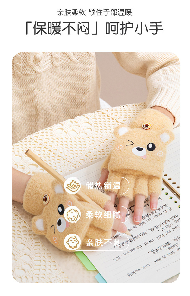 겨울 따뜻한 어린이 겨울 새로운 만화 카드 가죽 바 5 손가락 냉장 남성과 여성의 통기성 반 손가락 플립 장갑스토어 가기