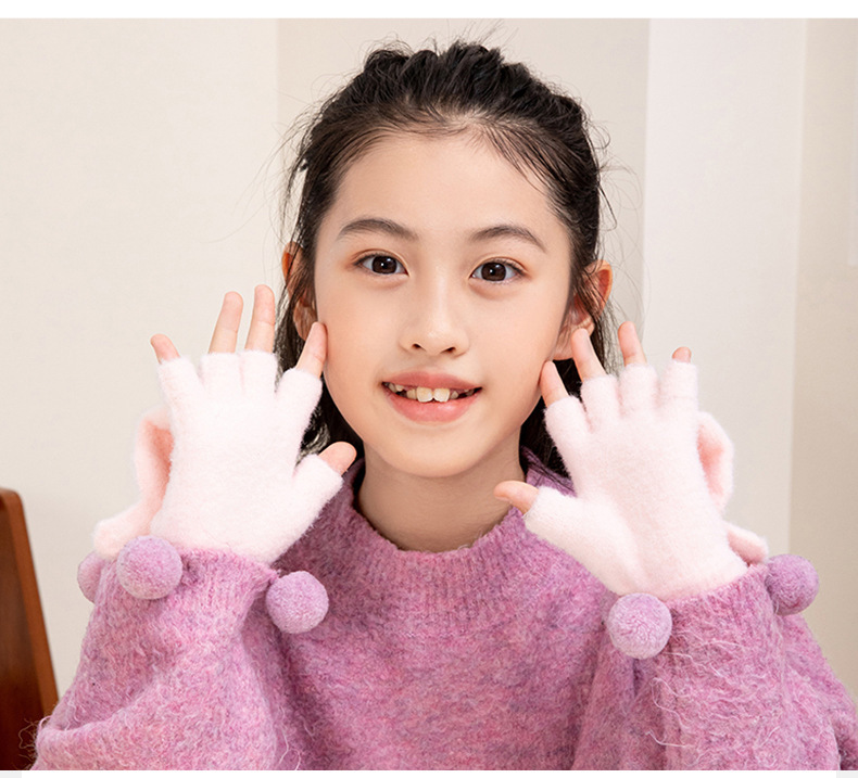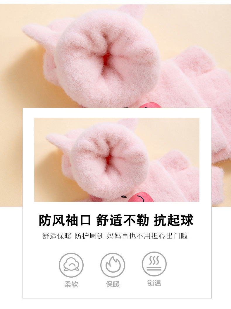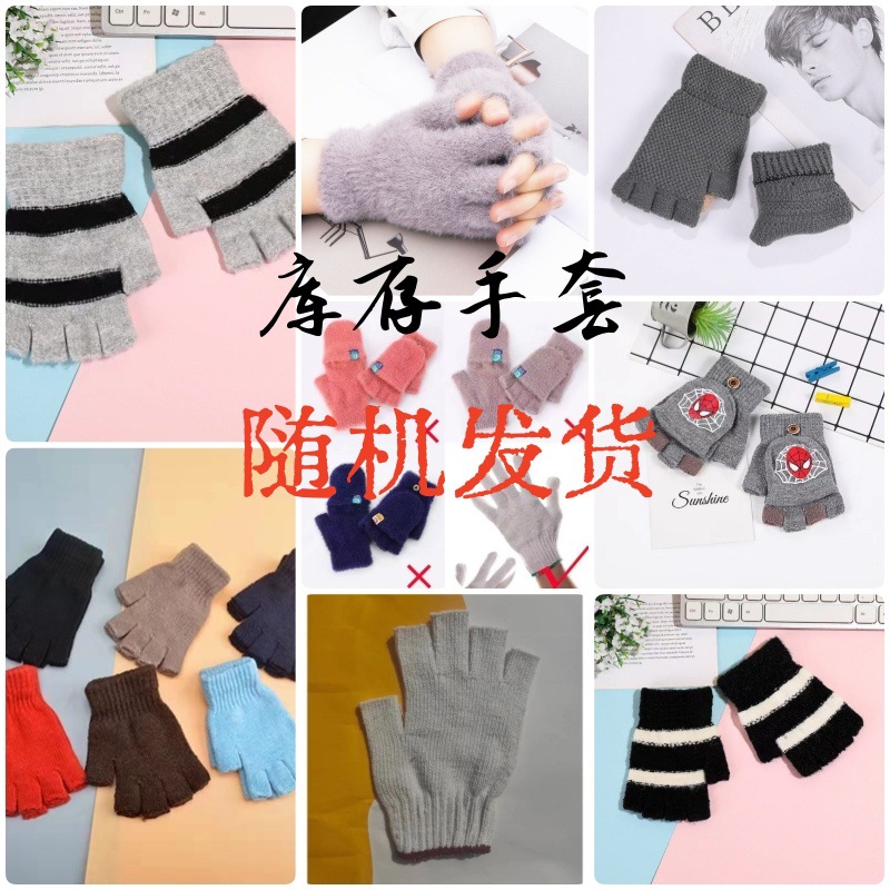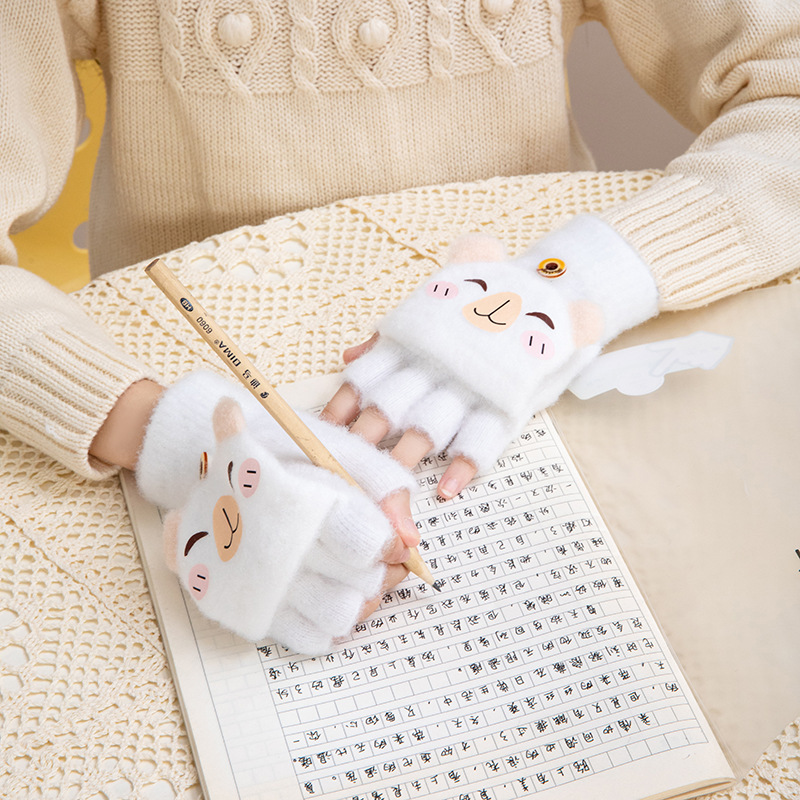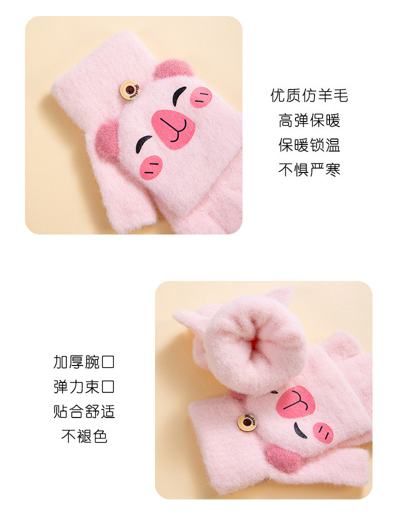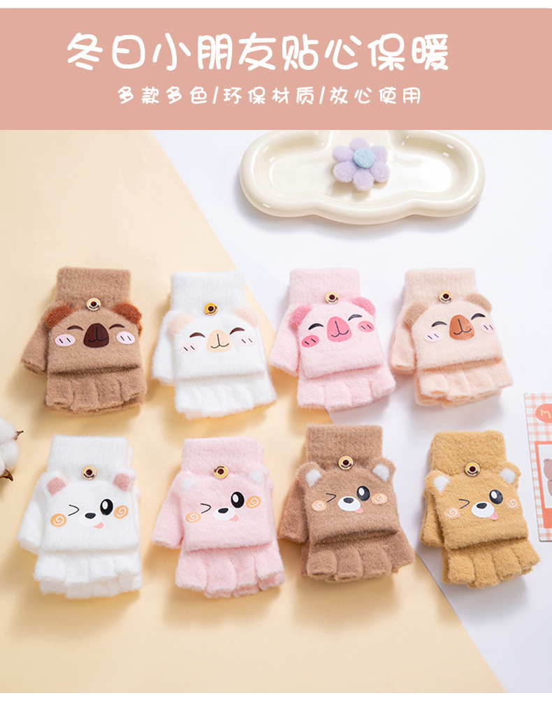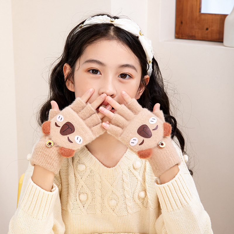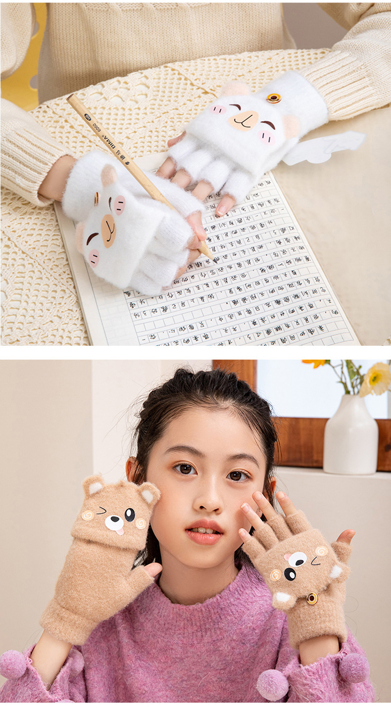 겨울 따뜻한 어린이 겨울 새로운 만화 카드 가죽 바 5 손가락 냉장 남성과 여성의 통기성 반 손가락 플립 장갑스토어 가기
