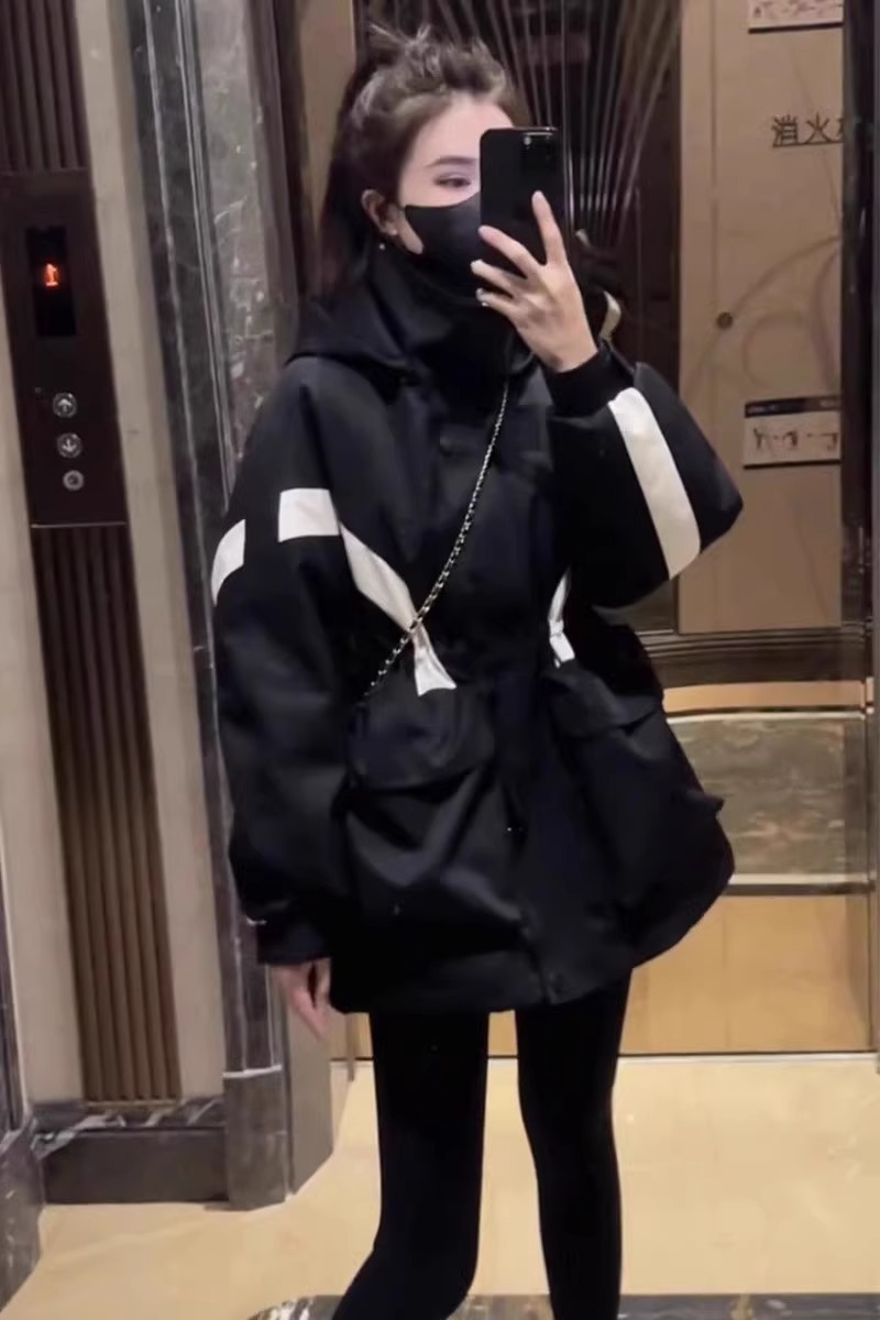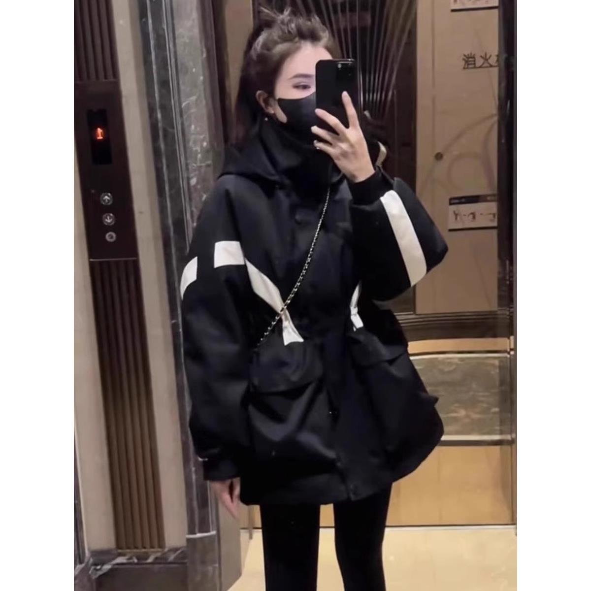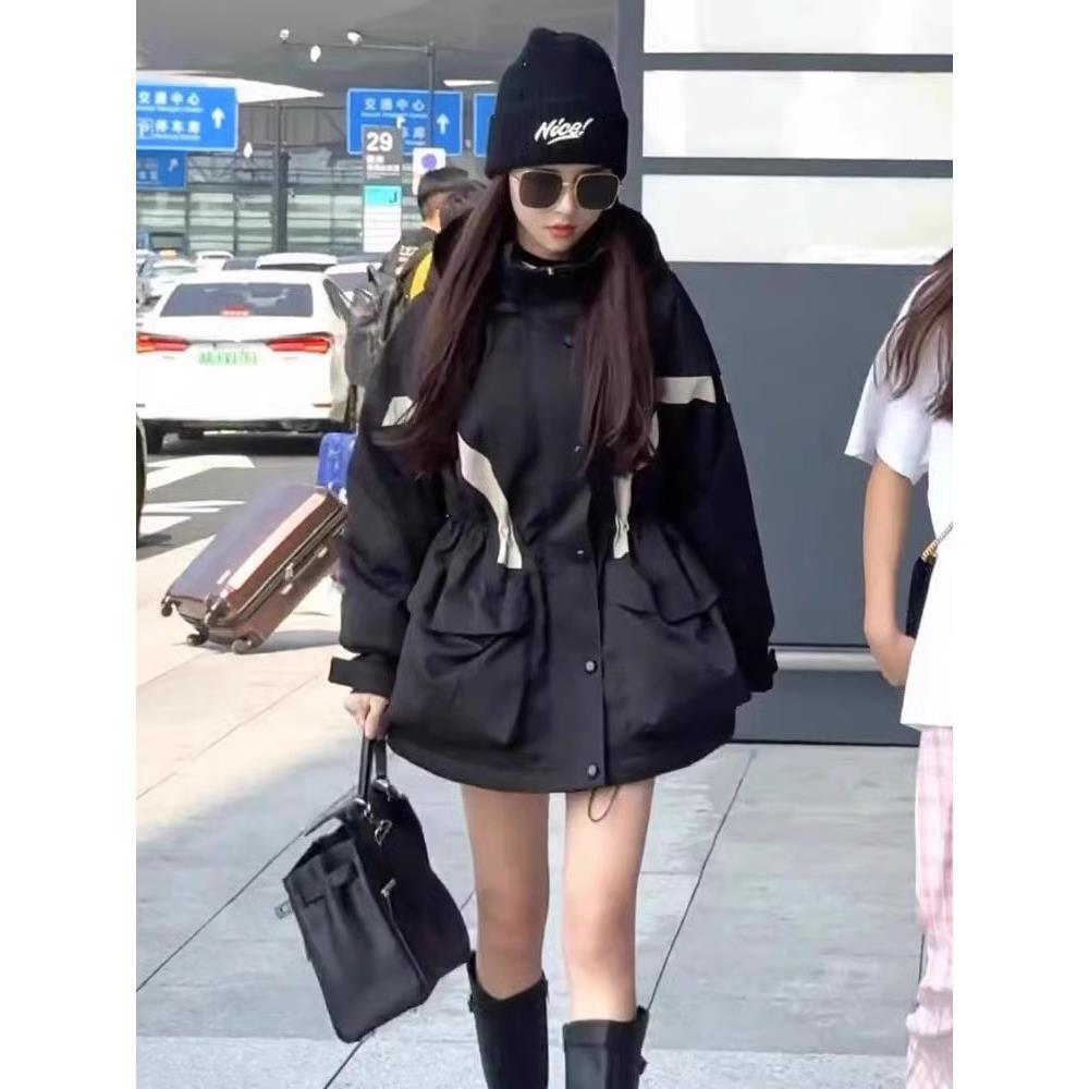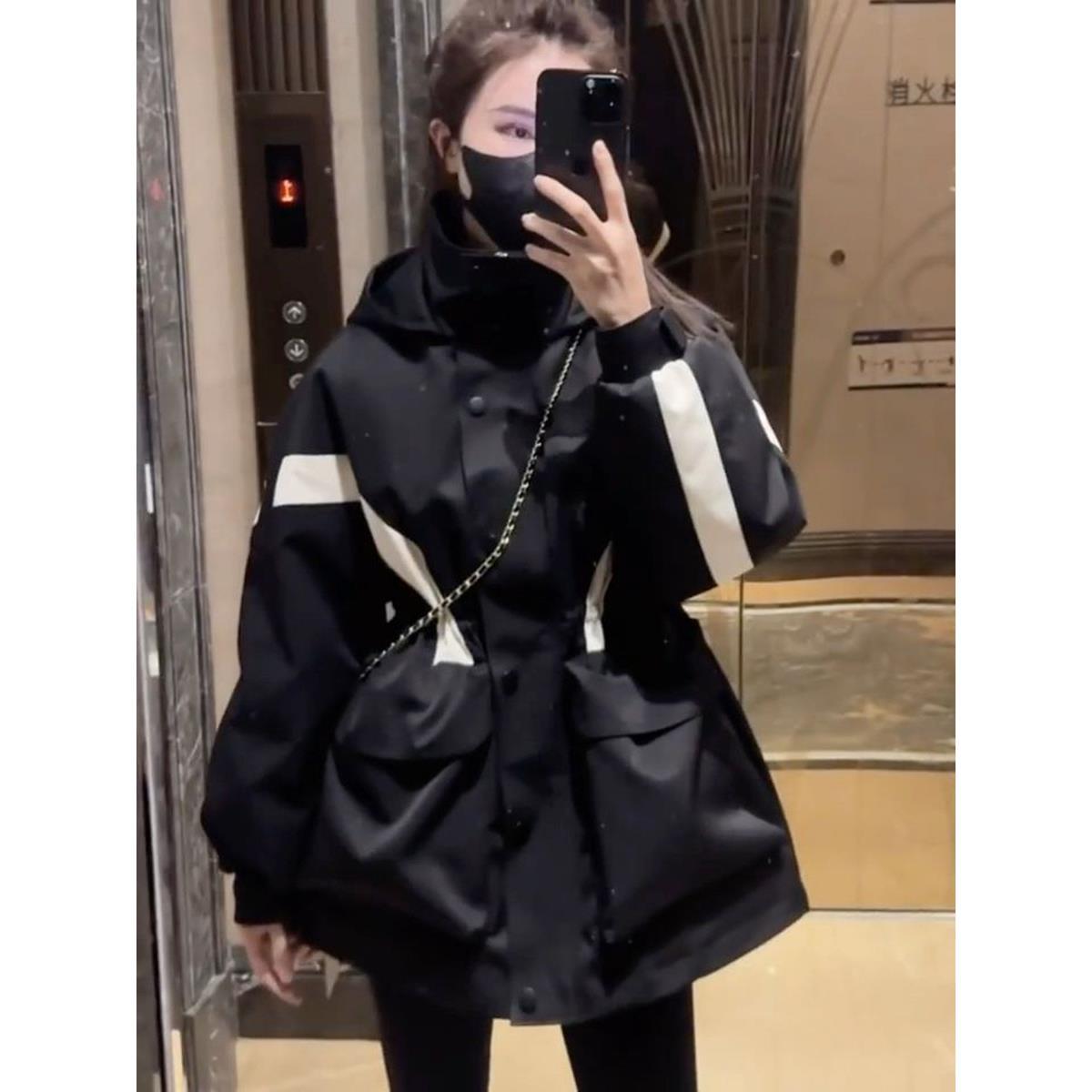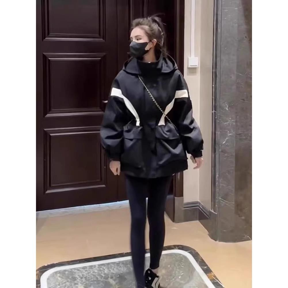 폭발적인 폭행 코트 여성의 가을 새로운 2024 캐주얼 느슨한 후드 허리 패션 다목적 재킷 탑스토어 가기
