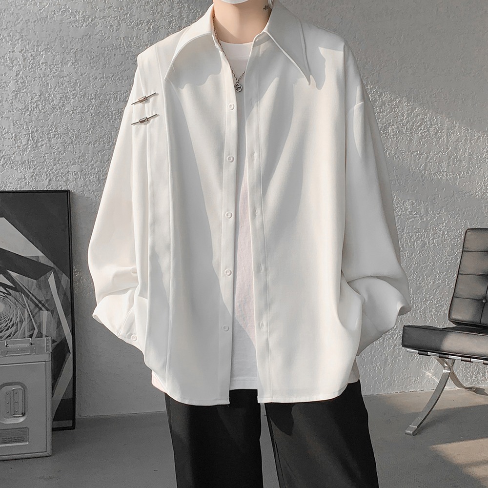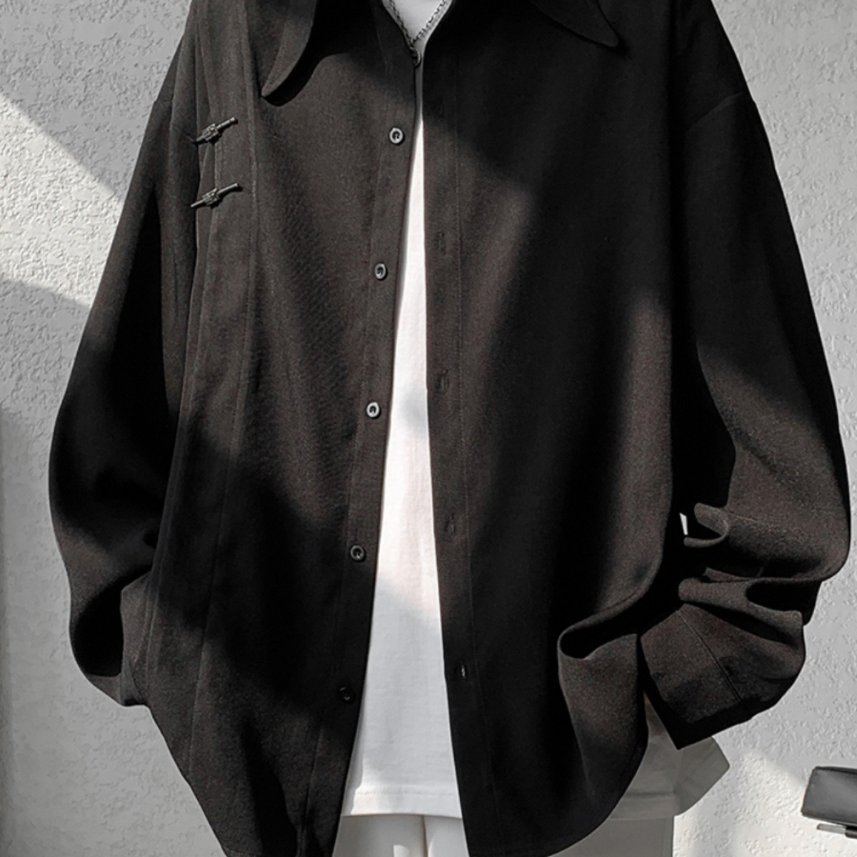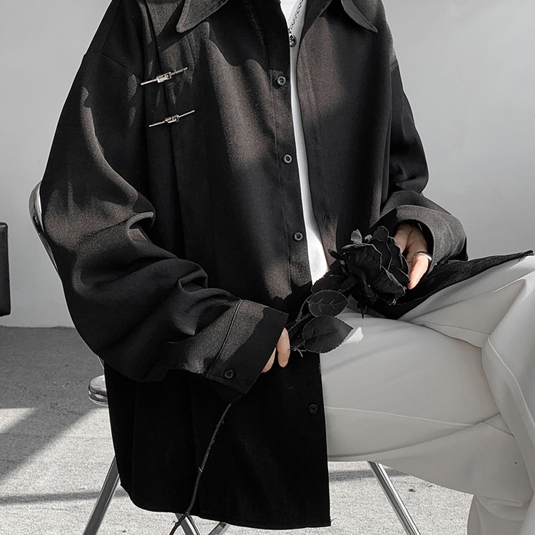 전국 패션 브랜드 캐주얼 긴팔 셔츠 남성 하이 엔드 센스 중국 스타일 금속 버클 셔츠, 느슨한 새로운 중국 스타일 재킷