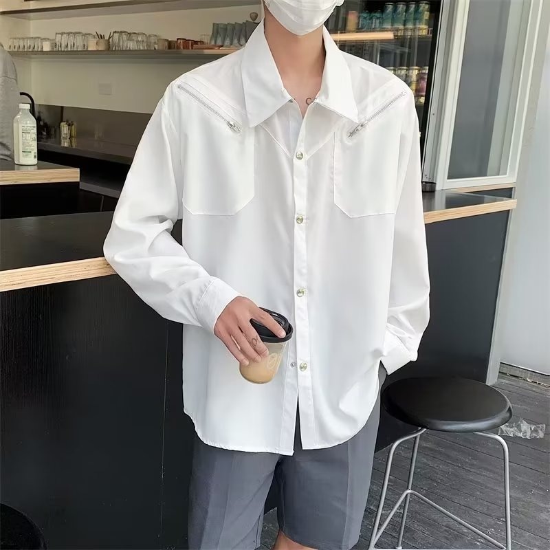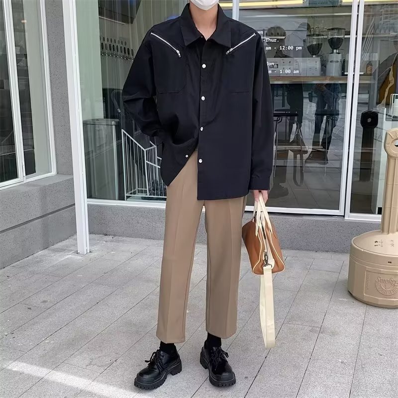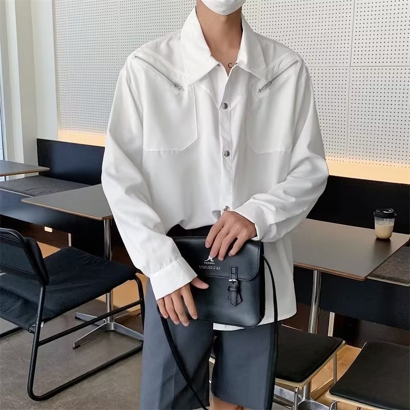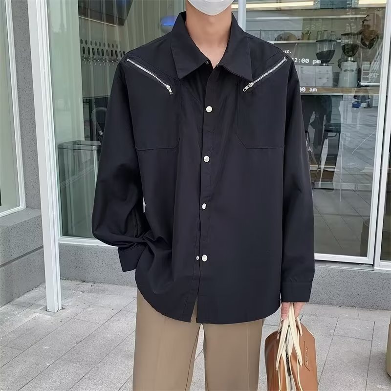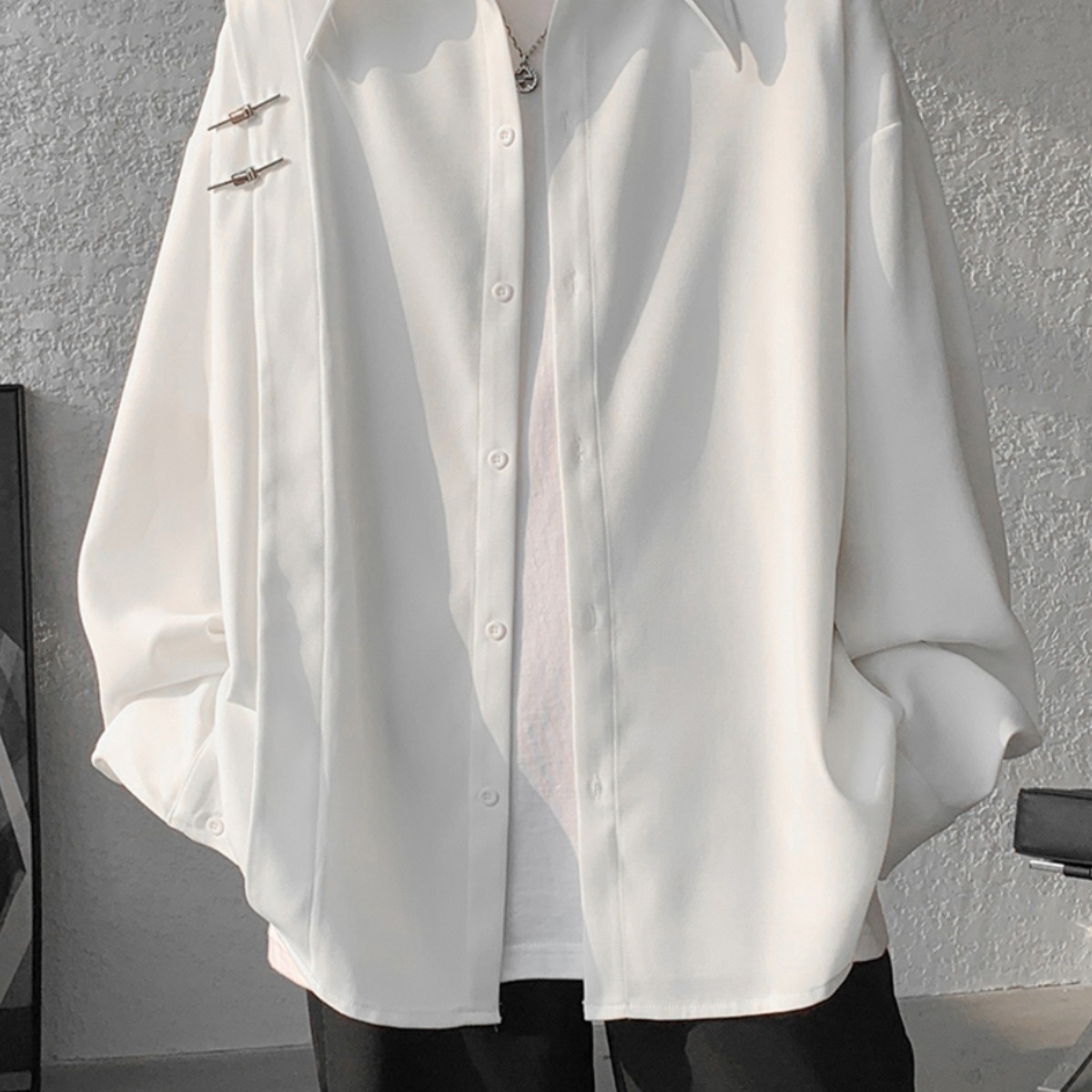 전국 패션 브랜드 캐주얼 긴팔 셔츠 남성 하이 엔드 센스 중국 스타일 금속 버클 셔츠, 느슨한 새로운 중국 스타일 재킷