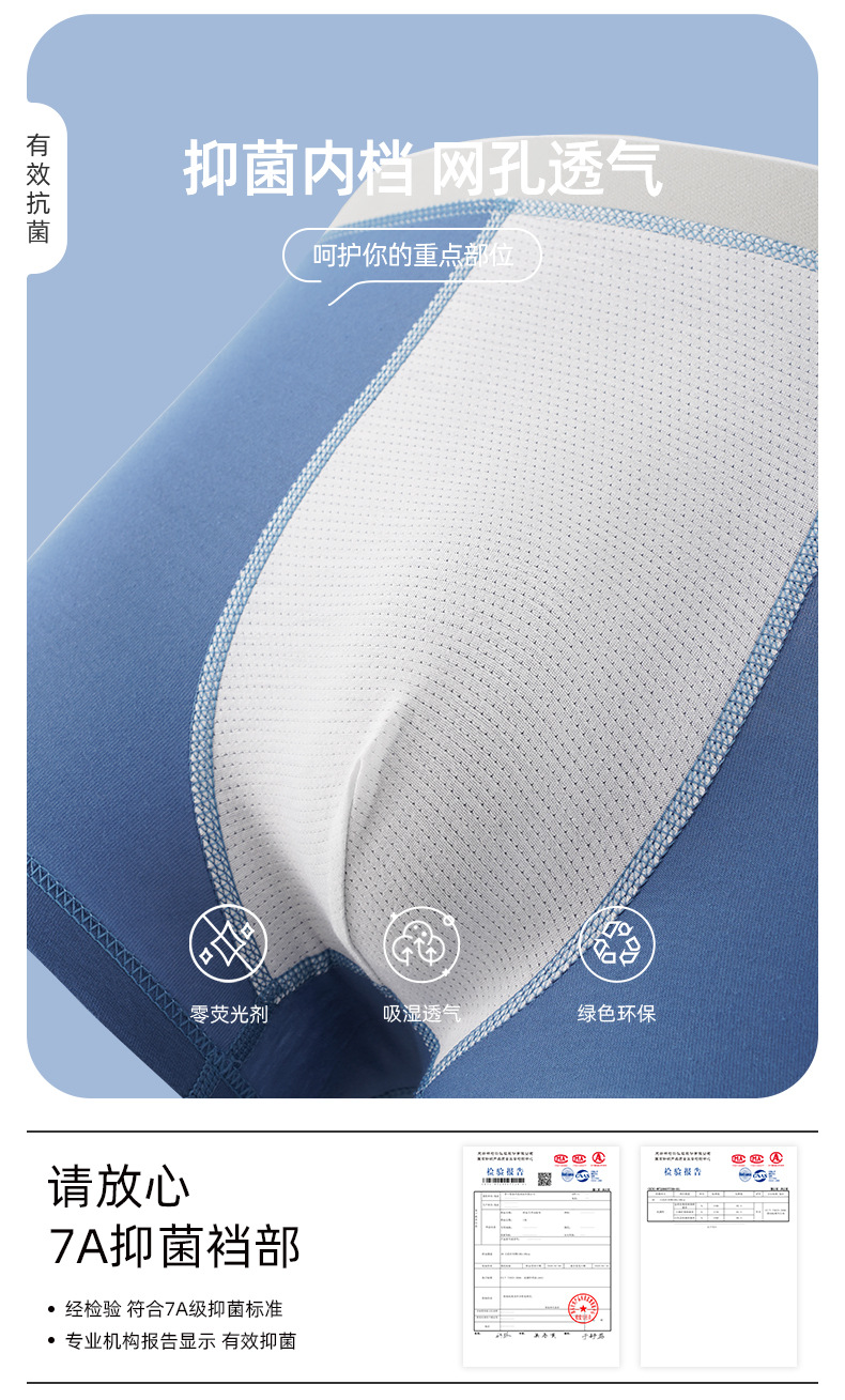 도파민 순면 남성 속옷 편안하고 통기성 좋은 단색 패션 남성 사각팬티 항균 속옷 반바지 도매스토어 가기