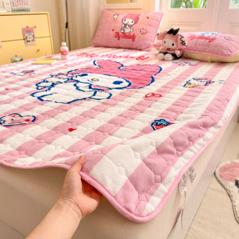 귀여운 우유 벨벳 매트리스 3 종 매트리스 학생 기숙사 쿠션 가정용 두꺼운 신선한 학생 싱글 쿠션 퀼트
