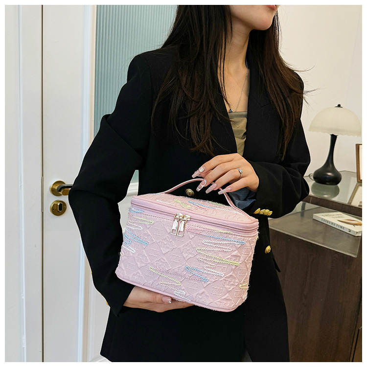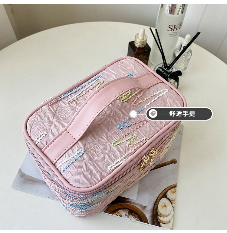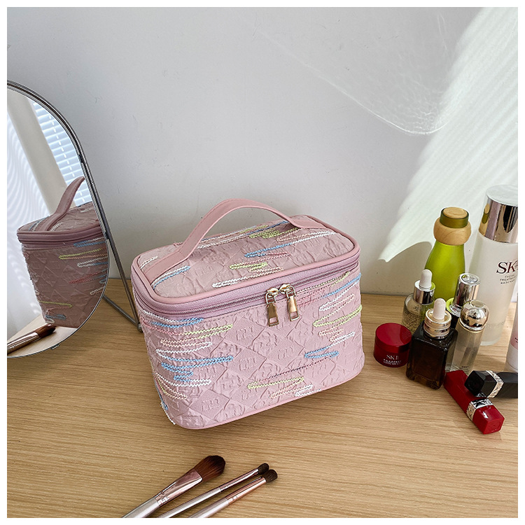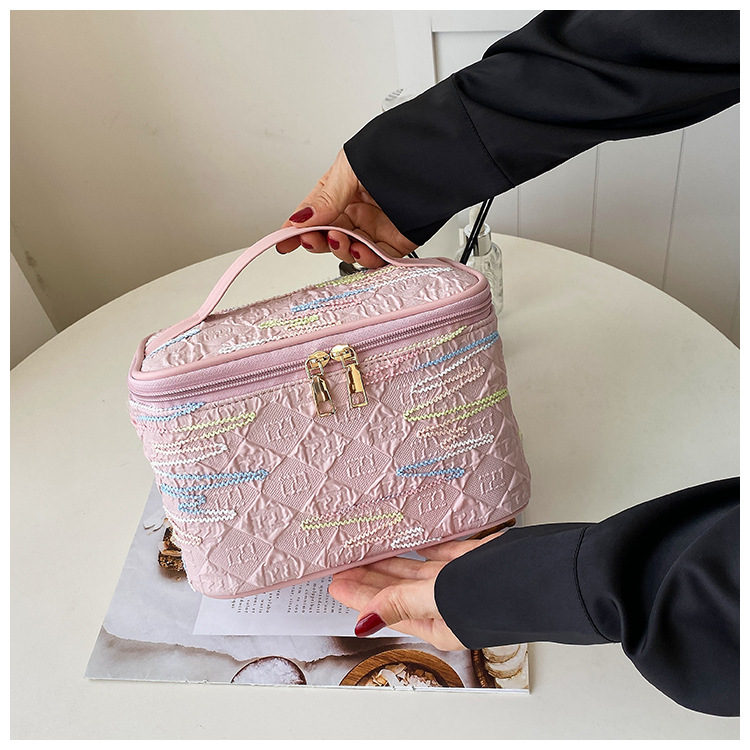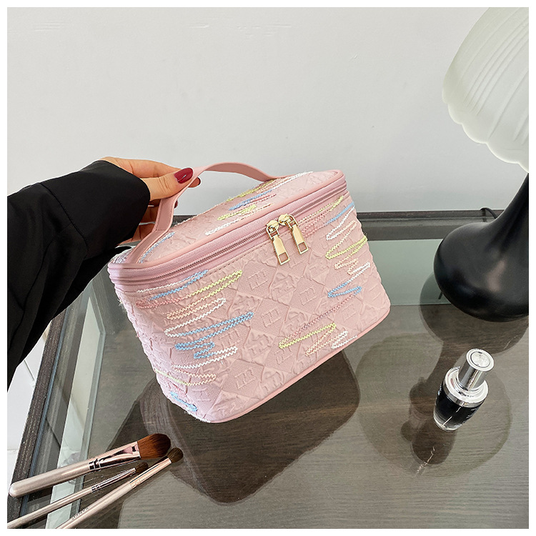 패션 새로운 한국 휴대용 대용량 화장품 가방 단색 동적 접이식 여행 세척 보관 가방 도매스토어 가기