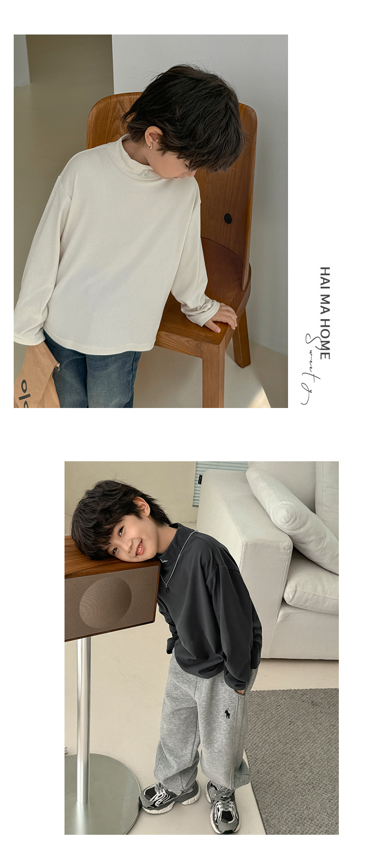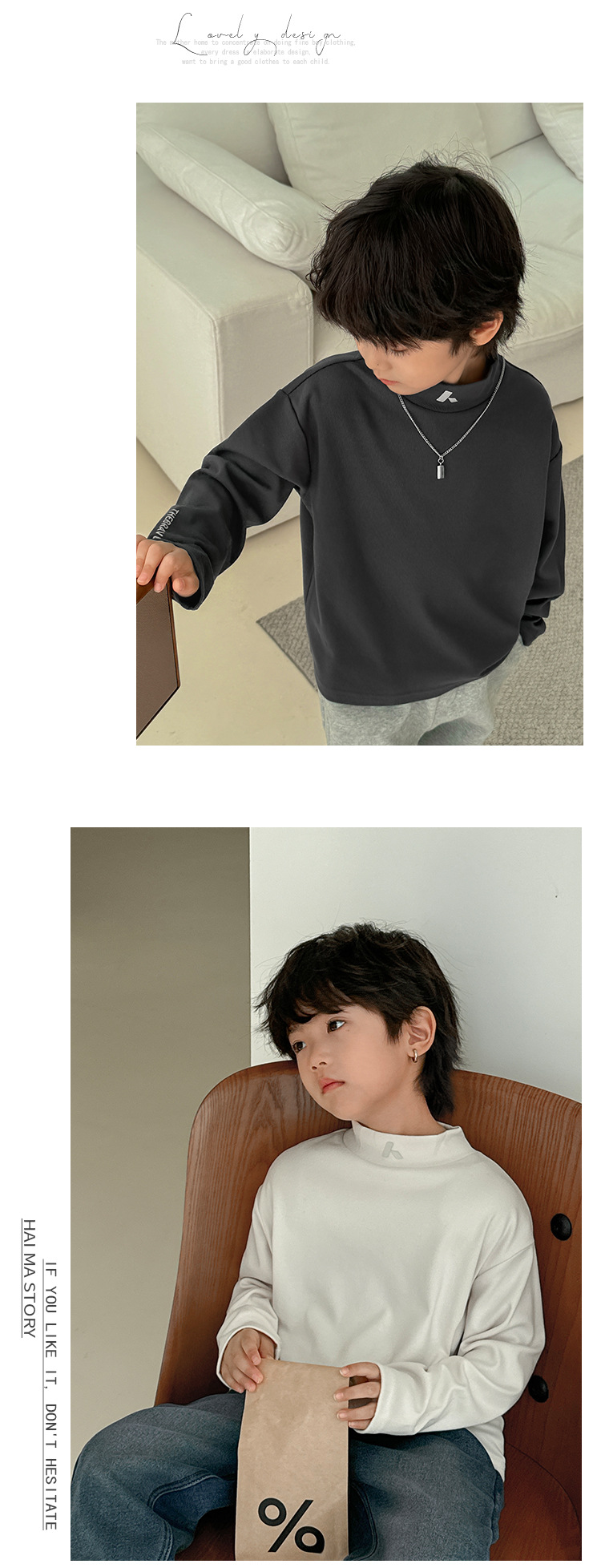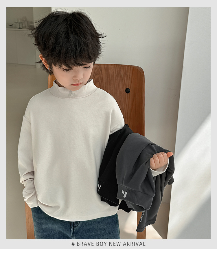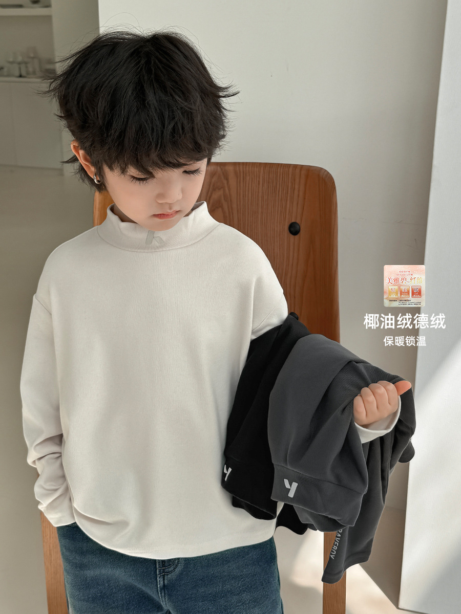 2024 Haima의 가을과 겨울 새로운 어린이 소년 반 높은 목 벨벳베이스 셔츠 긴 소매 티셔츠 겨울 소녀스토어 가기