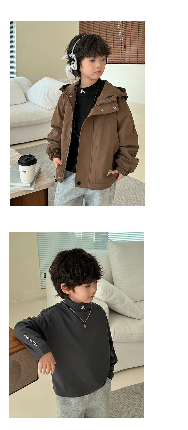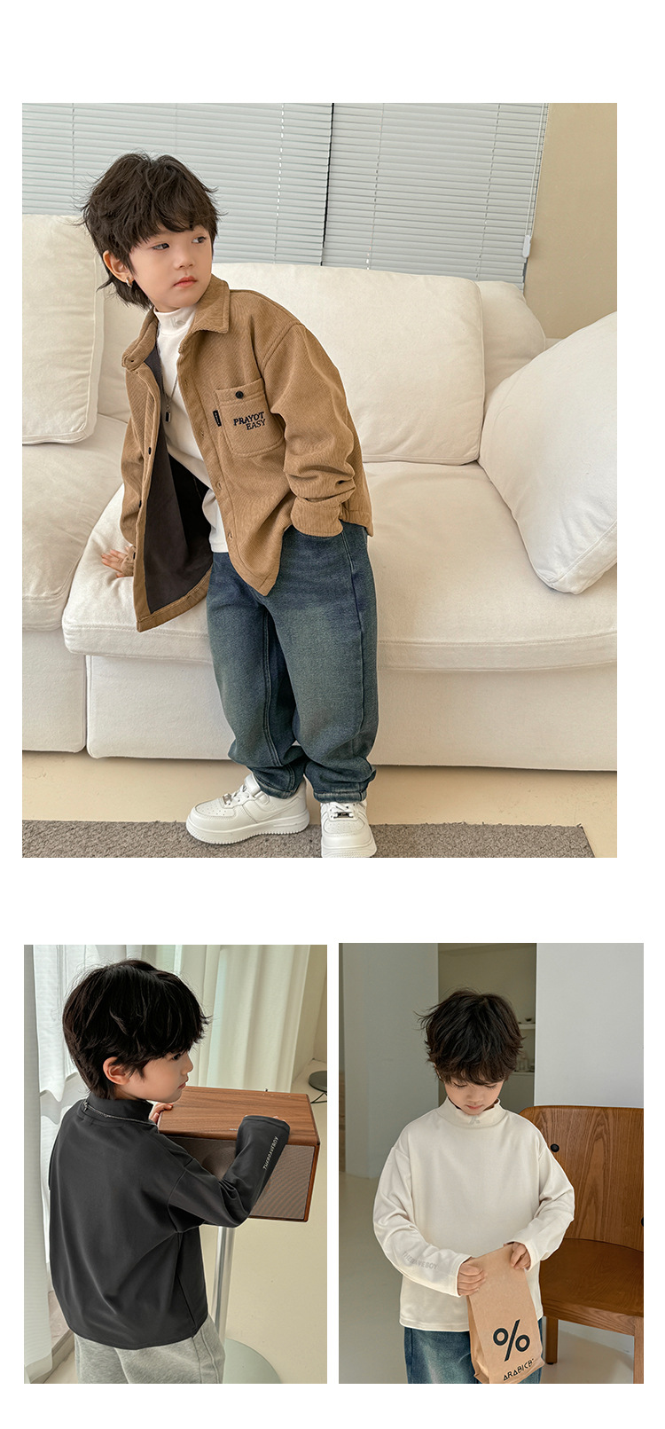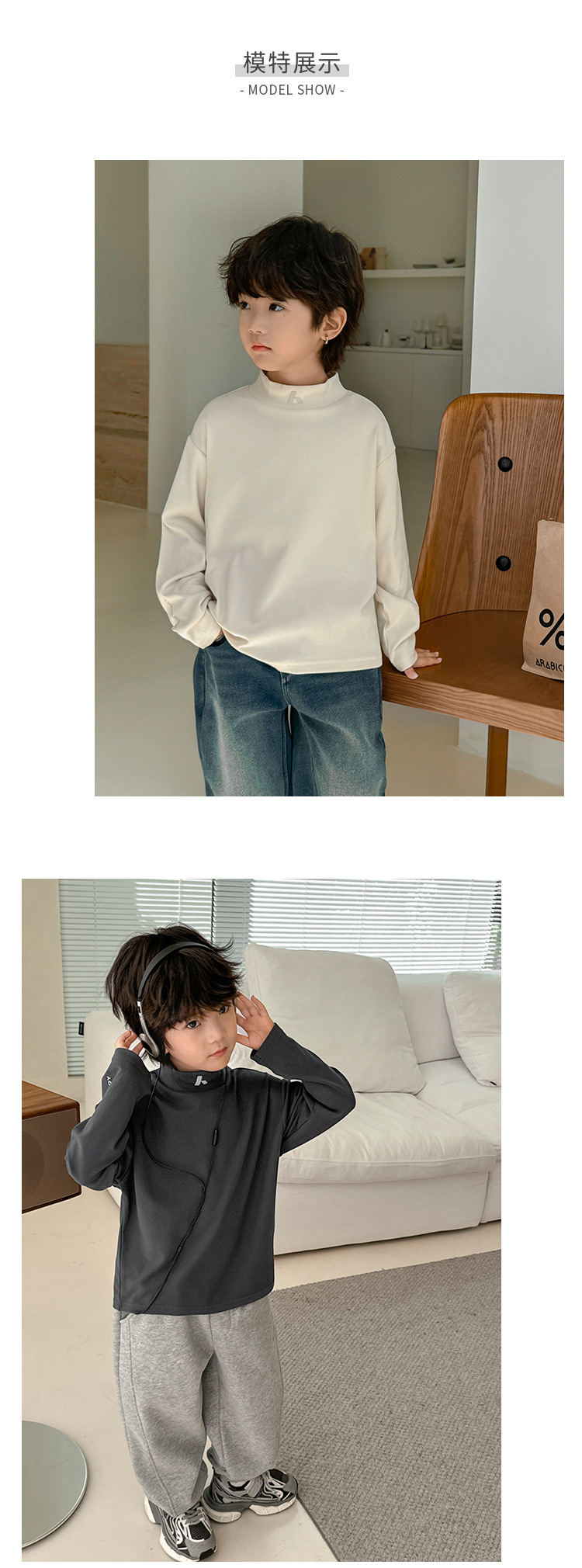 2024 Haima의 가을과 겨울 새로운 어린이 소년 반 높은 목 벨벳베이스 셔츠 긴 소매 티셔츠 겨울 소녀스토어 가기
