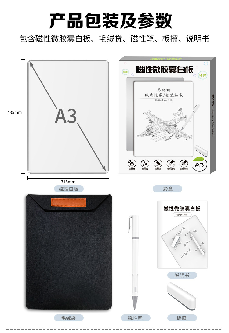 A4(16寸)铝合金磁性白板