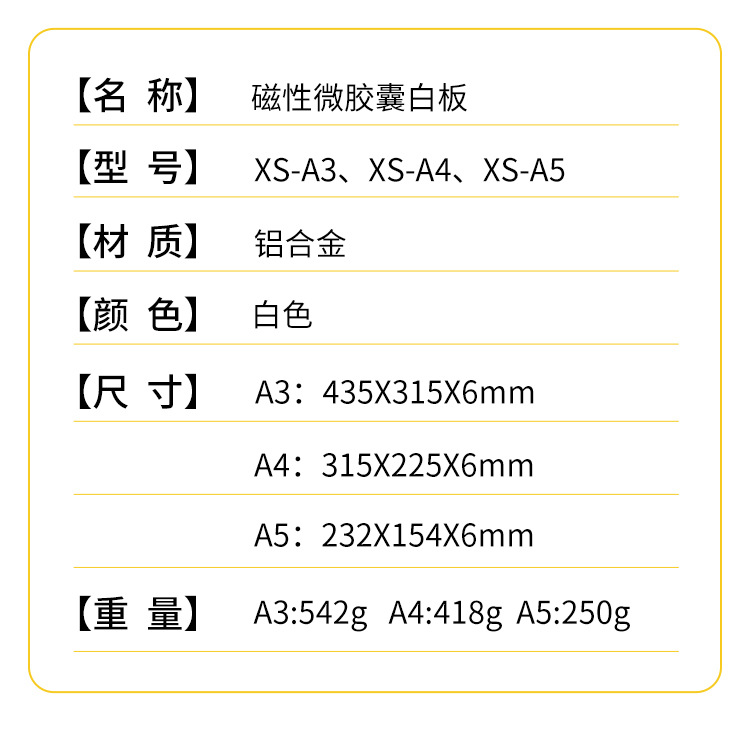 A5(11寸)铝合金磁性白板