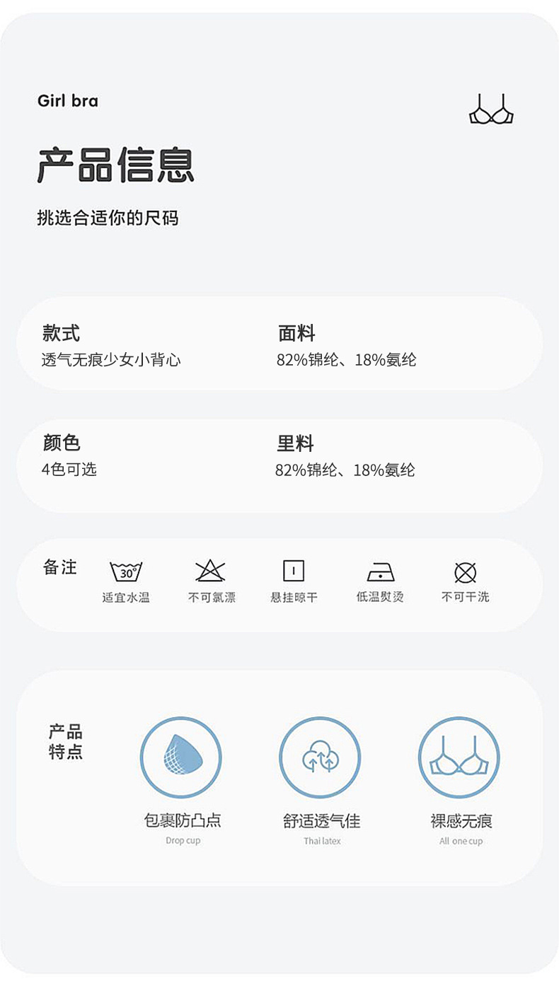 발달 여아 속옷 9-16 세 여아 튜브 탑 쿠션 없음 추적 없음 조끼 중학생 통기성 브래지어 얇은스토어 가기