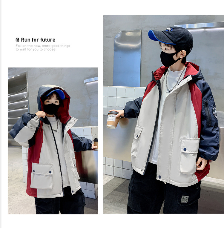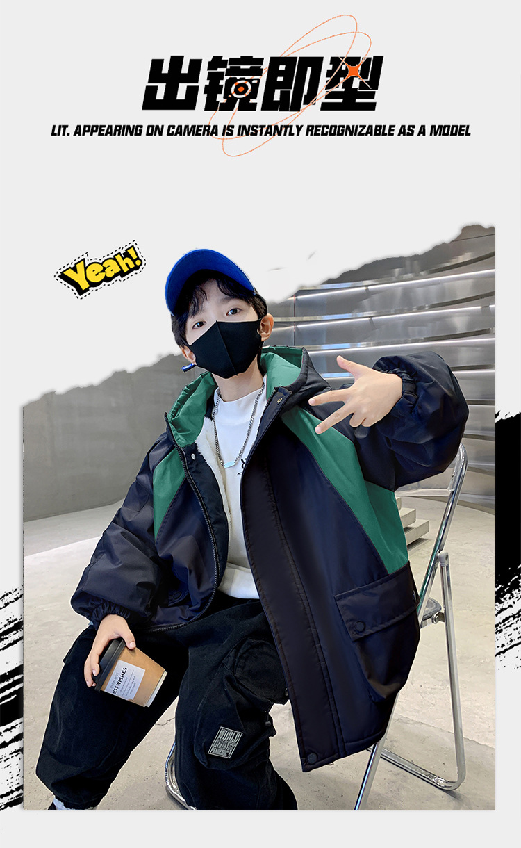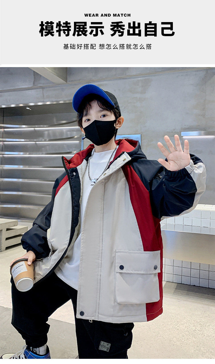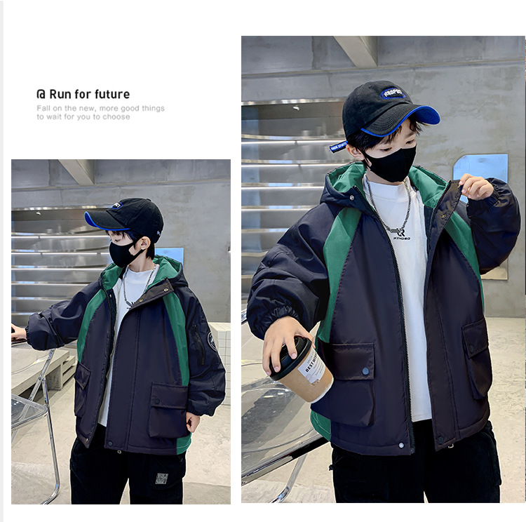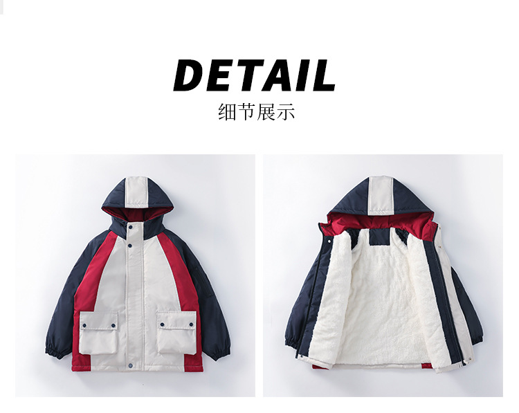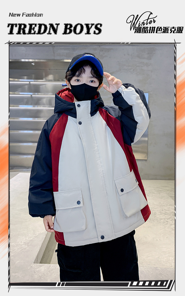 어린이 겨울복 소년의 새 기모 컬러 블록 파커 코트 2024 어린이 캐주얼 따뜻한 후드 코트 트렌디스토어 가기