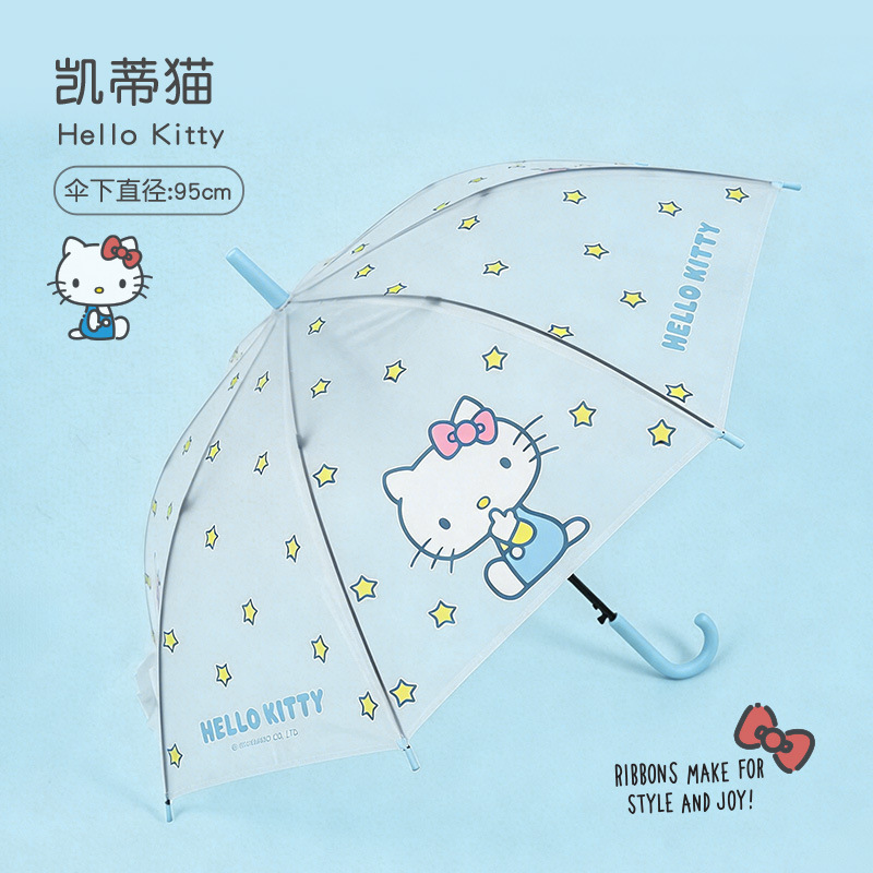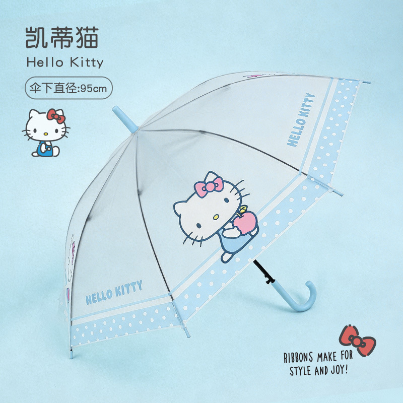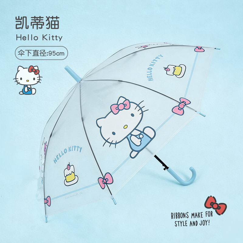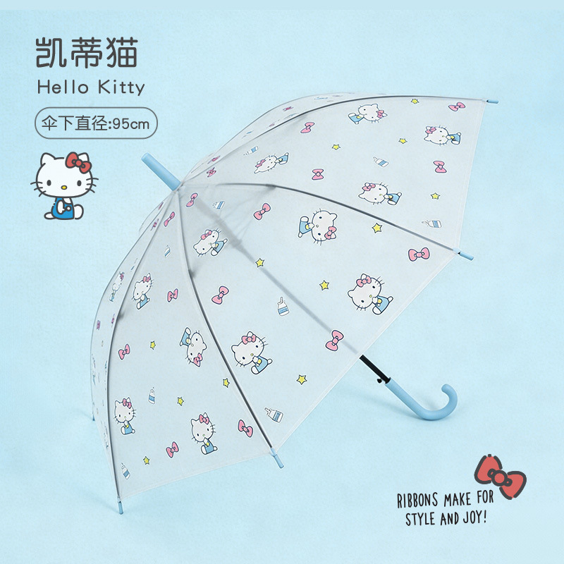 • 【헬로키티】 블루 풀 프린트 - 투명 롱 핸들 우산
